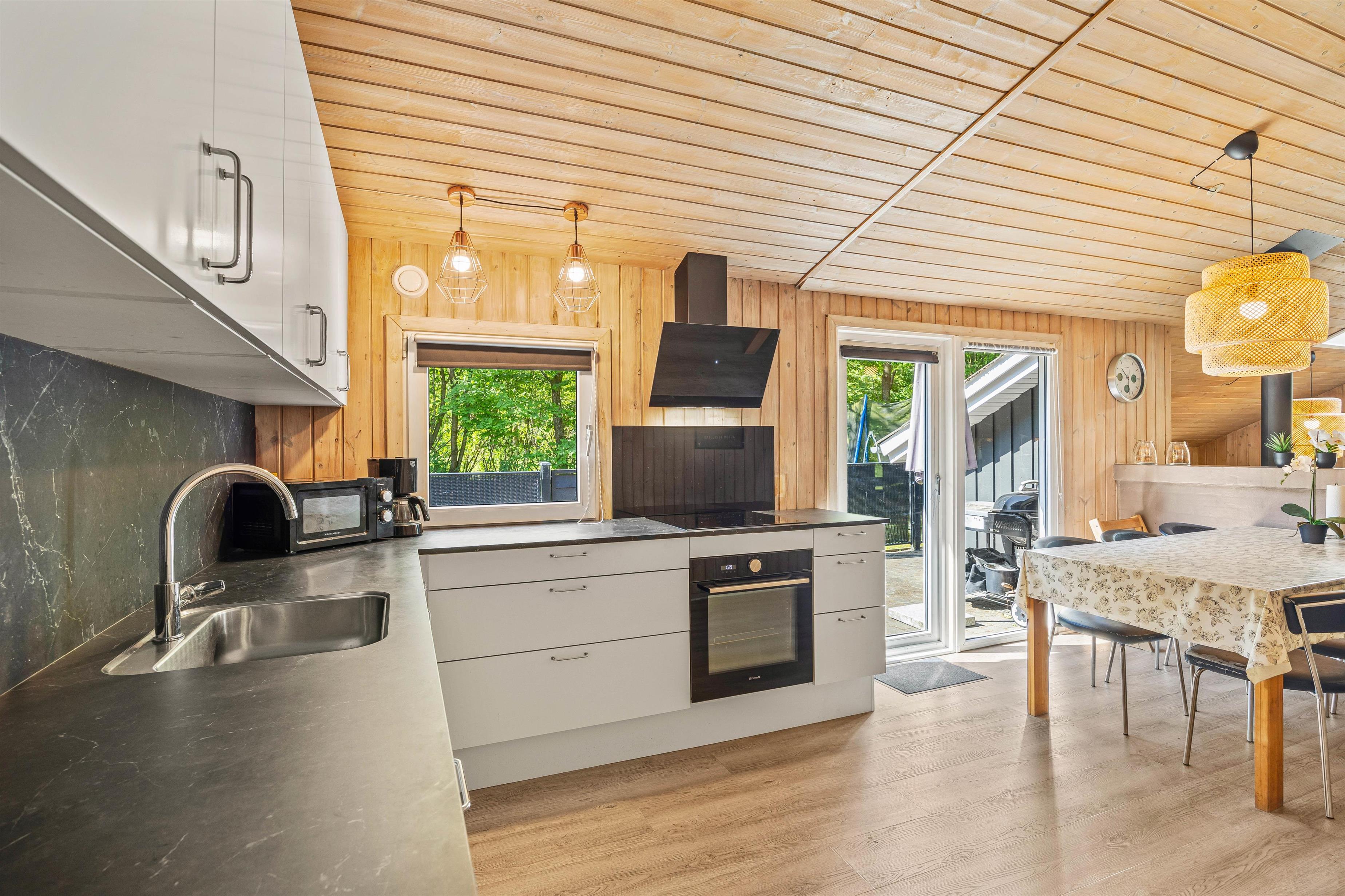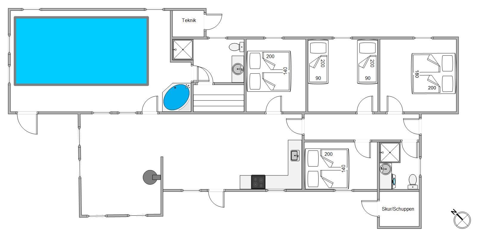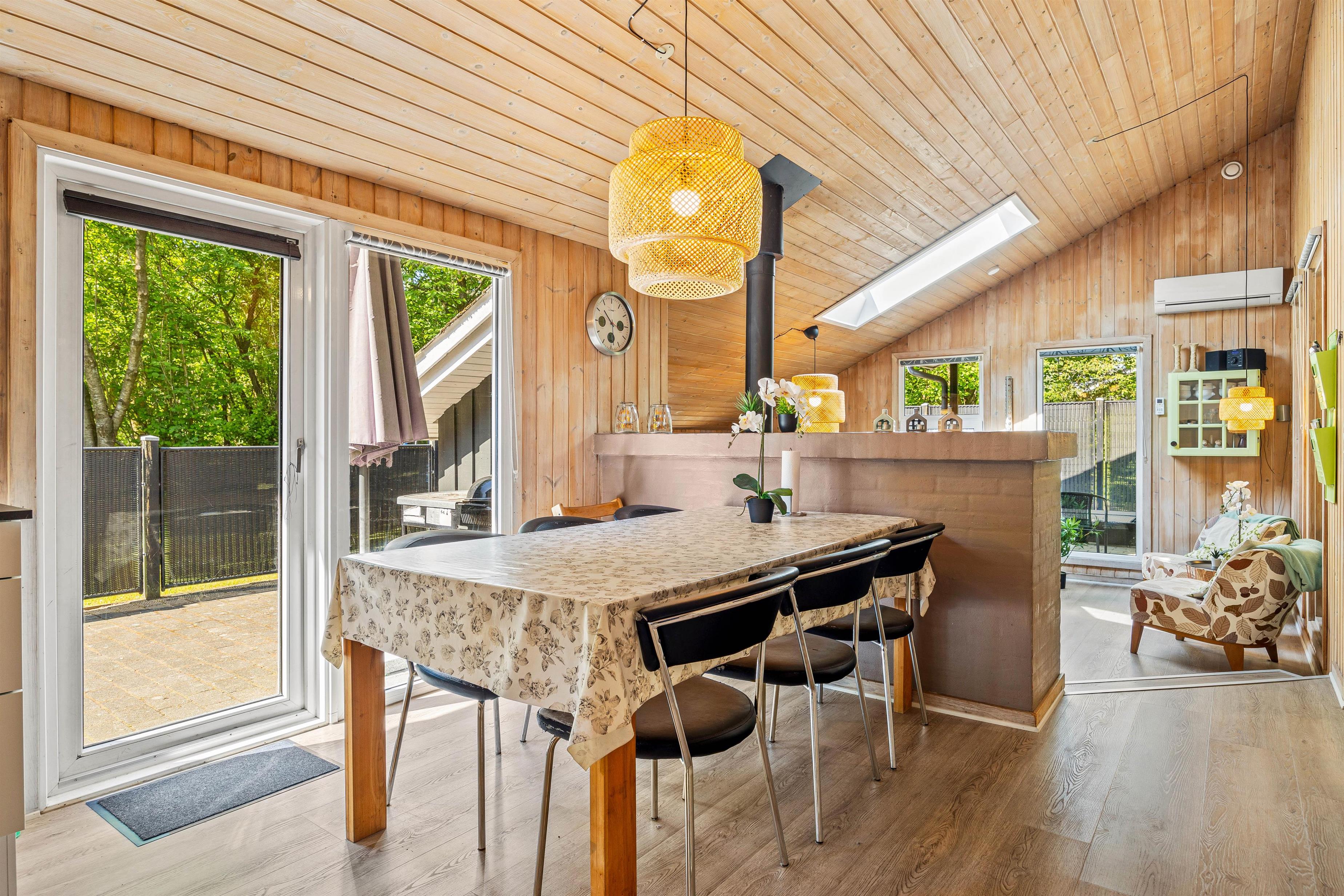 Det rummelige feriehus har 4 soveværelser og ikke mindre end 2 badeværelser, der giver plads til op til 8 personer, så du kan dele ferieoplevelsen med venner eller familie. Feriehuset er delvist renoveret i 2023, og har alt, hvad I behøver for en afslappende og behagelig ferie. En effektiv varmepumpe sørger desuden for en behagelig temperatur året rundt og med en vaskemaskine til rådighed, har I altid mulighed for nyvaskede håndklæder.
