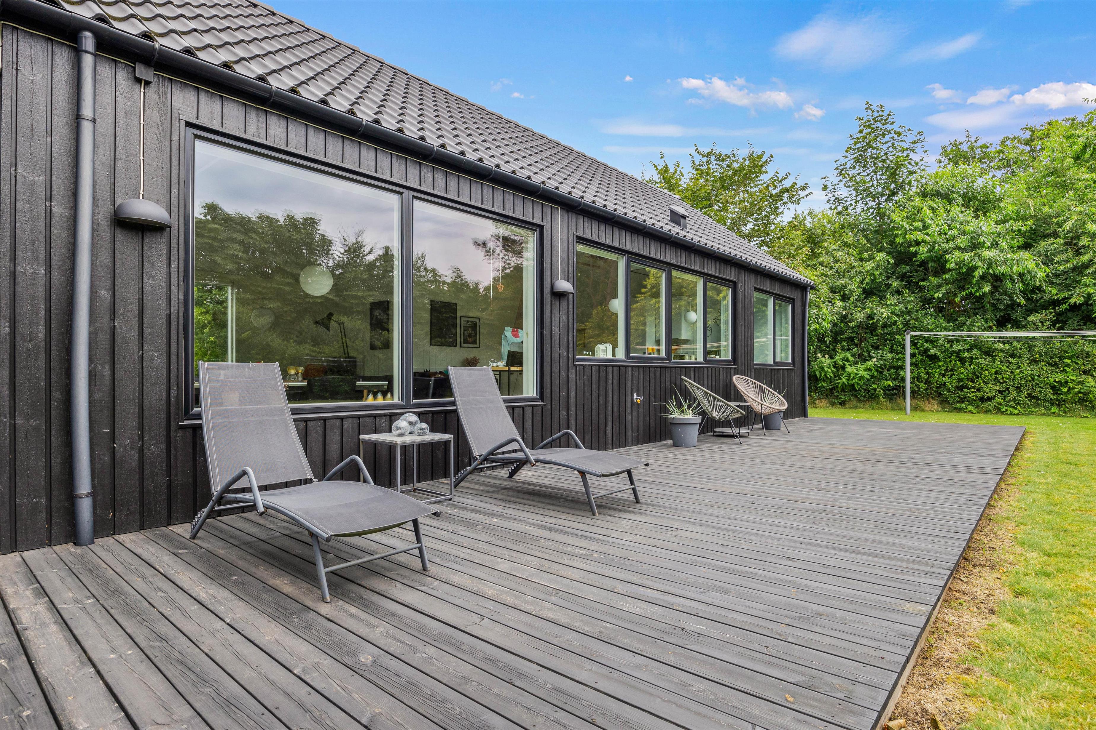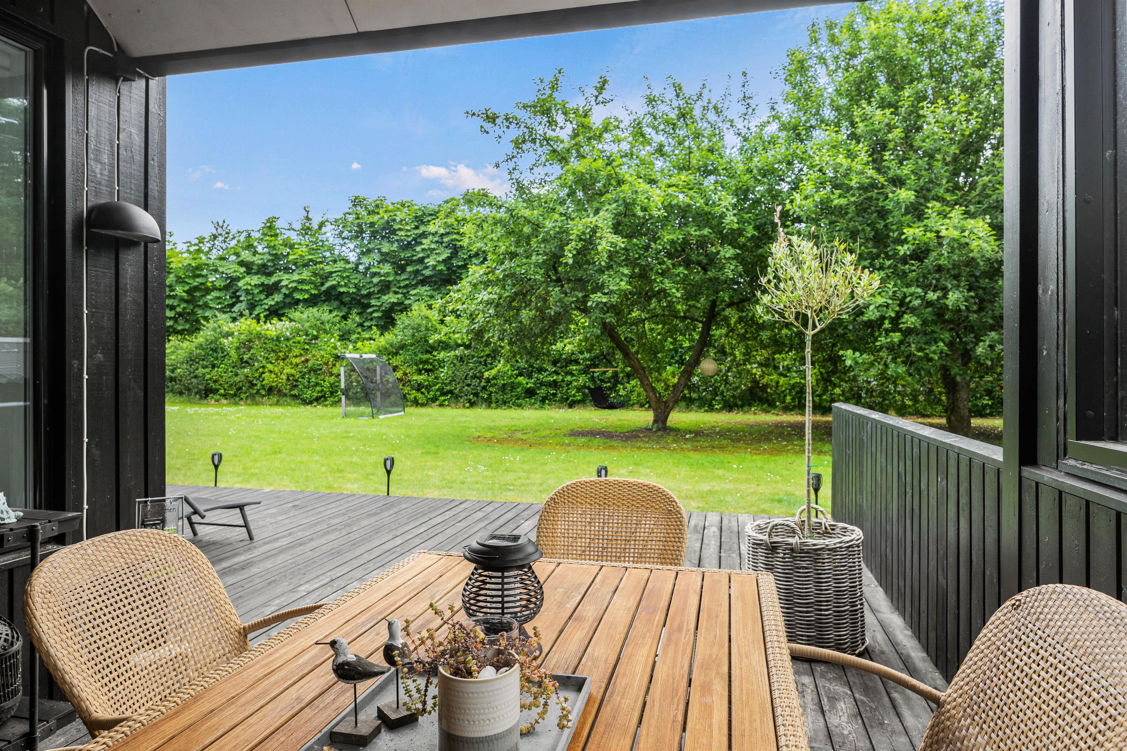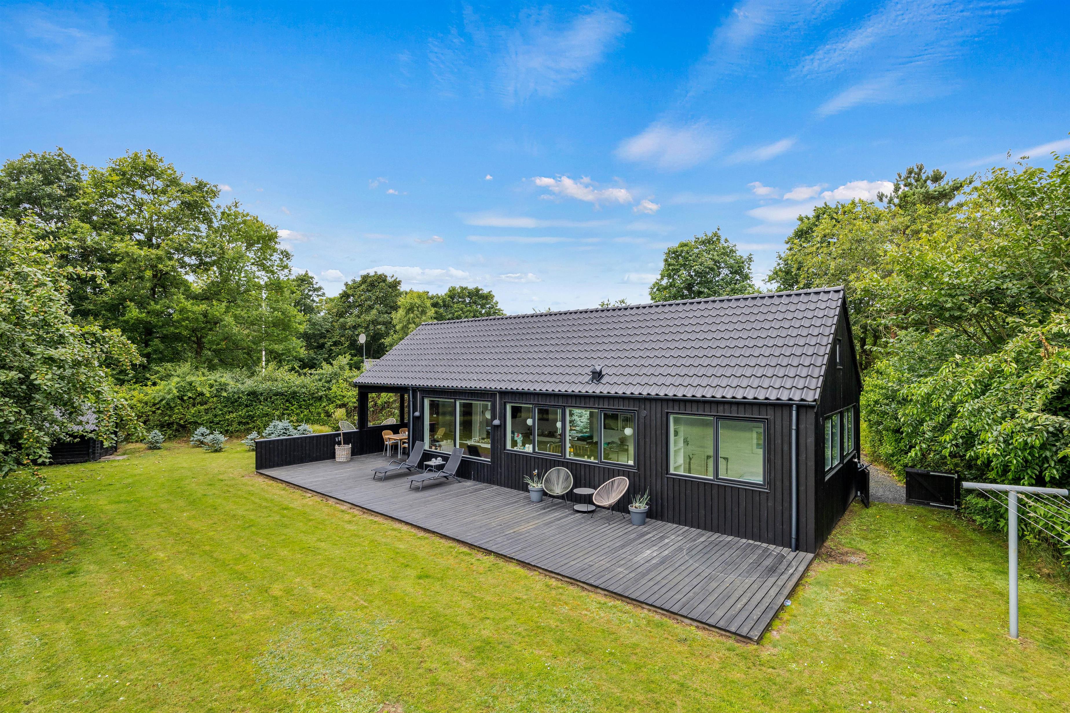 På denne 1556 kvadratmeter store plænegrund er der masser af plads til leg og boldspil for både børn og barnlige sjæle – selv de firbenede kan være med her. Omkring sommerhuset venter terrassen på jer. Denne er delvist afskærmet og overdækket, perfekt til afslapning i skyggen, mens andre er åbne og inviterer til solbadning.