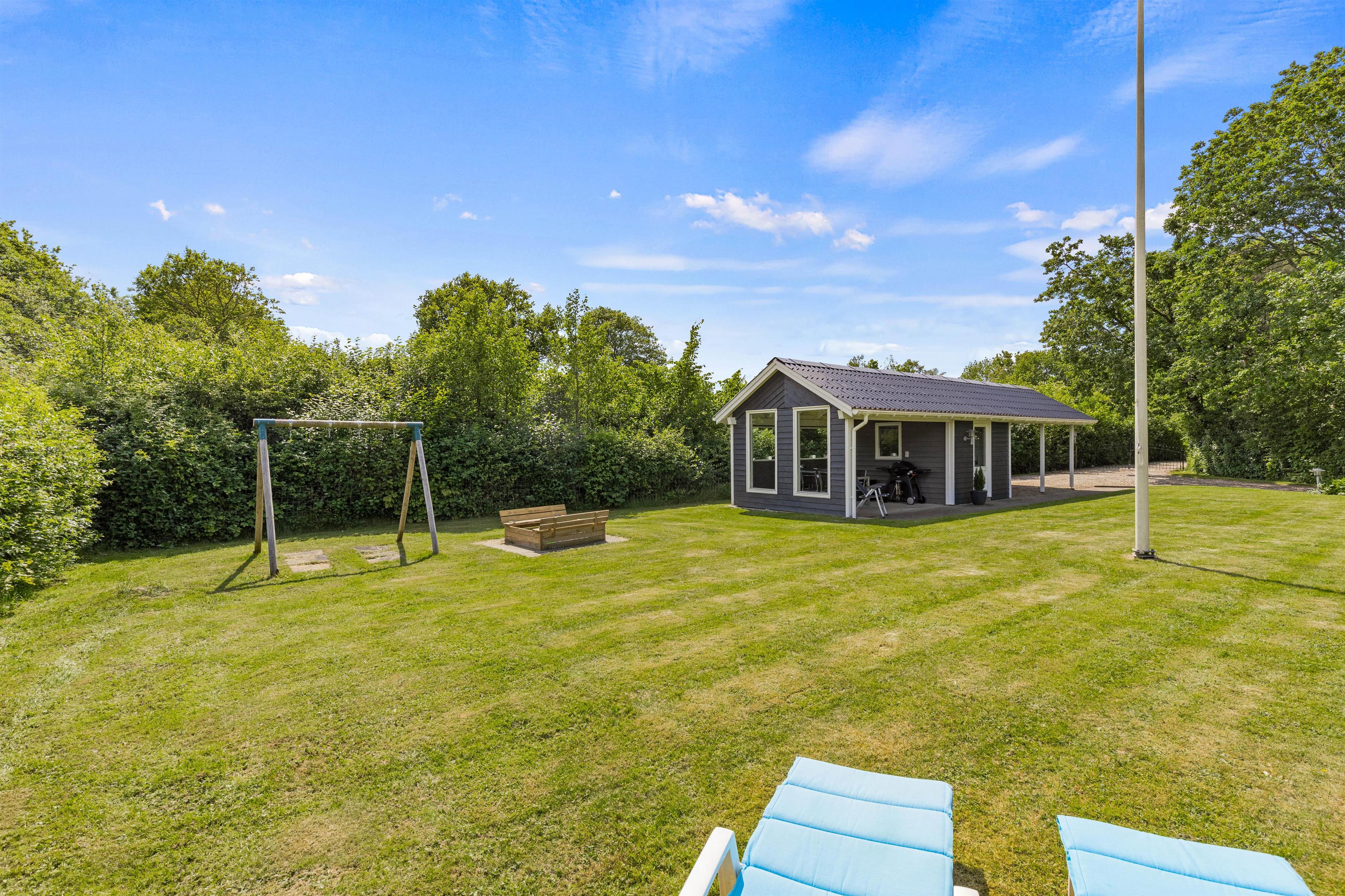 Sommerhuset er placeret på en 1560 kvadratmeter stor plænegrund, hvor der er rigelig med plads til at både store, små og hunden kan slå sig løs med leg og boldspil. Hele grunden er indhegnet, så I skal ikke være bange for at hunden og de mindste børn stikker af på eventyr fra sandkassen eller gyngen.