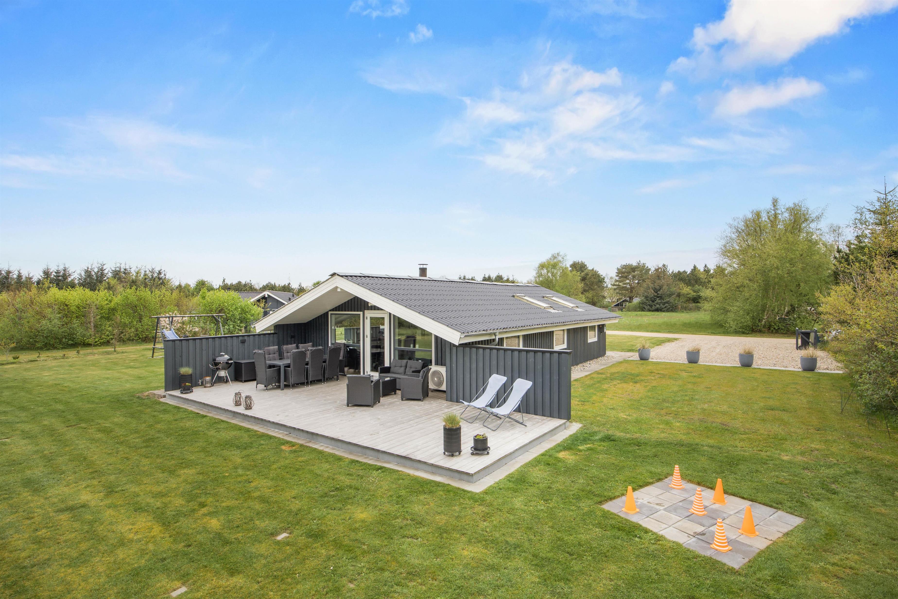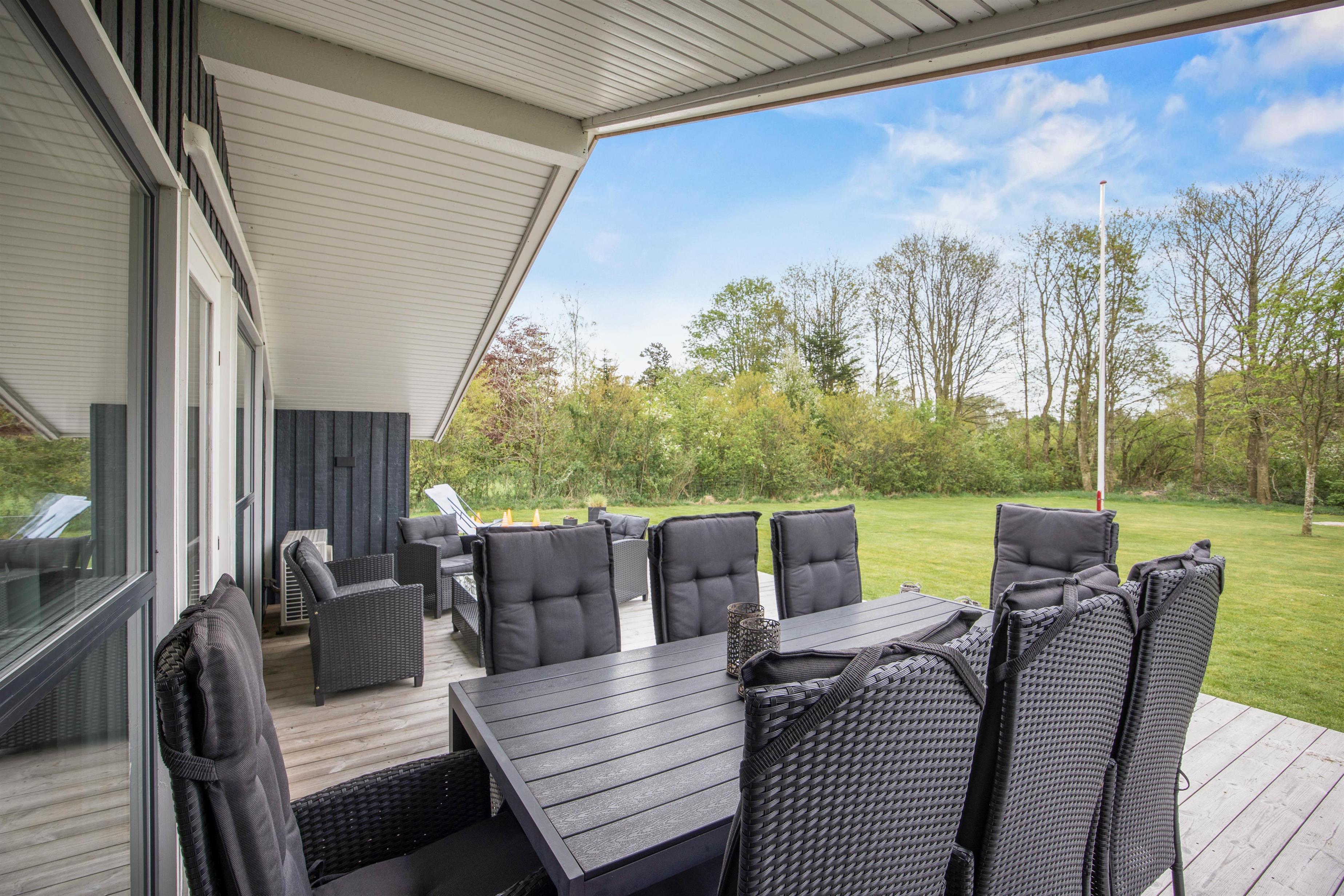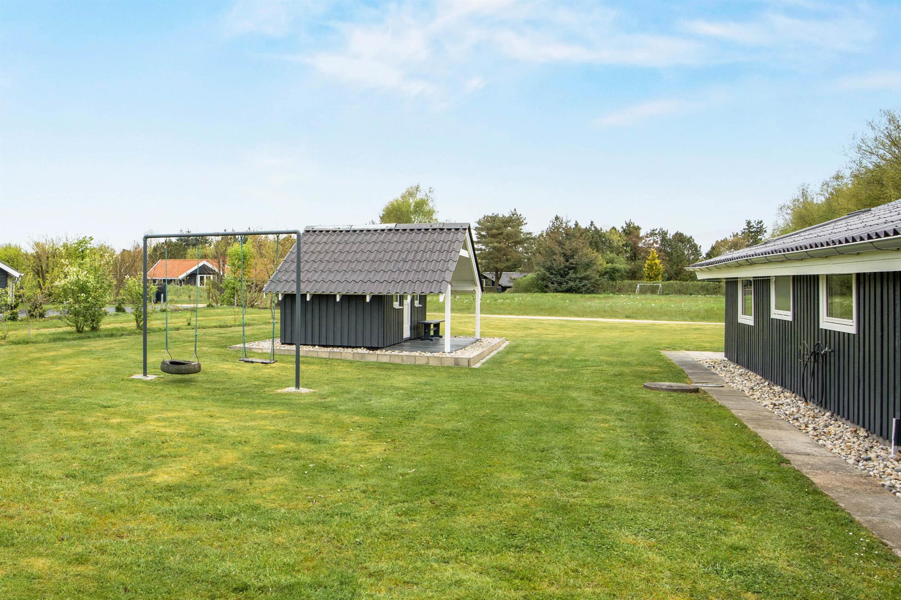 Liggestole, havemøbler og en grill er tilgængelige på terrassen, så I kan forkæle jer selv med mange timer i den friske luft, især på sommerdage. Mens børnene og hunden tumler rundt i haven, eller de yngste svinger højt på gyngen, forberedes feriens lækre måltider, som I derefter kan spise sammen, på sommerhusets terrasse.