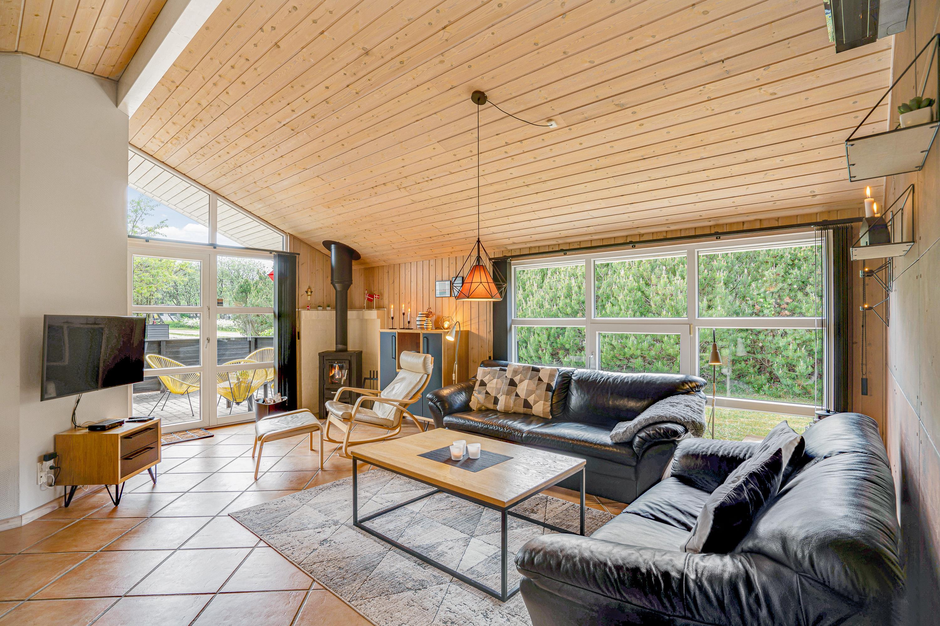 I stuen er der rigelig plads til hele familien med komfortable møbler, der inviterer til samvær og afslapning. Her kan I nyde en hyggelig aften foran brændeovnen, som spreder både varme og hygge.