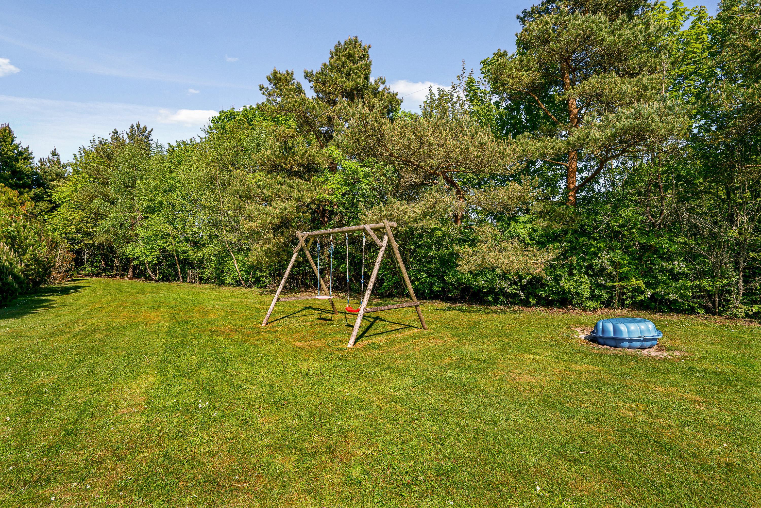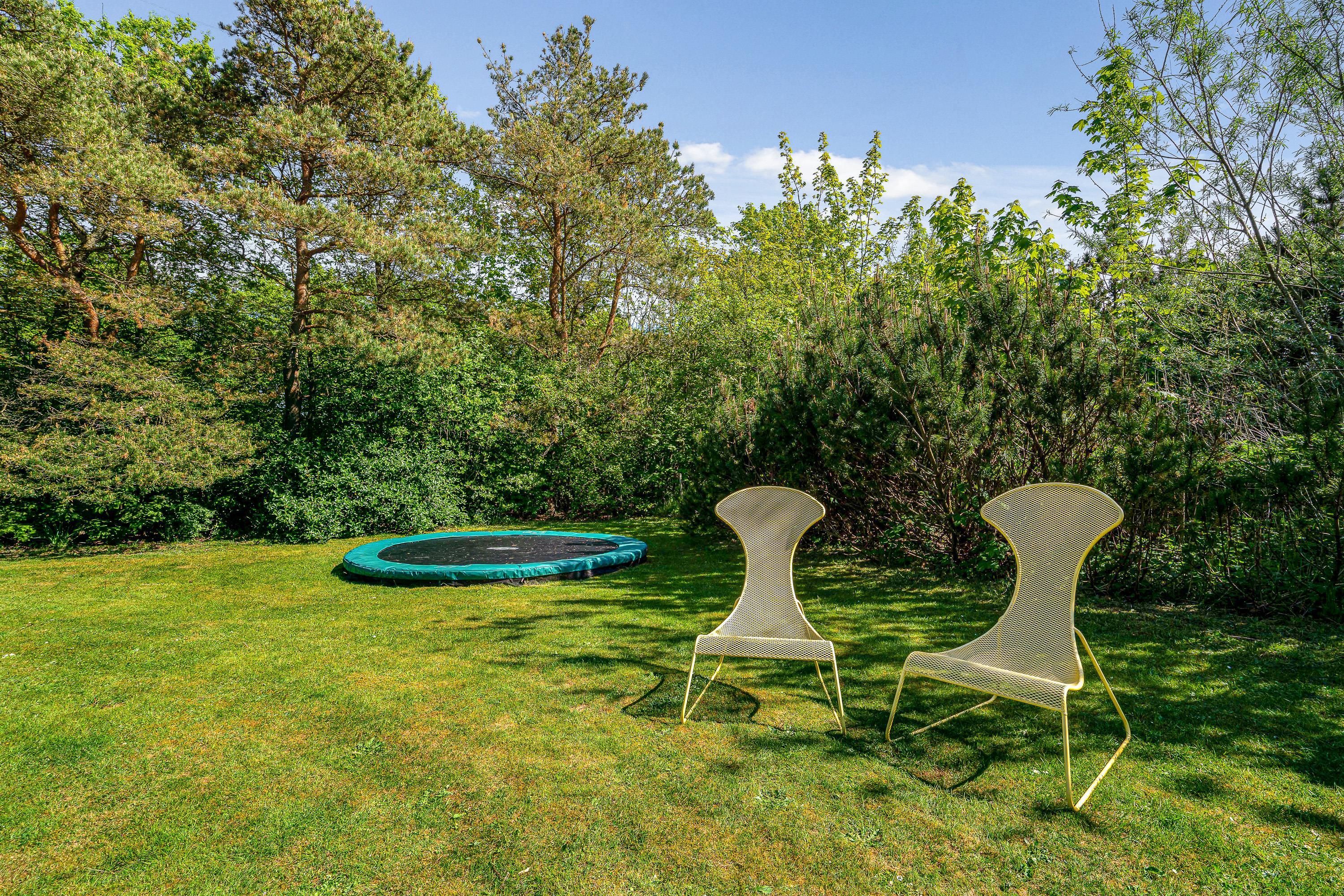 Morgenmaden kan let flyttes udendørs på de solrige dage, især hvis I starter dagen med friske forsyninger fra den lokale købmand. Den rummelige græsplæne tilbyder rigelig plads til boldspil og leg, mens de yngste fryder sig over gyngestativet, sandkassen og trampolinen. For de voksne tilbyder terrassen liggestole, perfekt til afslapning og solbadning.