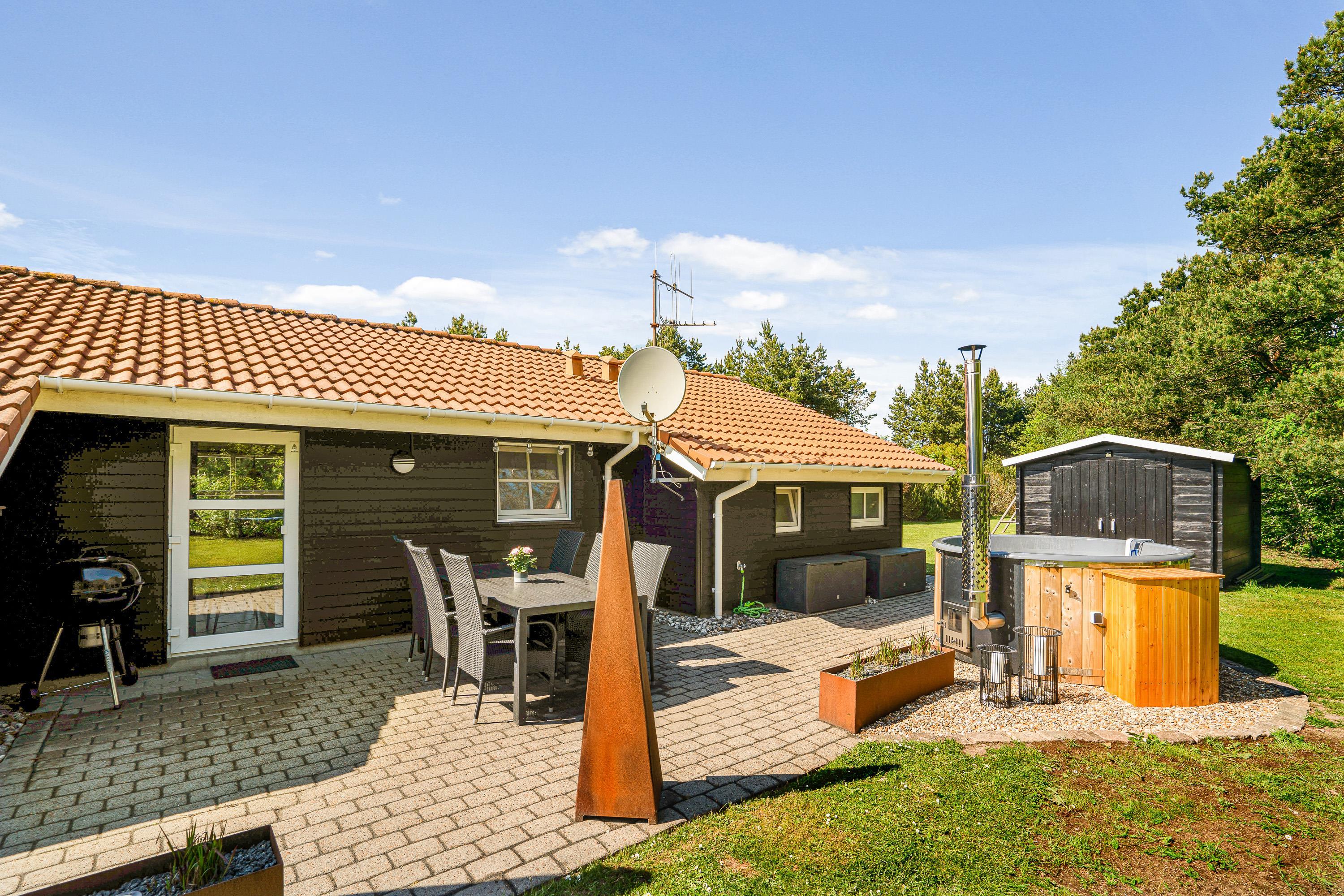 Udeområdet ved sommerhuset er en sand oase, der indbyder til både afslapning og leg for hele familien. På terrassen, der er udstyret med komfortable havemøbler og en grill, har I mulighed for at tilberede og nyde lækre måltider under åben himmel.
