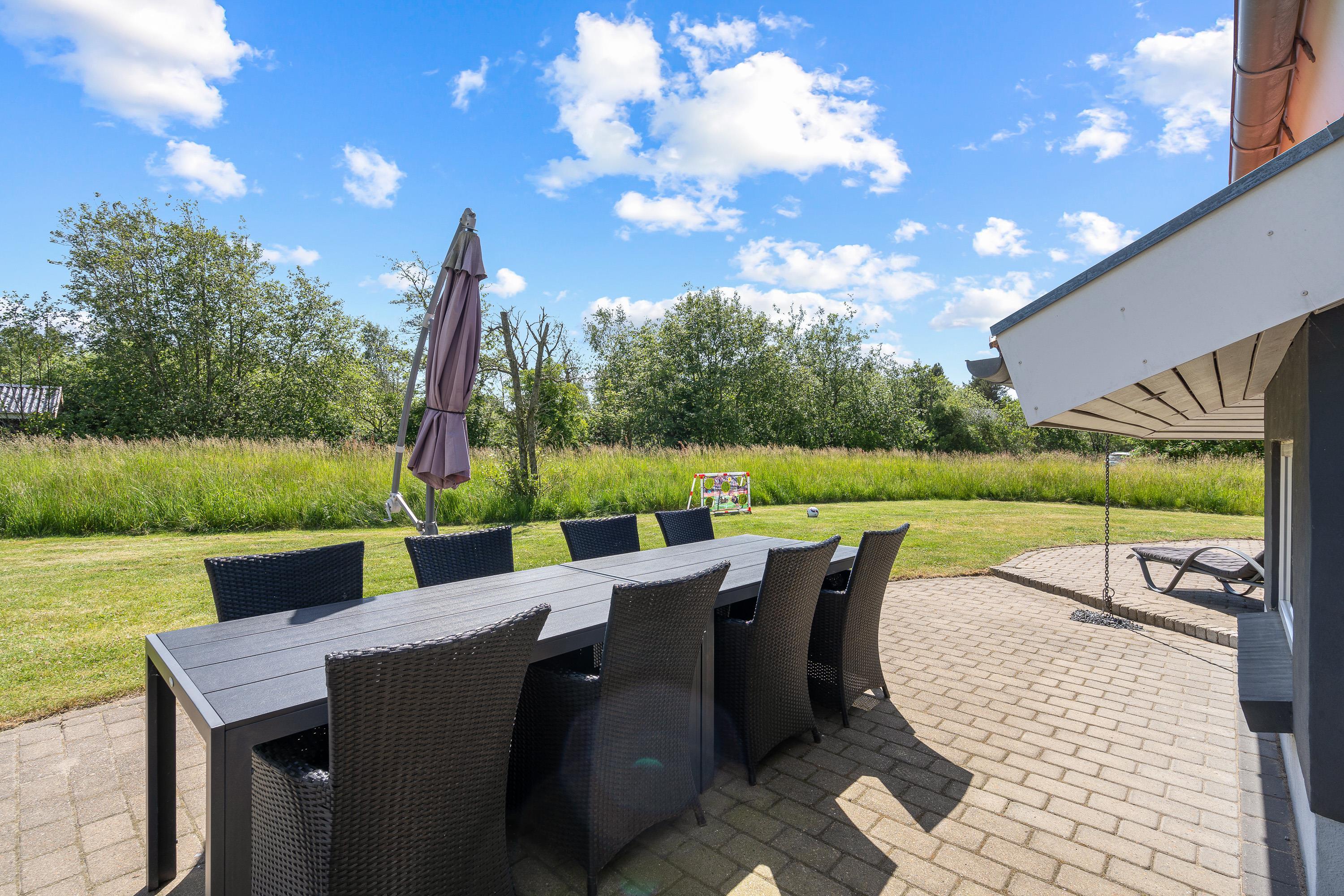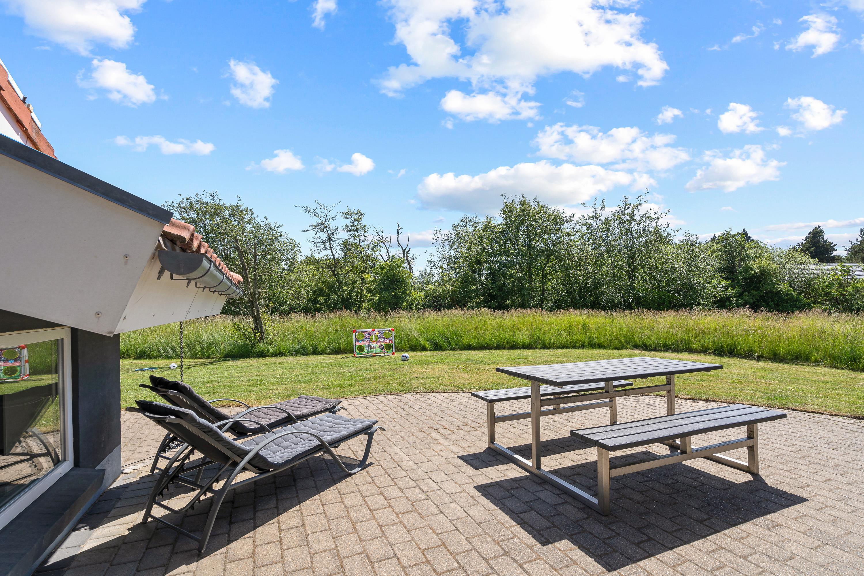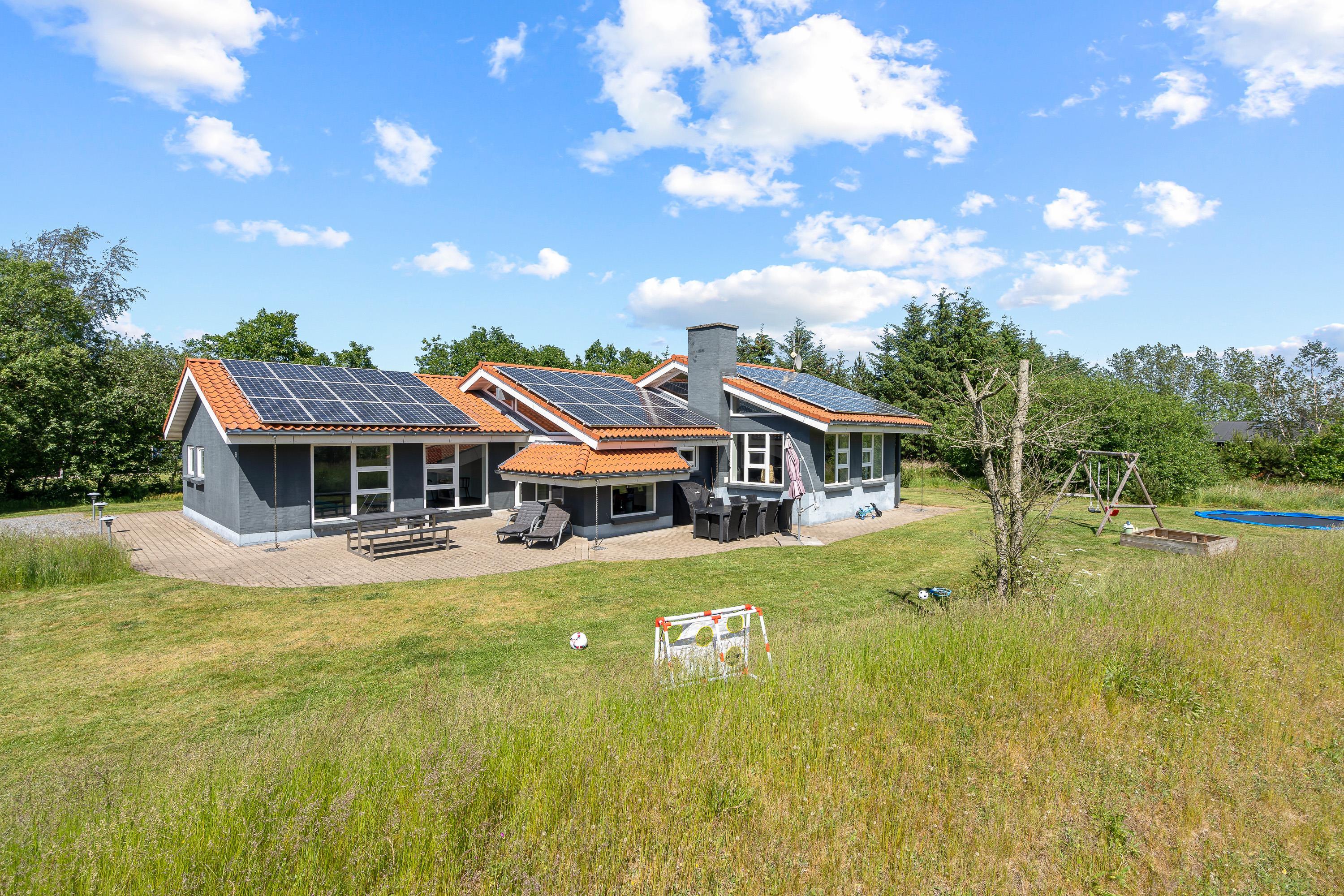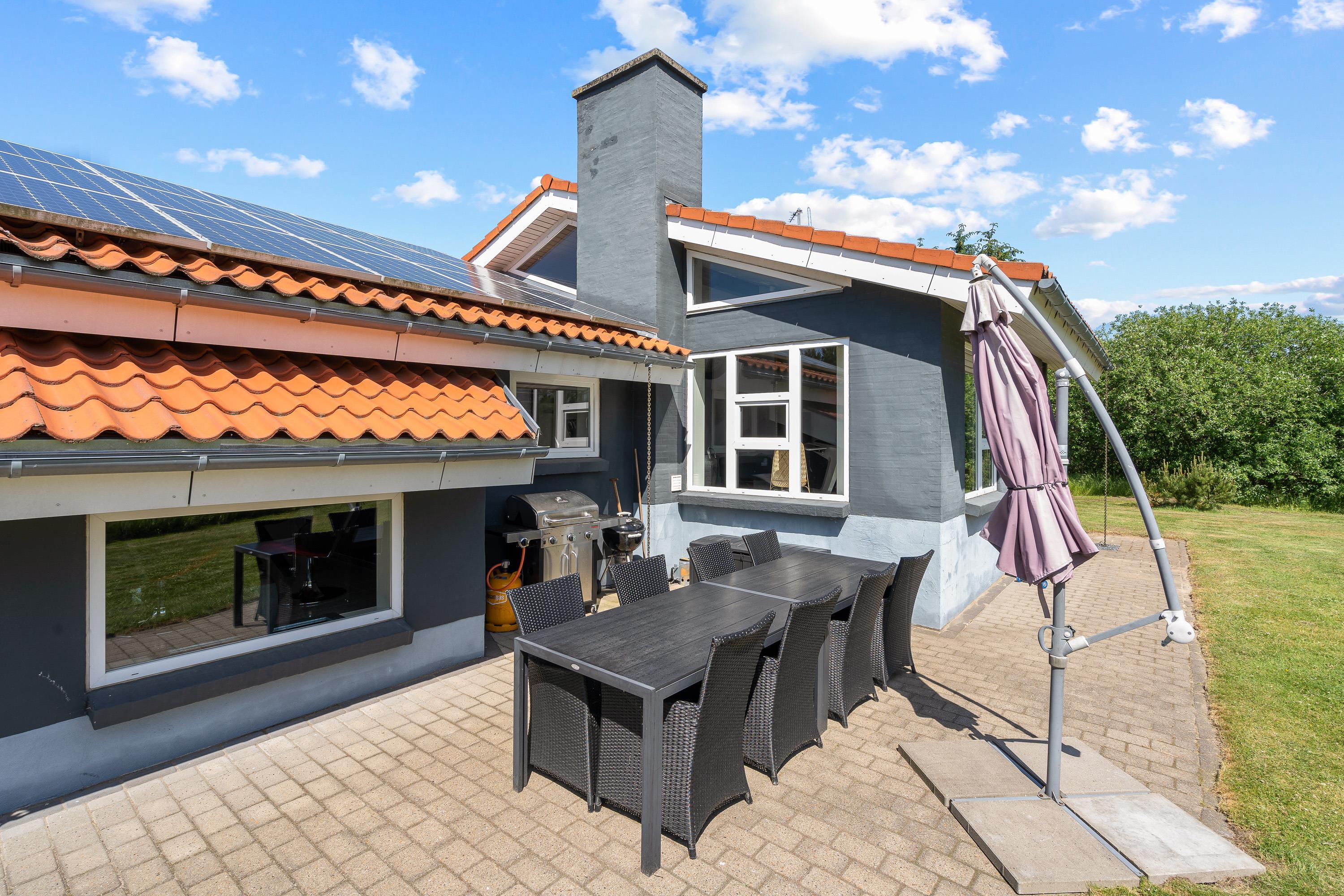 Udenfor vil I finde en velplejet plænegrund på 1801 kvadratmeter, hvor hele familien kan nyde udendørslivet. Der er både en kulgrill og en gasgrill til jeres rådighed, så I kan tilberede lækre måltider udendørs, mens I nyder det danske sommervejr.