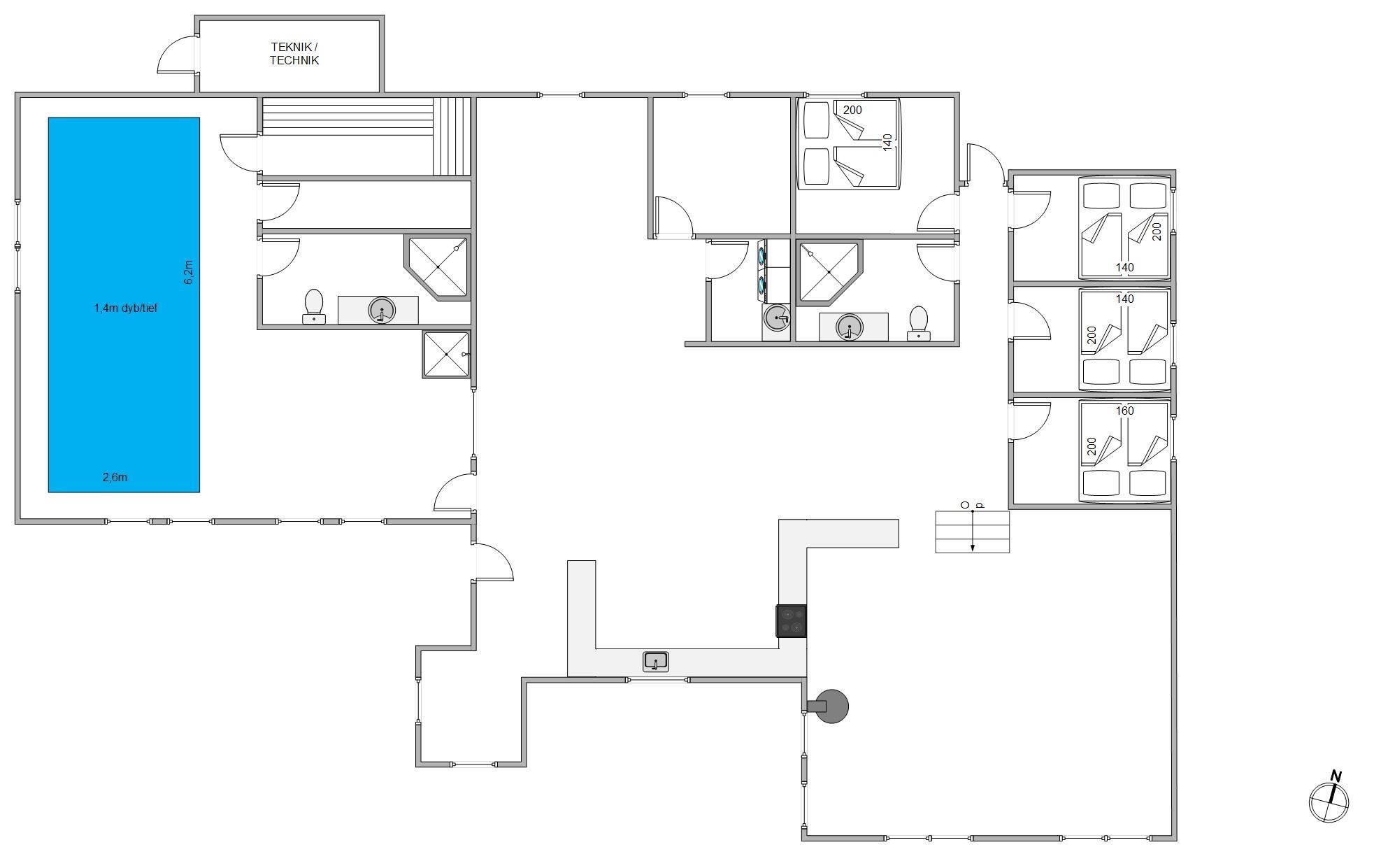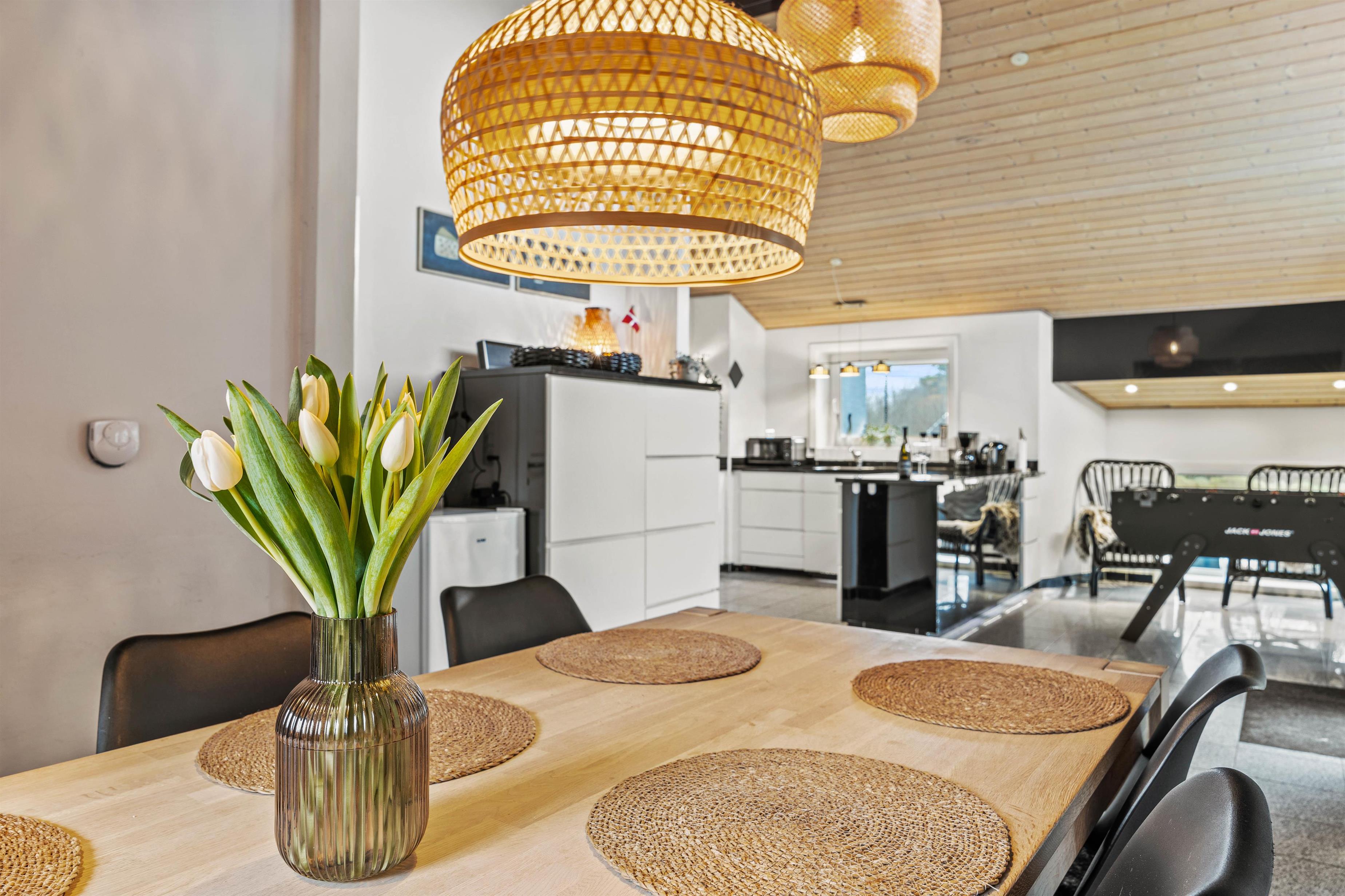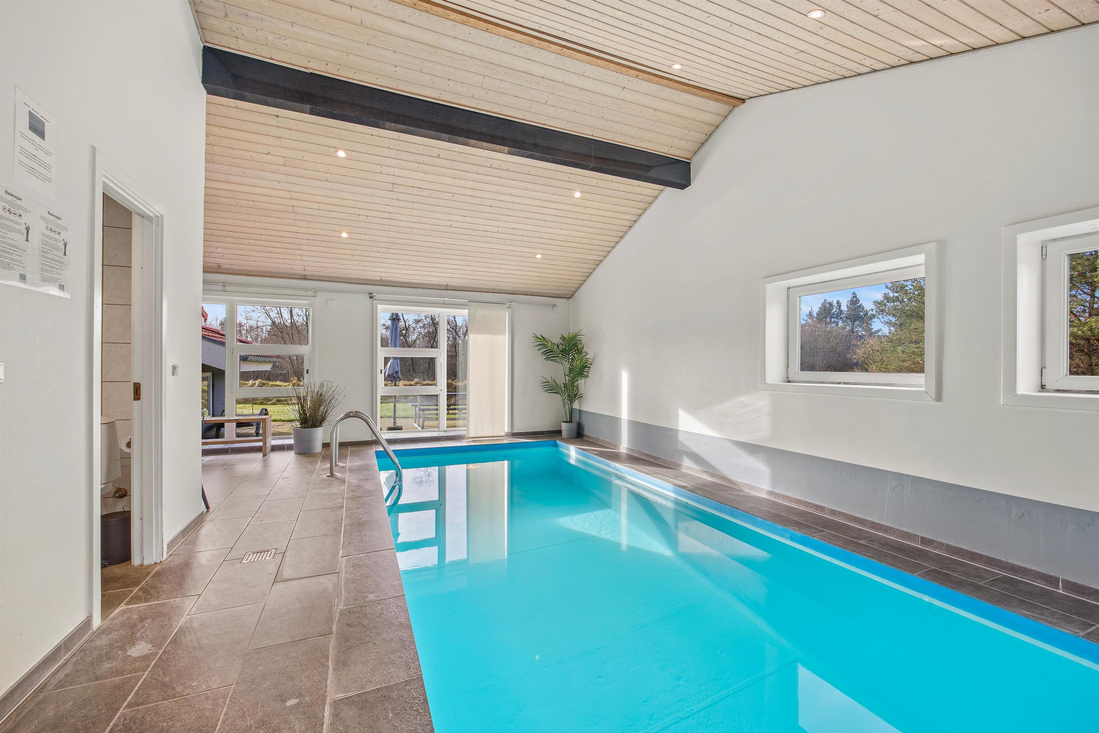Bevæger man sig videre ind i de bløde sofamøbler, omfavnes man af den varme brændeovn der især på kølige aftener indbyder til hygge over en kop varm kakao og et spil kort. I har også mulighed for at forkæle jer selv i husets sauna efter en dag fuld af oplevelser. Hvis I trænger til at få pulsen op, kan I tage en forfriskende svømmetur i den indendørs pool, der virkelig sætter prikken over i’et i jeres ferieoplevelse, eller tage et spil billard i det store aktivitetsrum. Poolen opvarmes af en luft til vand varmepump, som både sikrer en lækker temperatur på 28-30 grader og er energivenlig så I sparer penge.