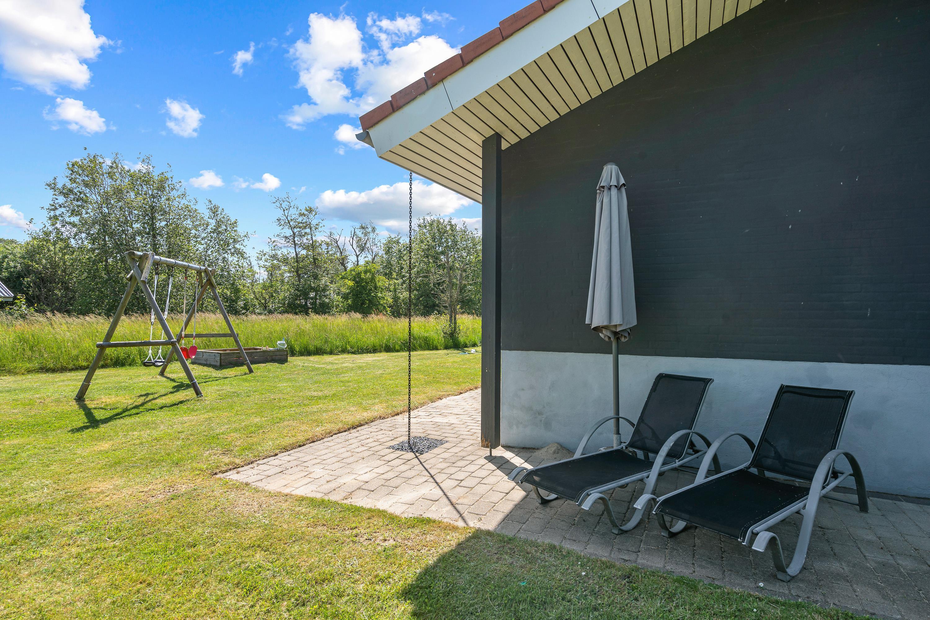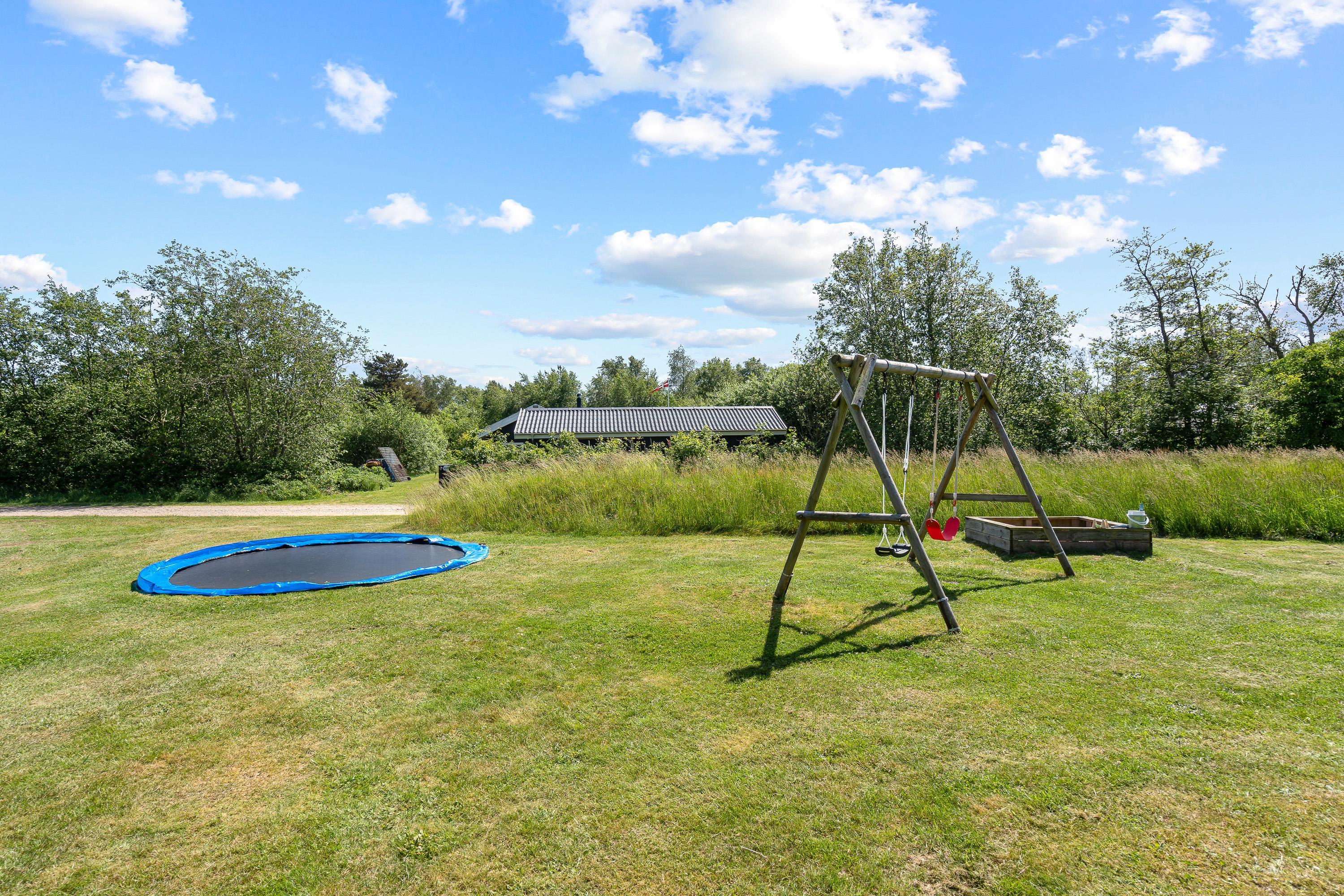 Havemøbler, parasol og liggestole giver jer mulighed for at slappe af og nyde solen. For de mindste er der både gynger, en sandkasse og en trampolin, der vil holde børnene underholdt og glade i timevis.