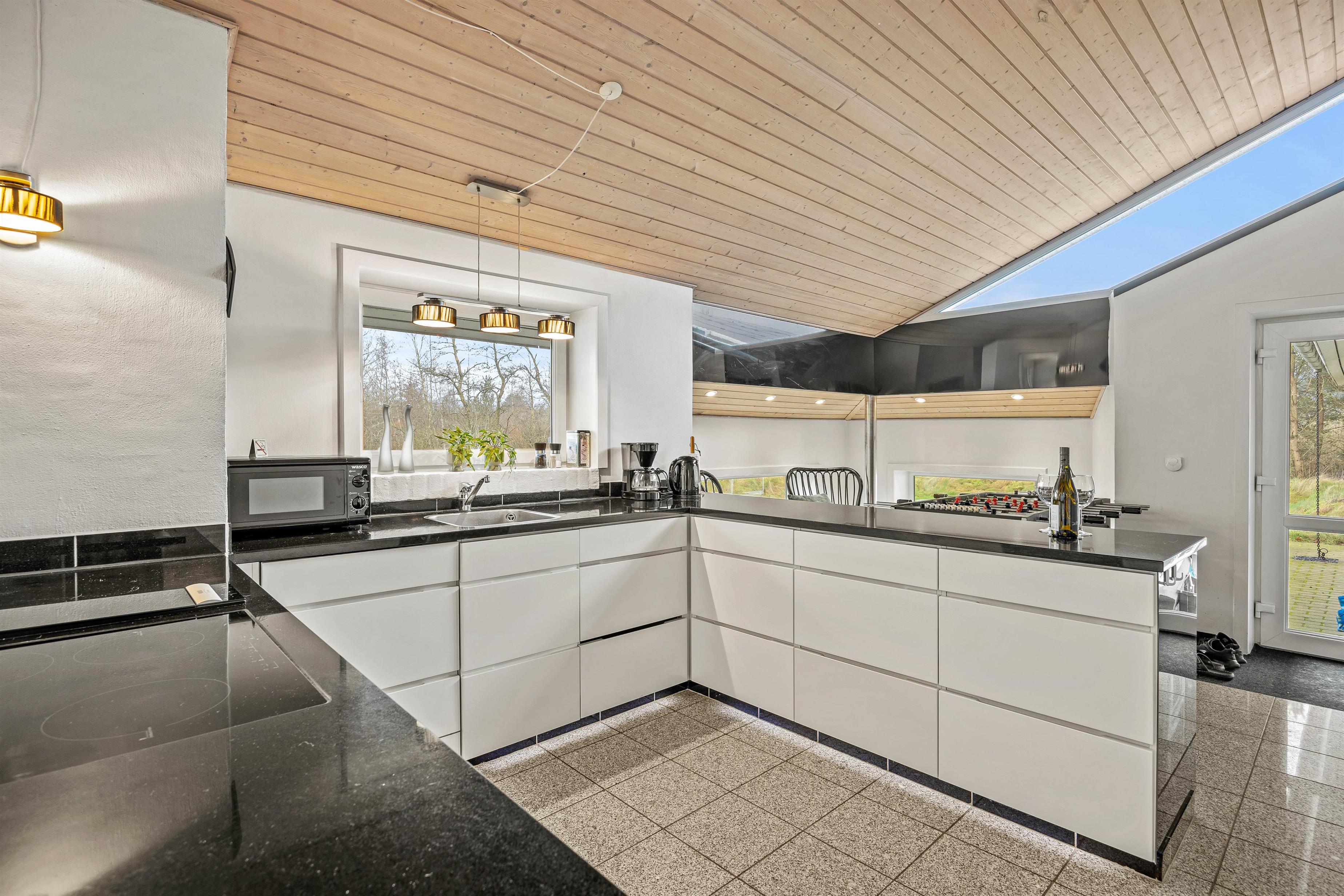 Sommerhuset indeholder også andre goder såsom tørretumbler, vaskemaskine og opvaskemaskine, som alle bidrager til en mere afslappende ferie og gulvvarmen, som strækker sig igennem hele sommerhuset, sørger for, at I altid kan holde varmen, uanset hvilken årstid I besøger.