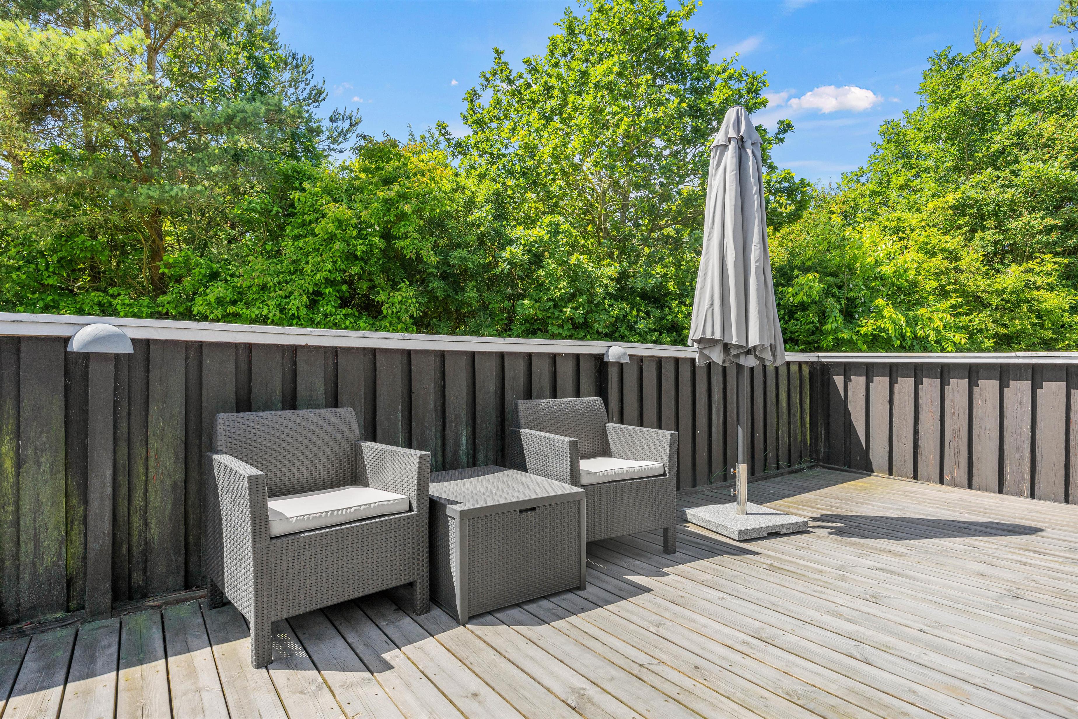 Den store åbne terrasse indbyder til at nyde den friske luft og tilbringe afslappende timer under åben himmel. For de små gæster byder haven med den store græsplæne på masser af muligheder: trampolin, gynge, rutsjebane og basketballkurv. Børnene kan boltre sig efter hjertets lyst, mens I slapper af og ser på.