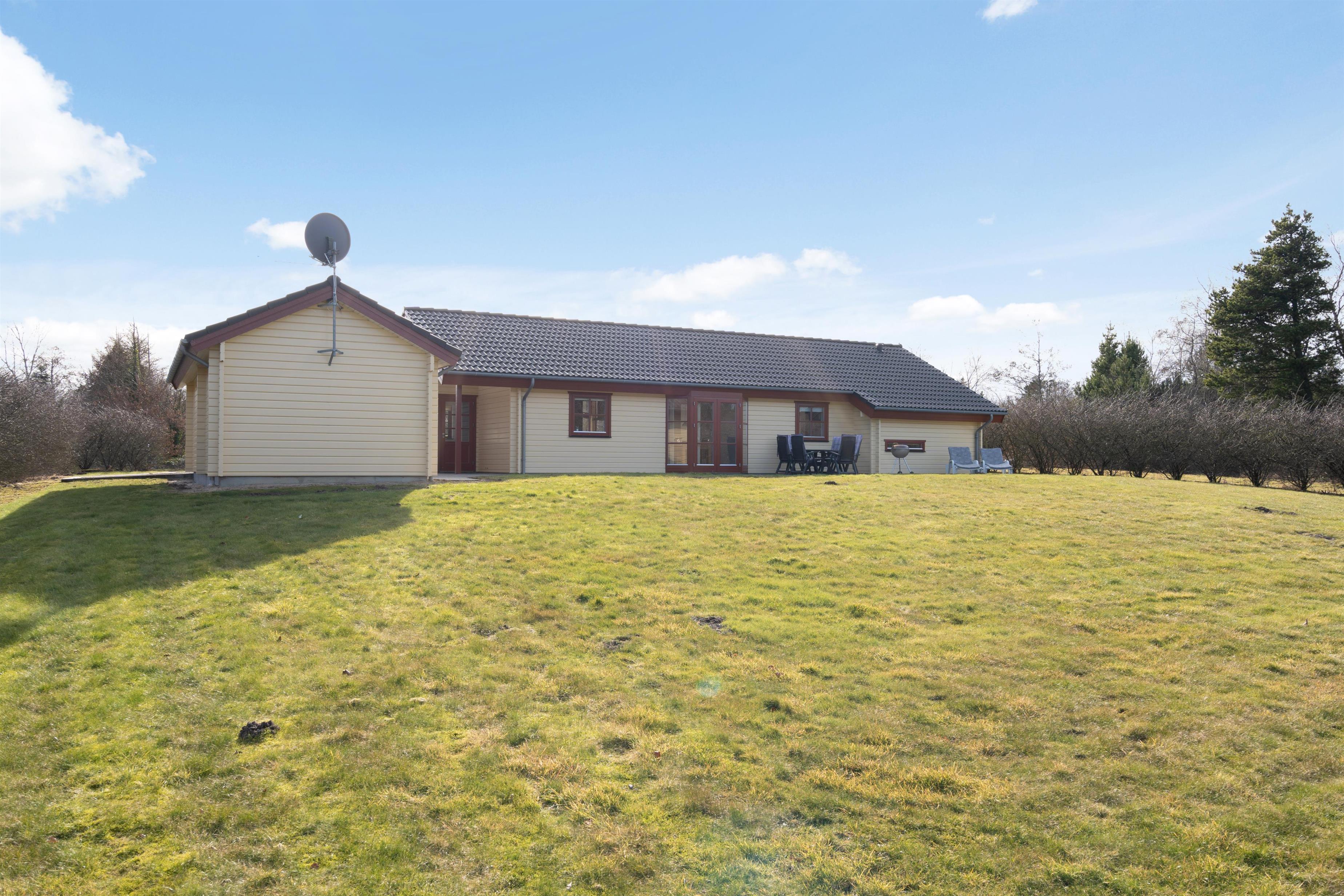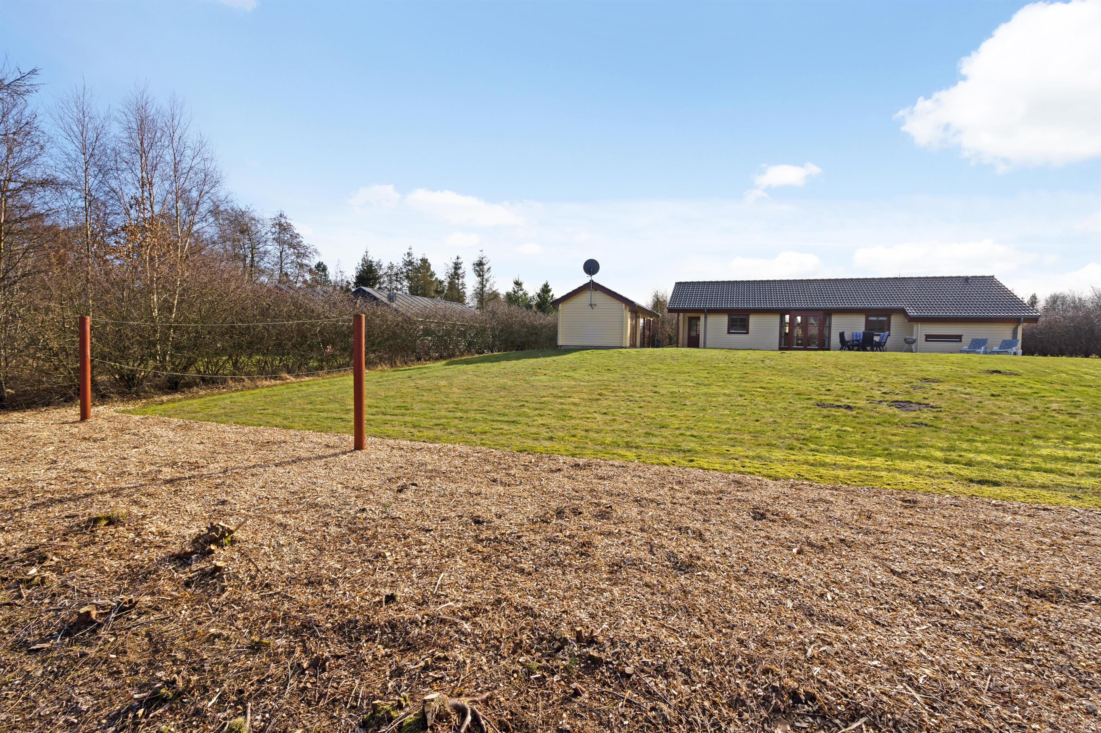 Med 1600 m2 grund er der masser af plads til både aktiviteter og afslapning. Sommerhuset grænser op til et grønt område, hvor Henne Å bugter sig gennem naturen.