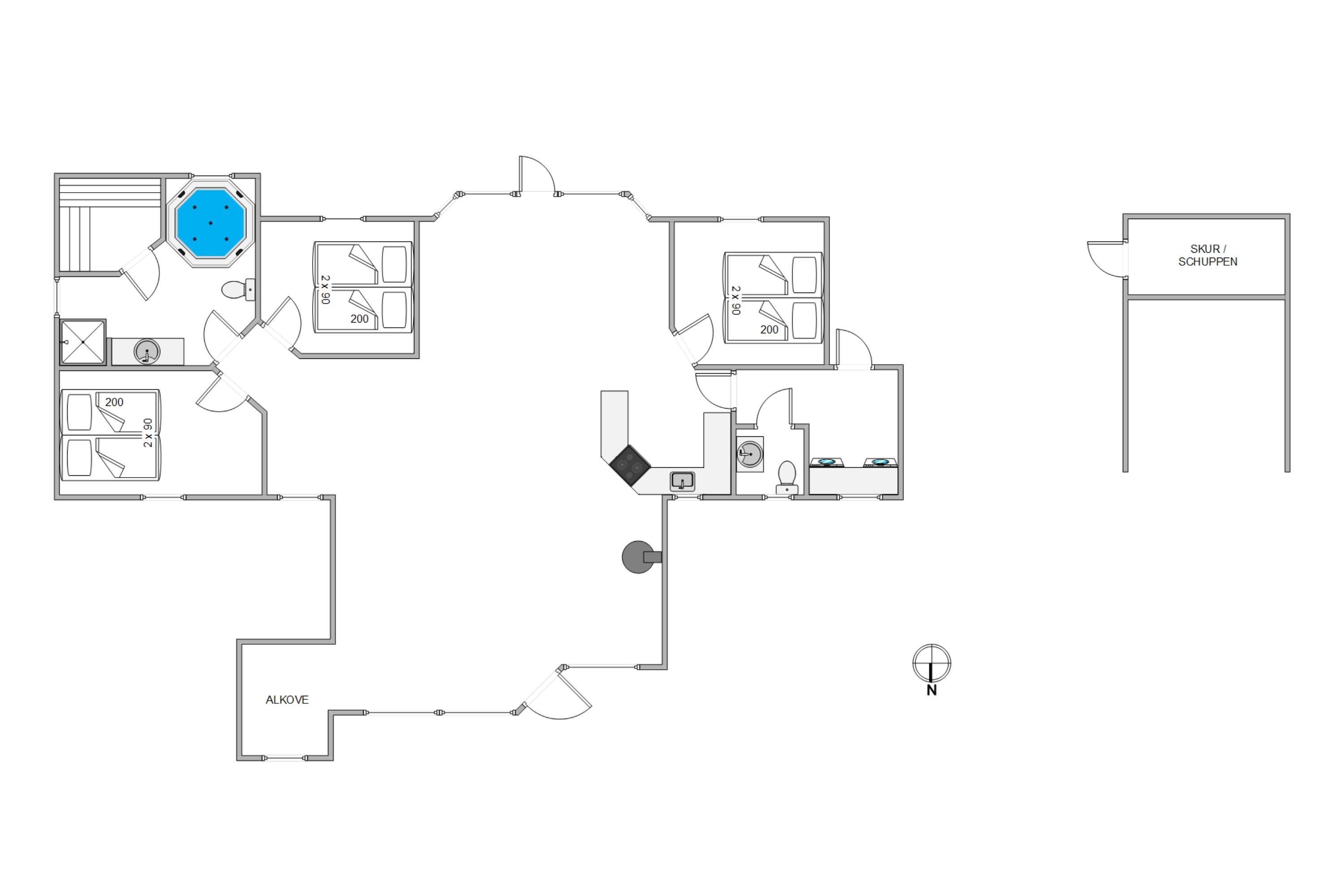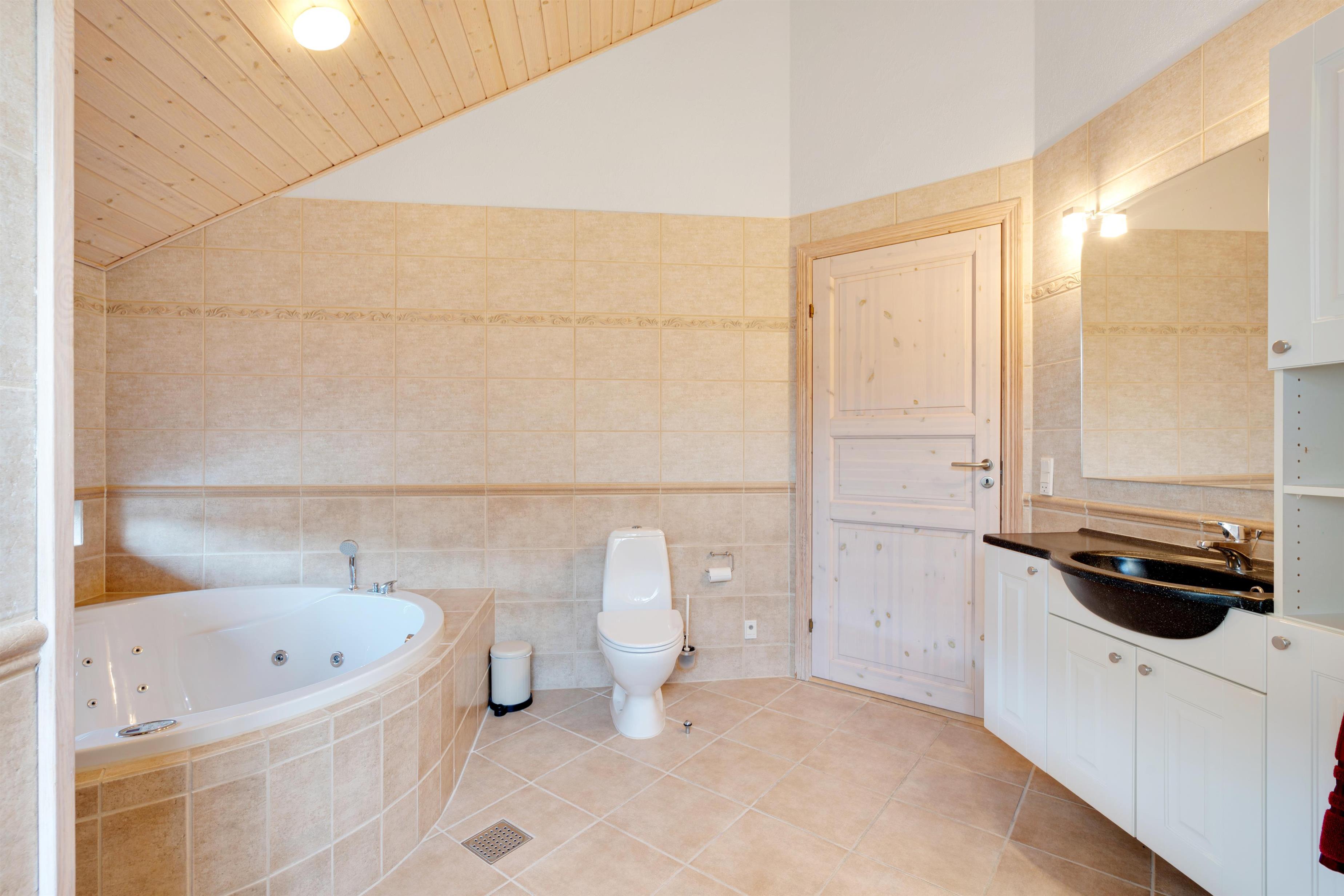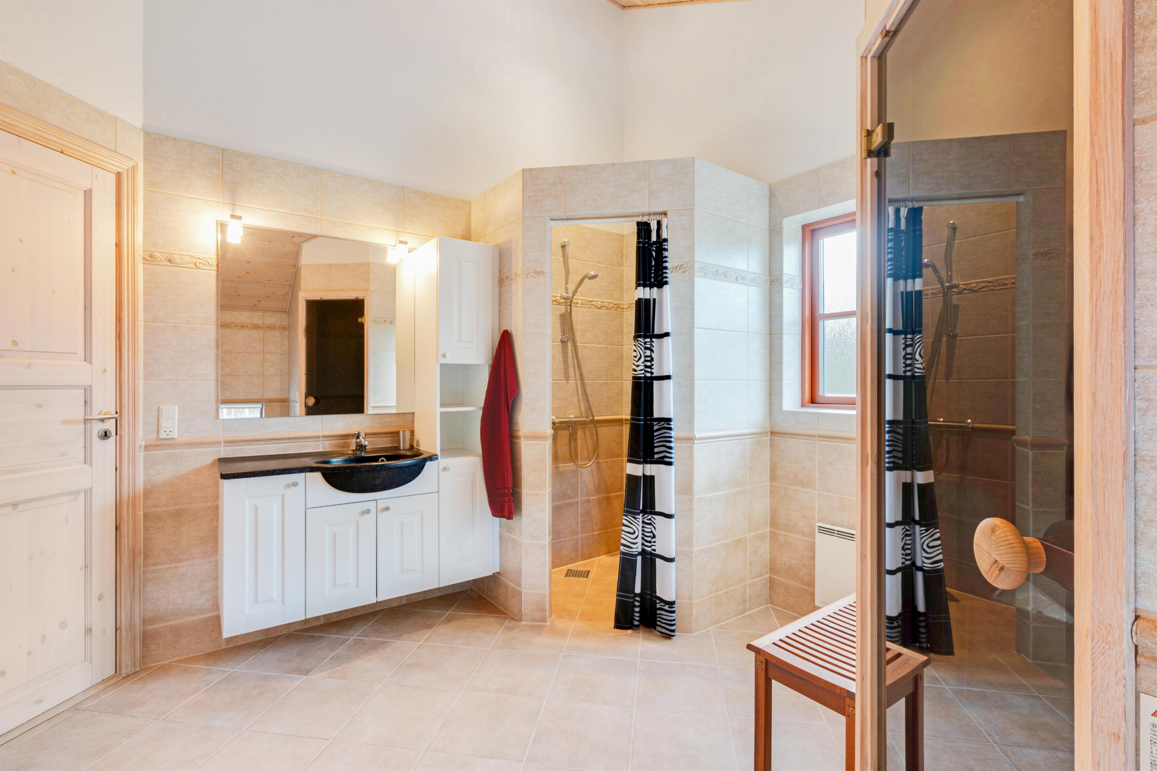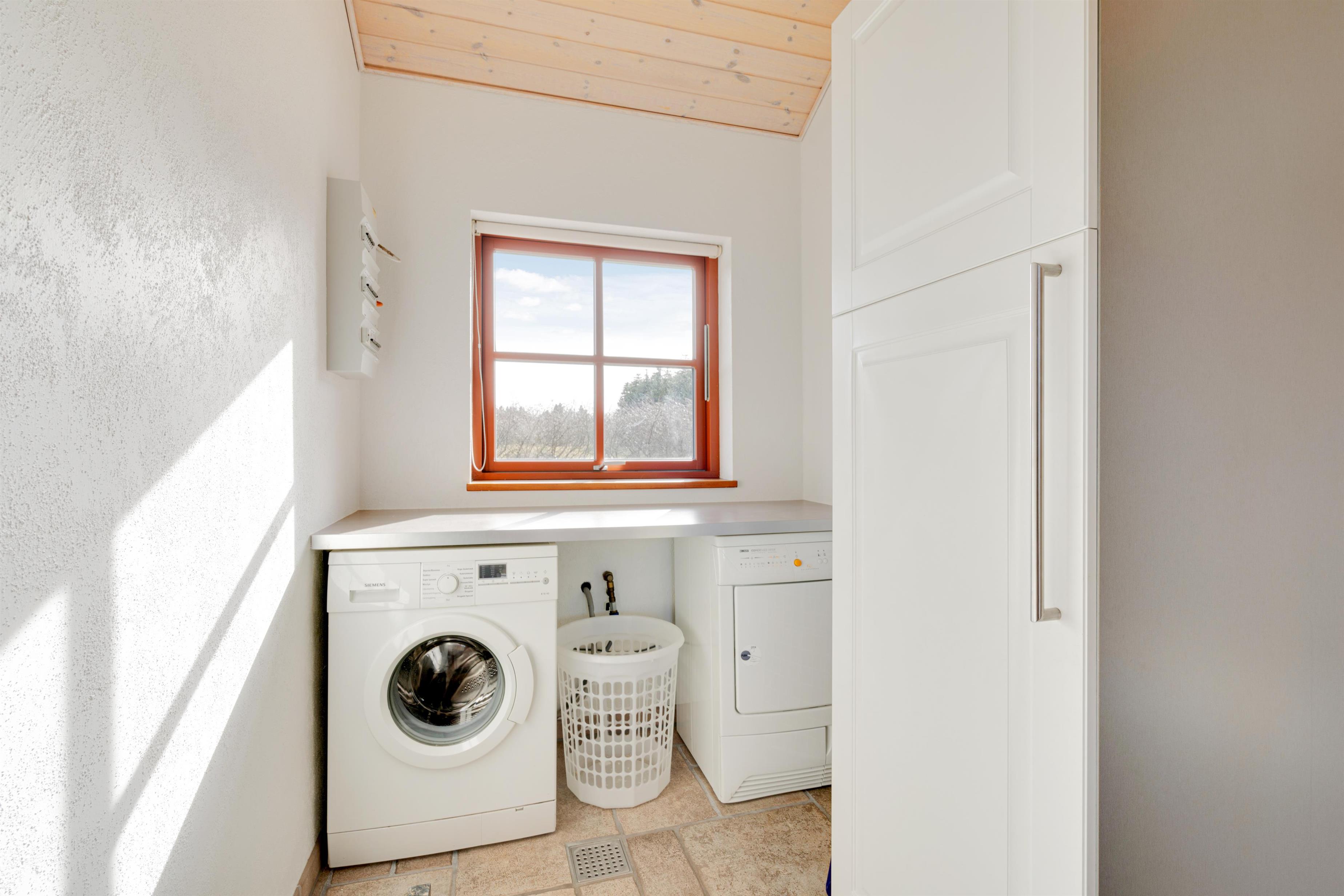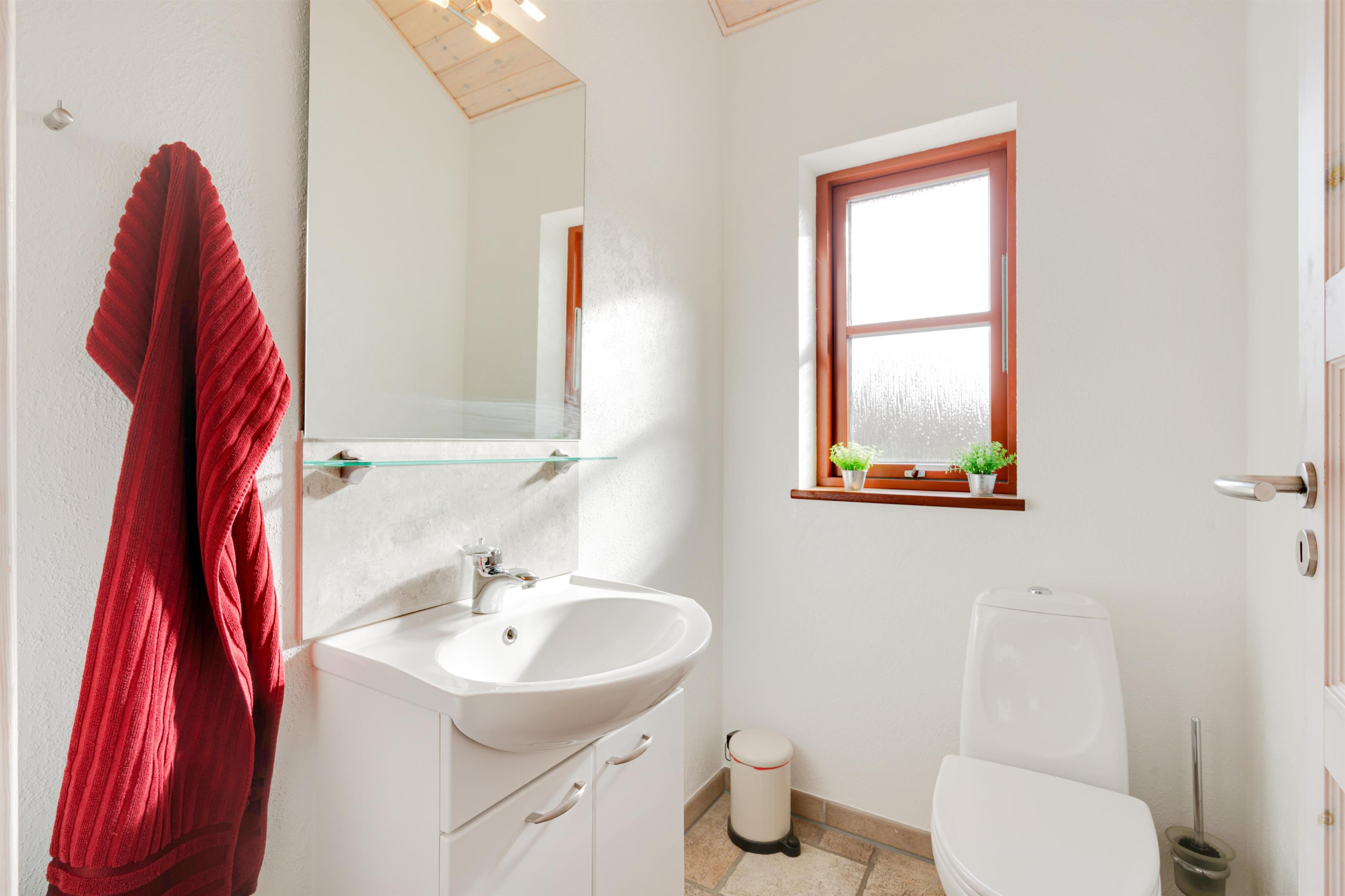 Badeværelset fuldender komforten i sommerhuset og er udstyret med gulvvarme, en tømmespa og en sauna, hvilket giver jer mulighed for at koble helt fra og slappe helt af. Der er også et praktisk gæstetoilet, der sikrer ekstra bekvemmelighed for alle. I entreen finder I både en vaskemaskine og en tørretumbler, hvilket gør det let at holde tøjet frisk under jeres ophold.
