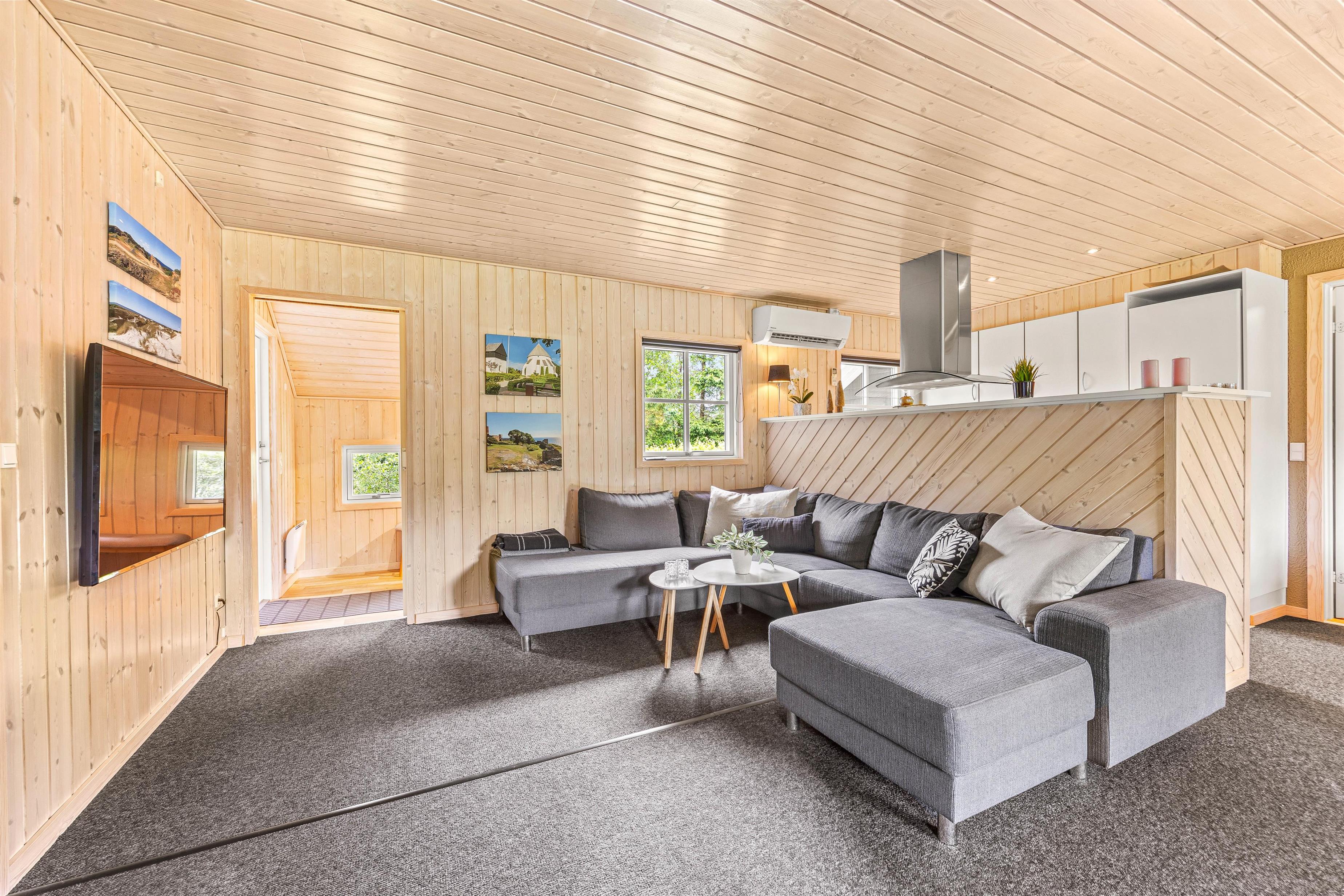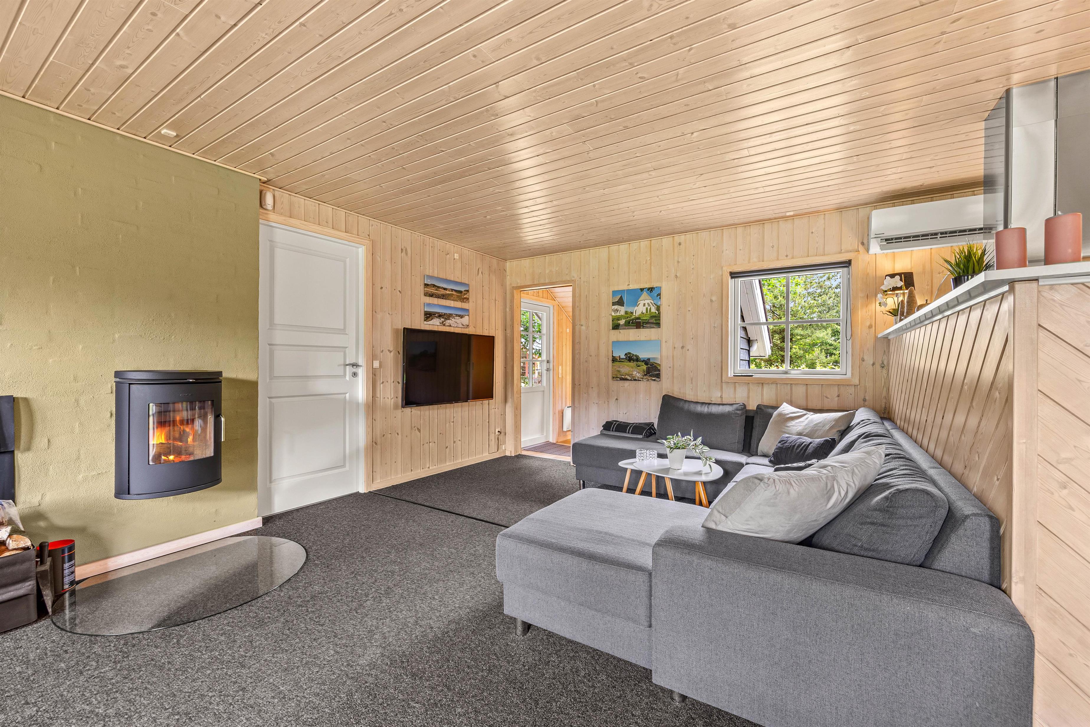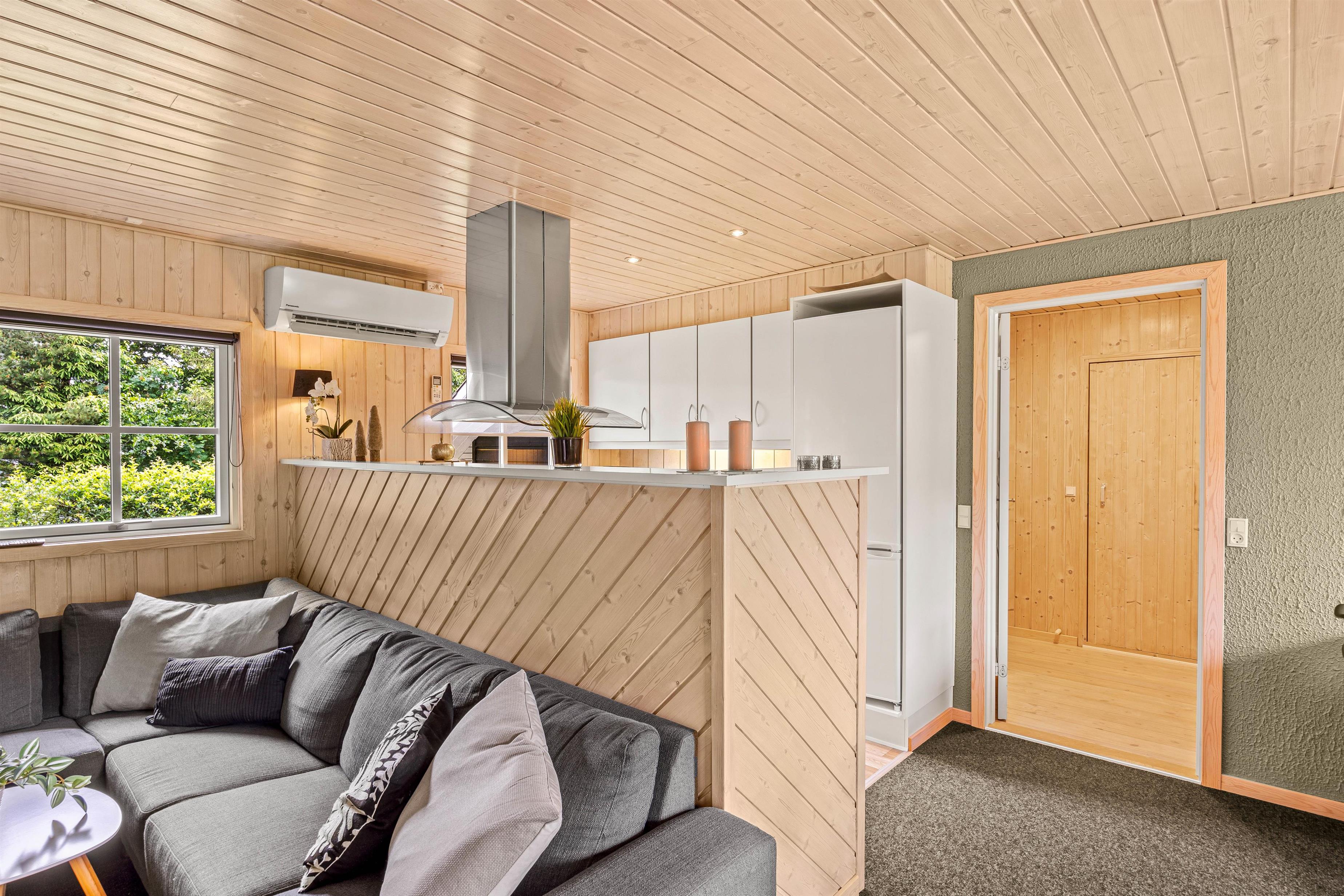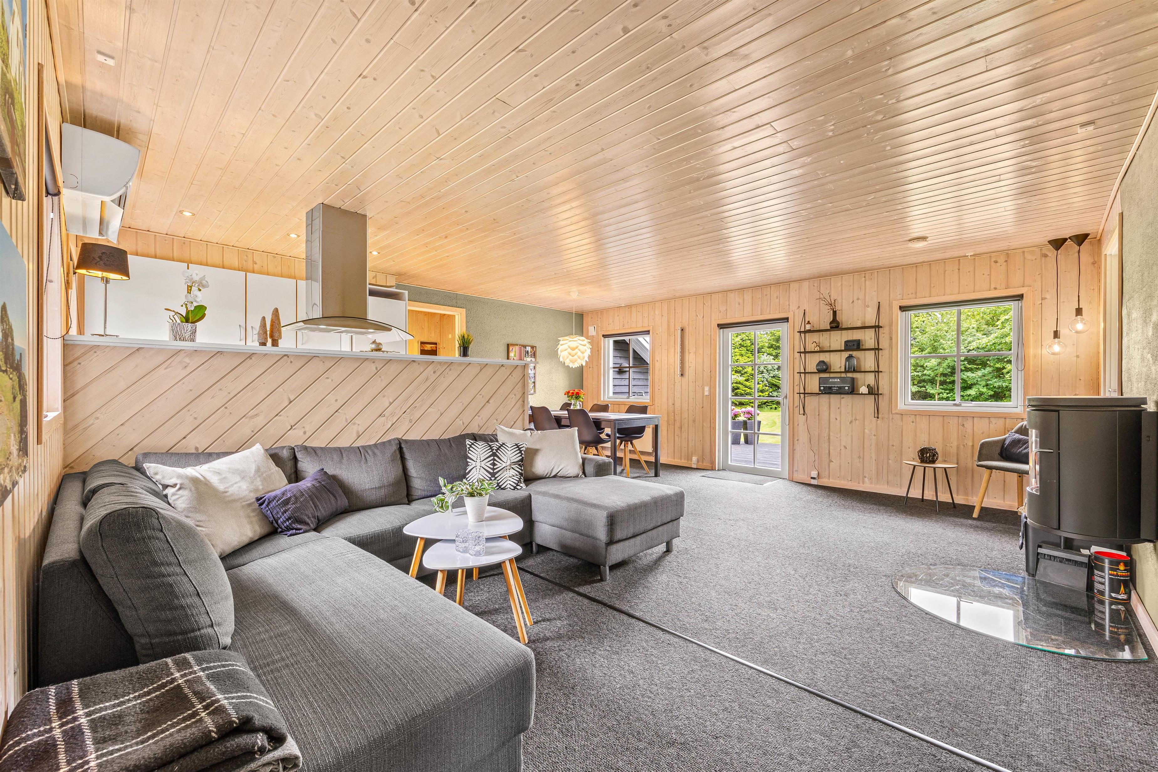 I køkkenet finder I en praktisk opvaskemaskine, så I nemt og hurtigt kan komme tilbage til hyggen eller ud på dagens eventyr. Køkkenet er i åben forbindelse med stuen, så samtalen kan fortsætte under madlavningen. Sommerhuset indbyder til hygge med sin lyse indretning og sans for detaljen. I stuen er der en hyggelig brændeovn, som skaber en behagelig atmosfære på de kølige dage. Her er også en stor blød sofa med plads til hele familien, så I kan samles og nyde hinandens selskab.