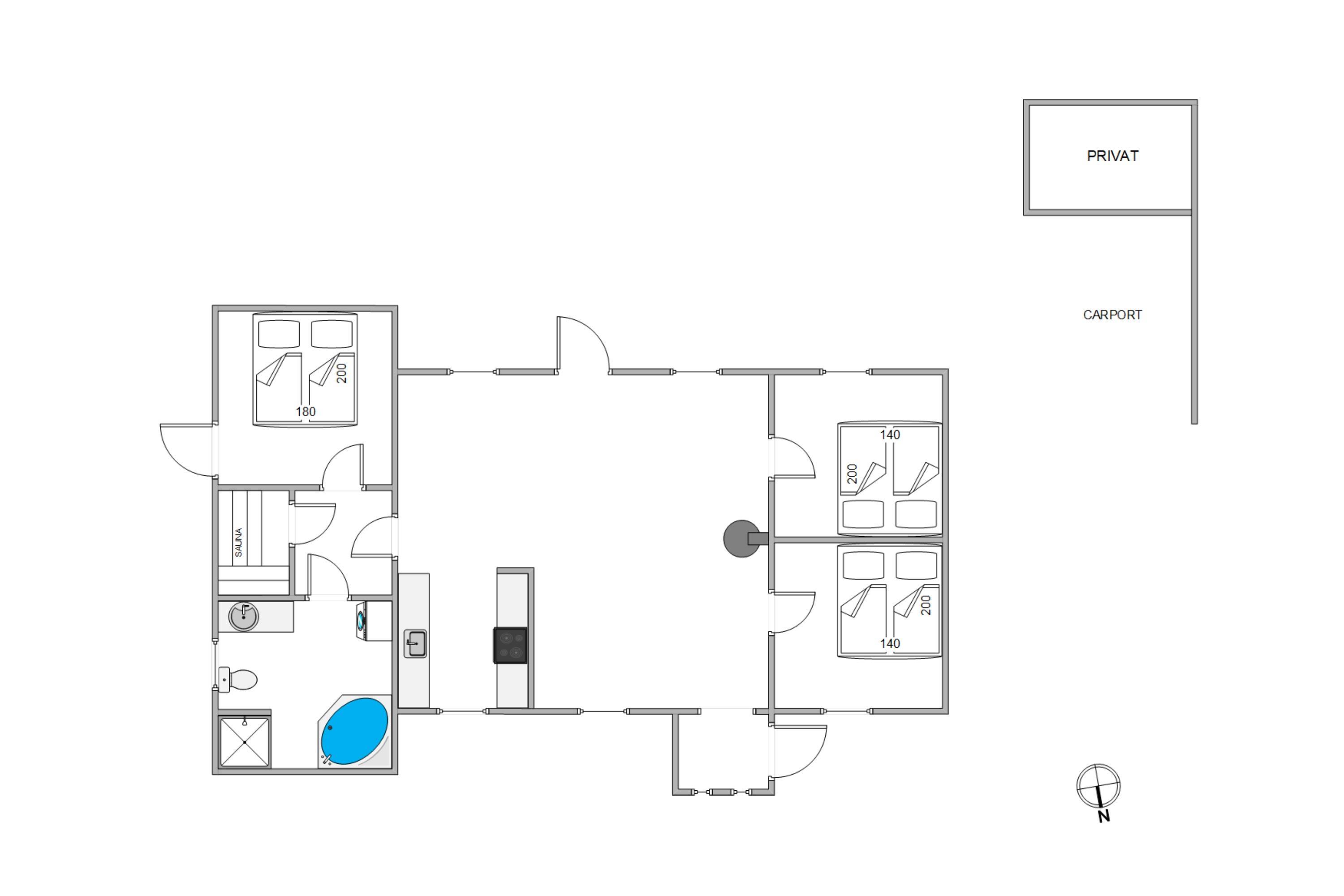 Sommerhuset byder på tre lyse soveværelser alle indrettet med dobbeltsenge. Dette gør det muligt at have en god og komfortabel søvn for alle husets gæster.