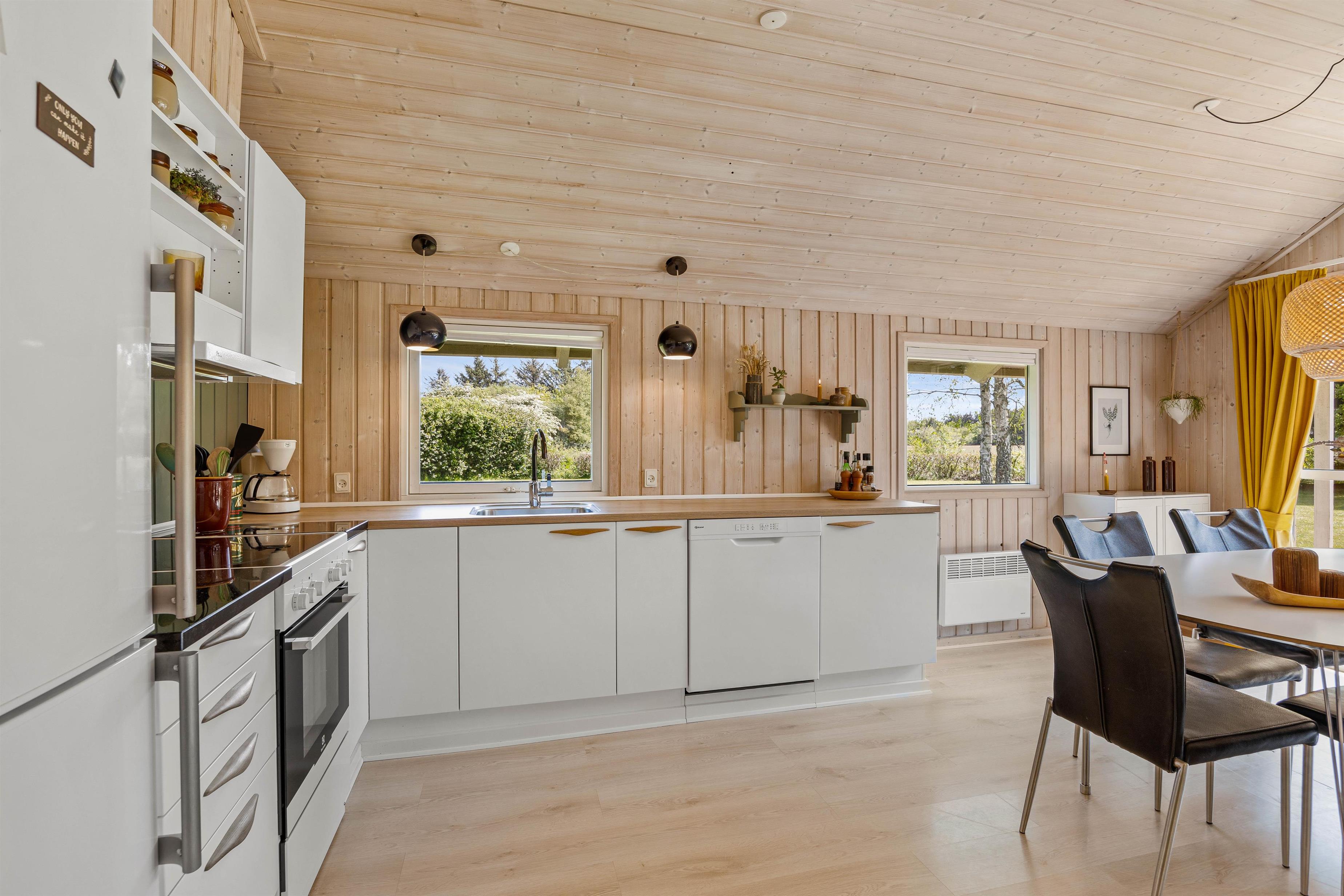 Dette velholdte og godt udstyrede sommerhus på Hybenvangen 8 har plads til en familie med op til 5 personer og 1 hund. Det ligger i Jegum Ferieland, hvor der er en offentlig legeplads, midt i et område med masser af natur, kun 10 minutters kørsel fra det brusende Vesterhav. Sommerhuset egner sig især godt til familier med børn, men også par, der nyder lange gåture i naturen eller bare vil nyde livet på terrassen fuldt ud.
