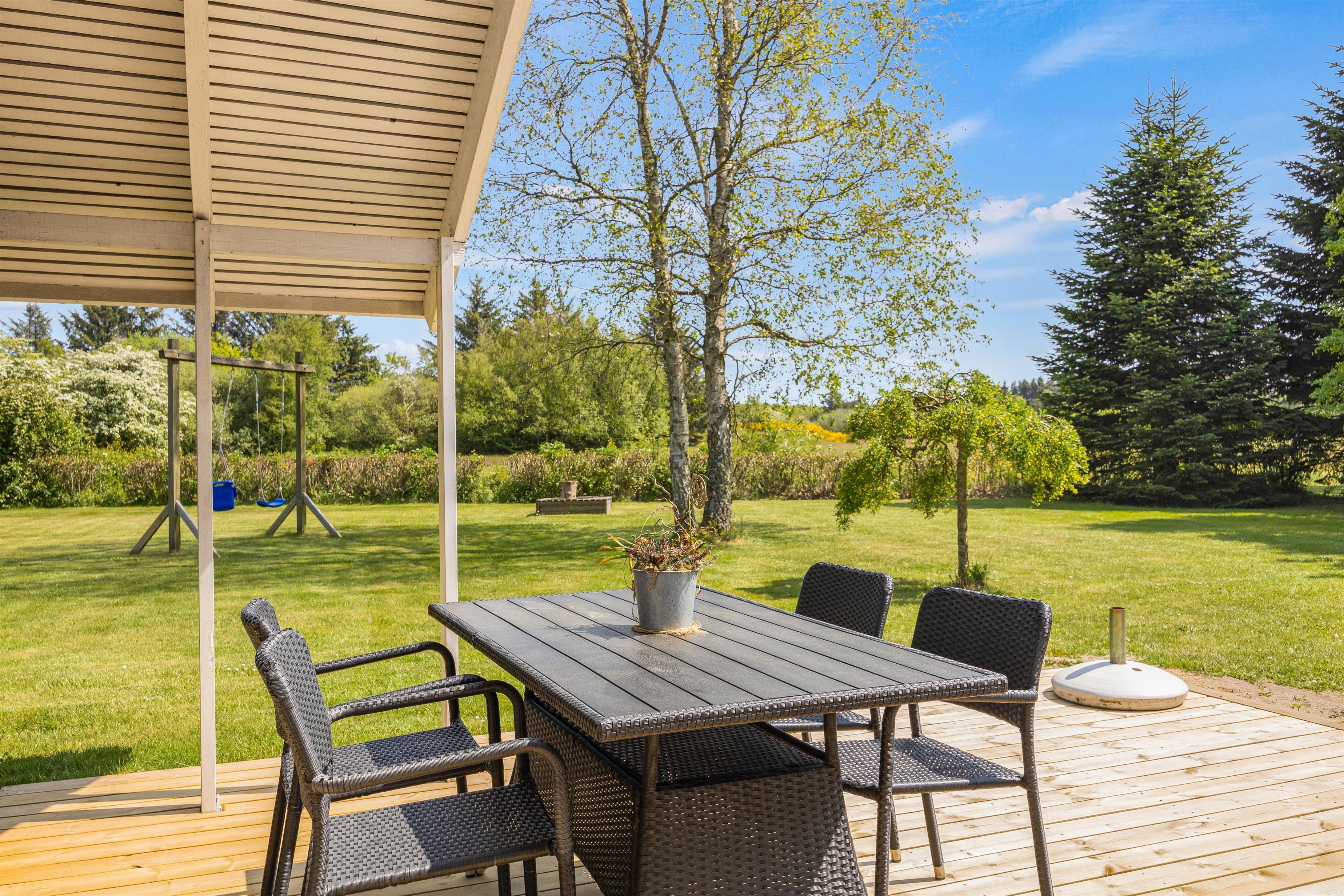 Mens børnene render rundt i haven og bruger deres energi på gyngerne eller i sandkassen, kan du slappe af på feriehusets skønne terrasse. Din hund vil helt sikkert også finde spændende spor, for her bor du midt i naturen, hvor vilde dyr kommer forbi fra tid til anden.