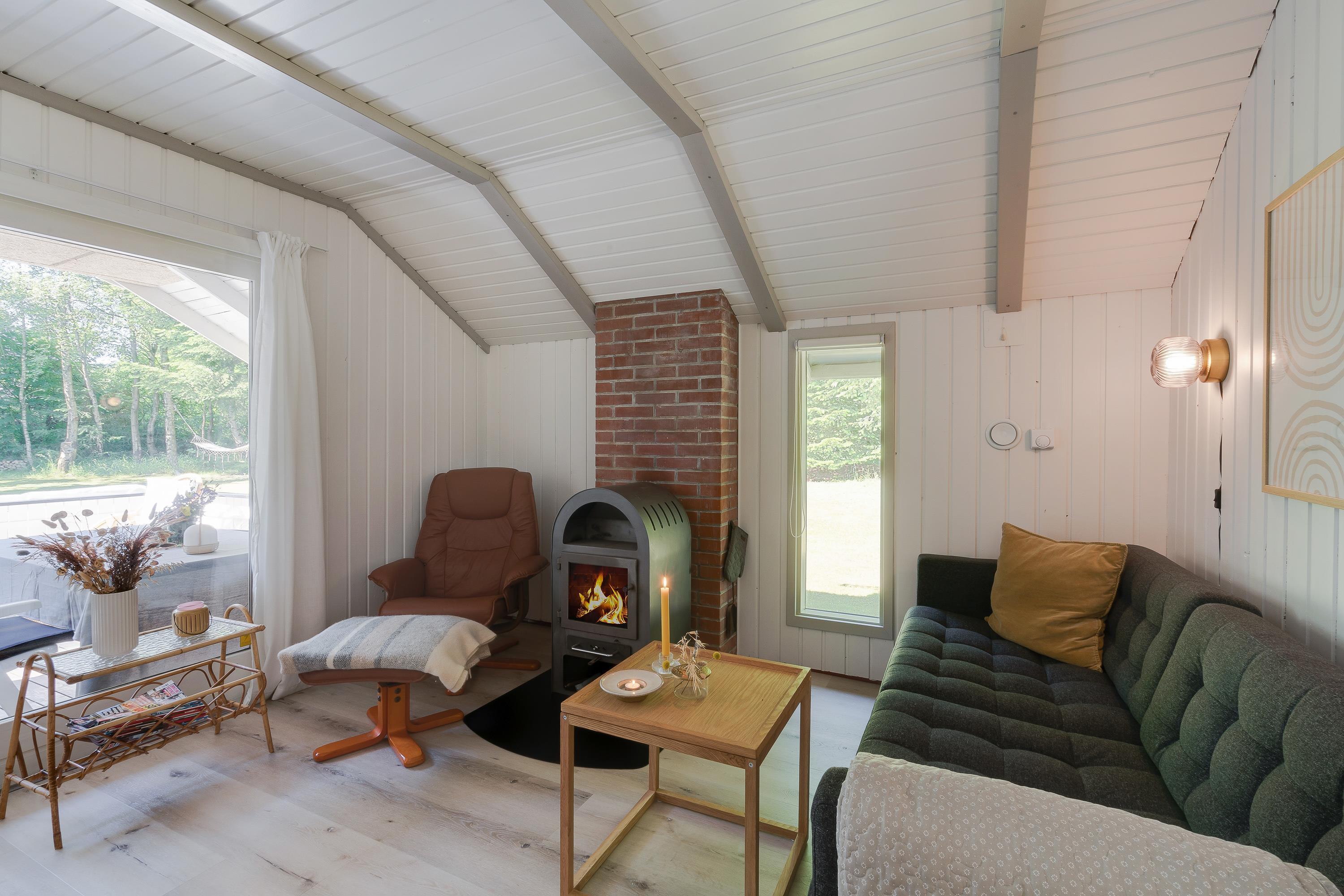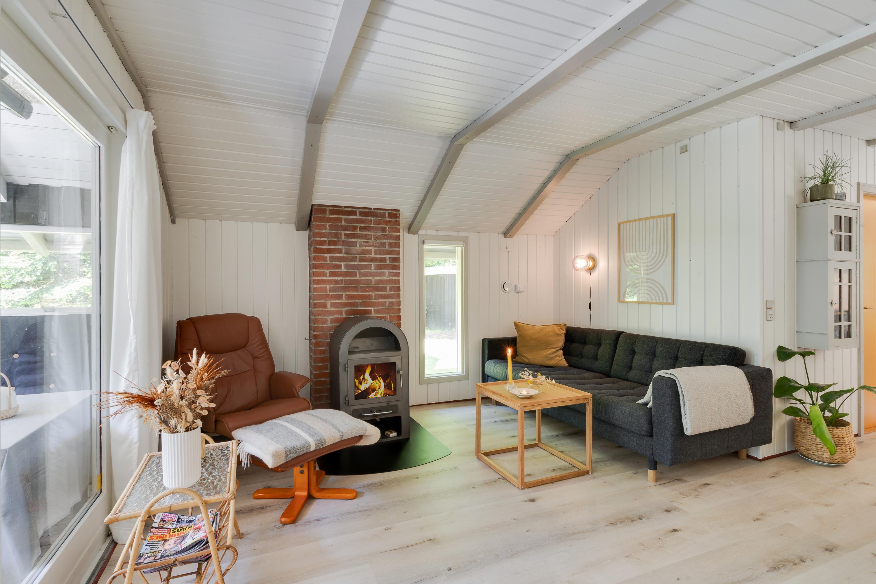 For dem, der nyder at slappe af med lidt skærmtid, er der 2 fladskærms-TV til rådighed, så I kan nyde film eller serier. Når hyggen breder sig over sommerhuset, tilføjer brændeovnen en særlig charme til stuen.