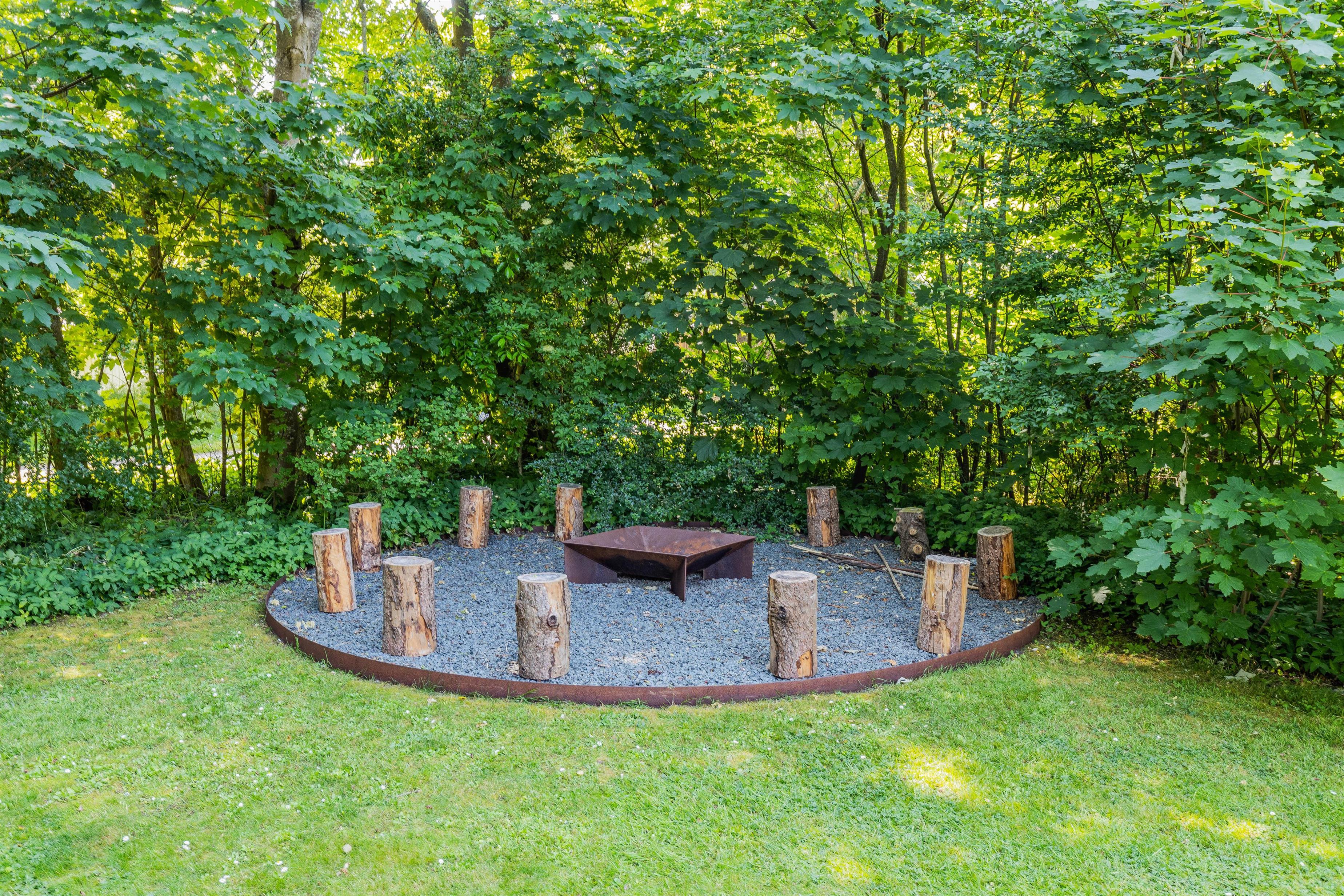 Det afskærmede og overdækkede terrasseområde er perfekt til at nyde måltider i det fri, uanset vejret. Her kan I samle jer omkring grillen og tilberede lækre retter, mens I nyder den fredelige atmosfære og fuglesang fra de omkringliggende træer. Terrassen fungerer som et perfekt sted til både frokost i solen og hyggelige aftener under de stjerneklare himmelstræk.
