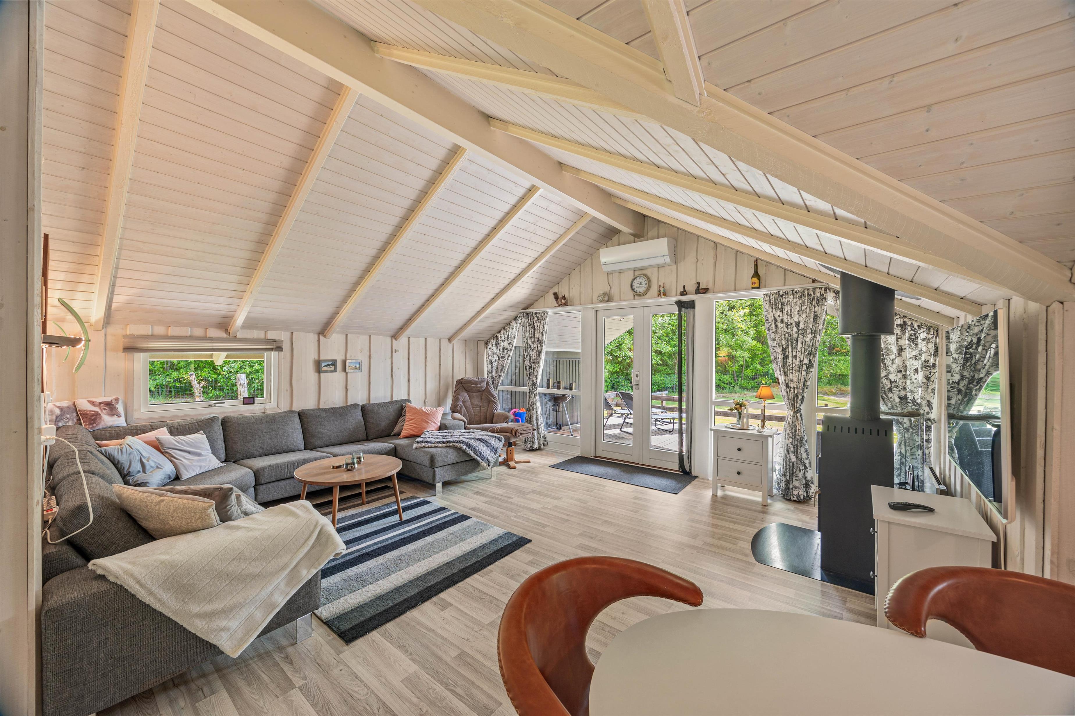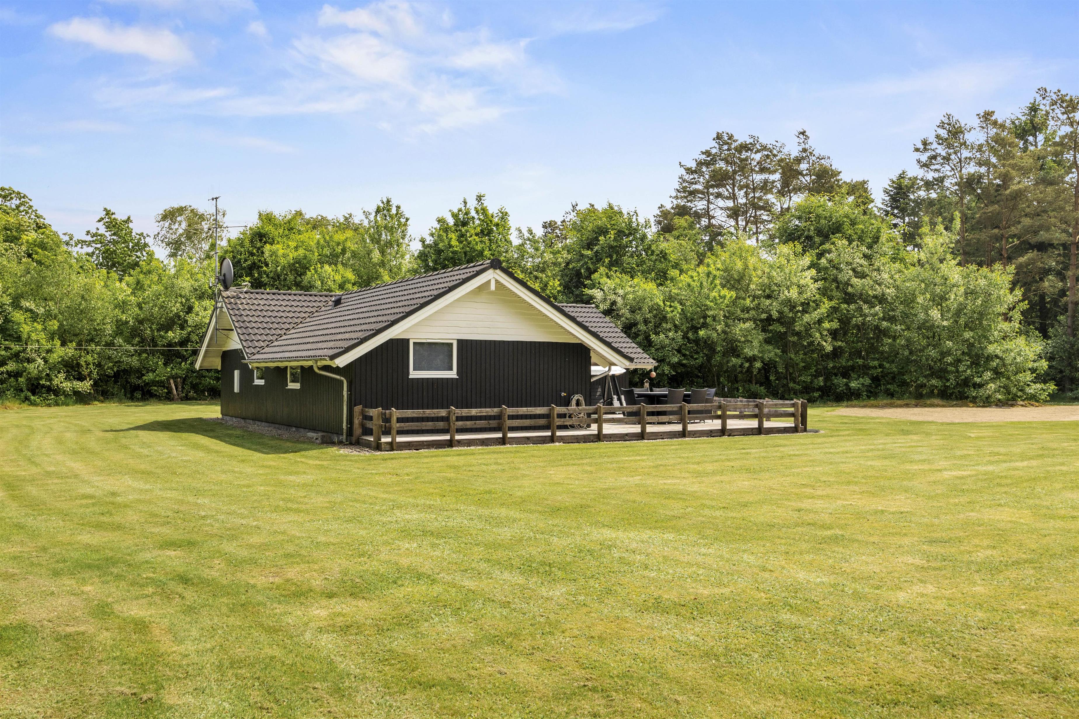 Når solen står højt på himlen, inviterer sommerhuset til udendørs liv og oplevelser i skønne omgivelser. Med både en overdækket og en afskærmet terrasse kan I nyde det danske sommervejr uanset vind og vejr. Terrasserne er udstyret med skønne havemøbler, så I kan slå jer ned med en god bog eller nyde en vidunderlig grillmiddag, som kan tilberedes på sommerhusets grillfaciliteter. Den rummelige plænegrund er perfekt for udendørs spil og aktiviteter for både børn og voksne, hvor I samtidig kan nyde synet af den smukke naturgrund, der omgiver sommerhuset.