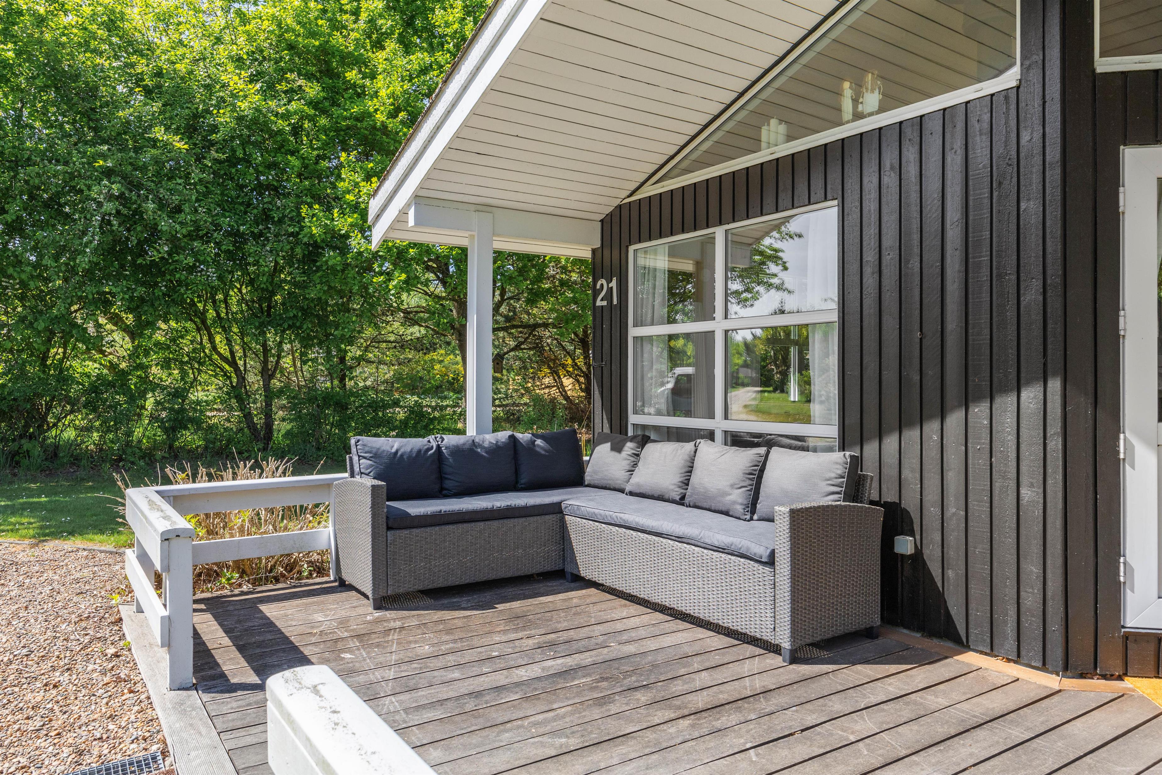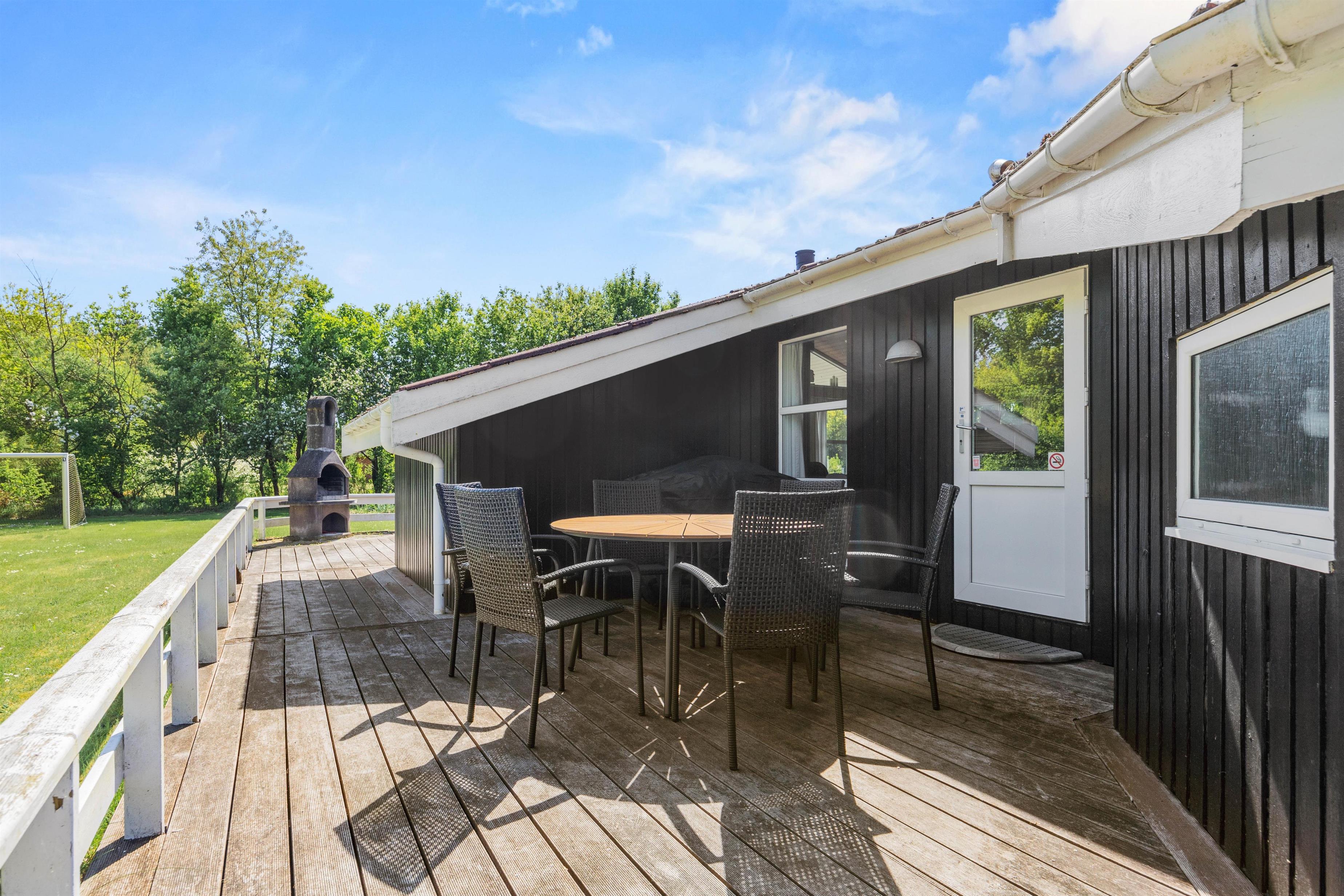 Fra sommerhuset kan I træde ud på den skønne terrasse, som er det oplagte sted at tilbringe de solrige feriedage. På terrassen kan I finde jer en god plads i solens stråler, hvor I kan sætte jer til rette i havemøblerne med en god bog eller en forfriskende drink i hånden. Om aftenen kan I tænde op i grillen og nyde en lækker middag under åben himmel, mens dagens oplevelser deles og latteren fylder luften. Terrassen bliver hurtigt et samlingspunkt, hvor både store og små kan finde sig til rette og nyde det gode vejr.