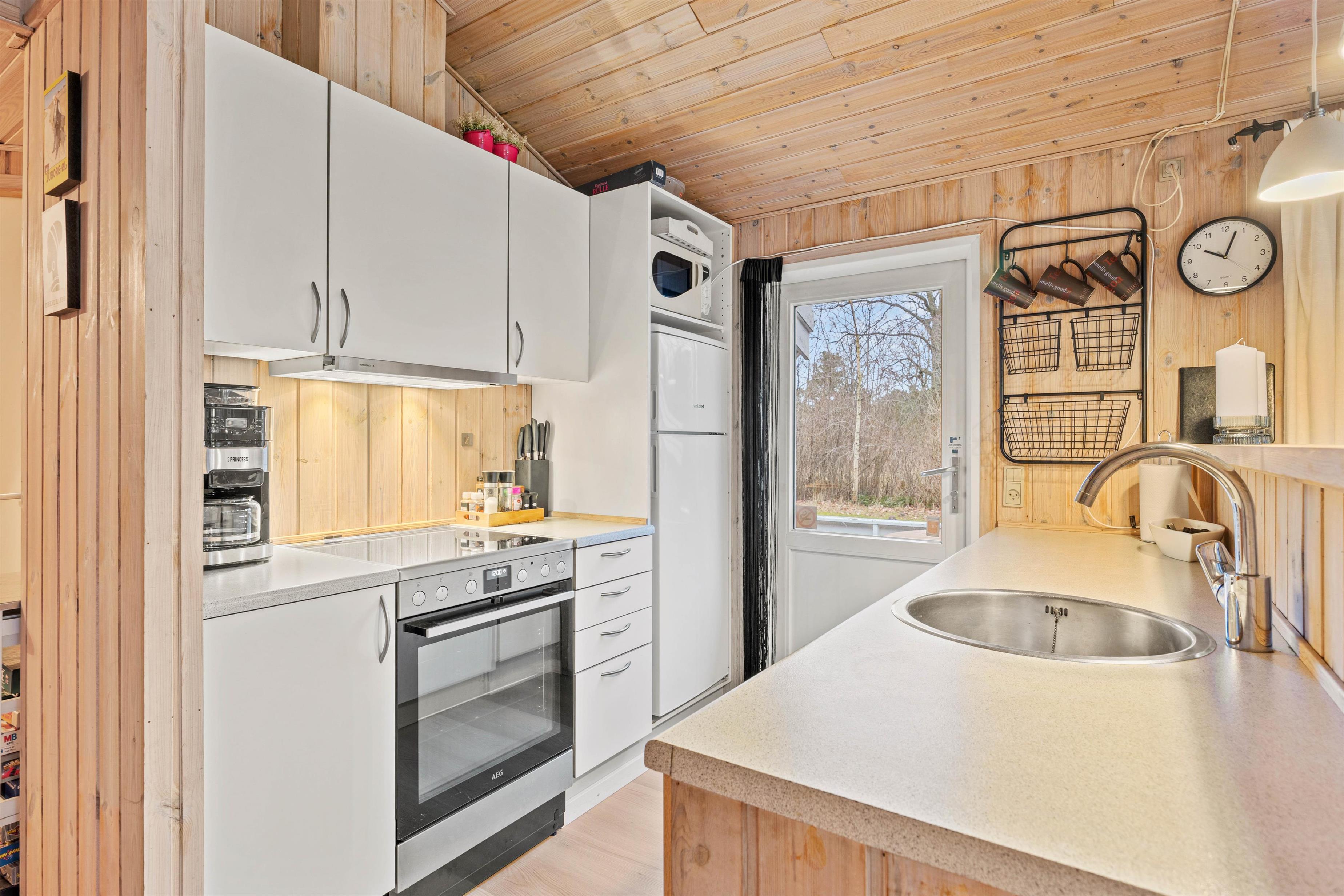 I sommerhusets opholdsrum kan I samles til hyggelige feriestunder for hele familien. Her kan I blandt andet være sammen om madlavningen eller se en god film i tv’et - I kan streame jeres yndlingsfilm takket være Chromecasten. I opholdsrummet sørger brændeovnen for at sætte prikken over i’et for den hyggelige feriestemning.