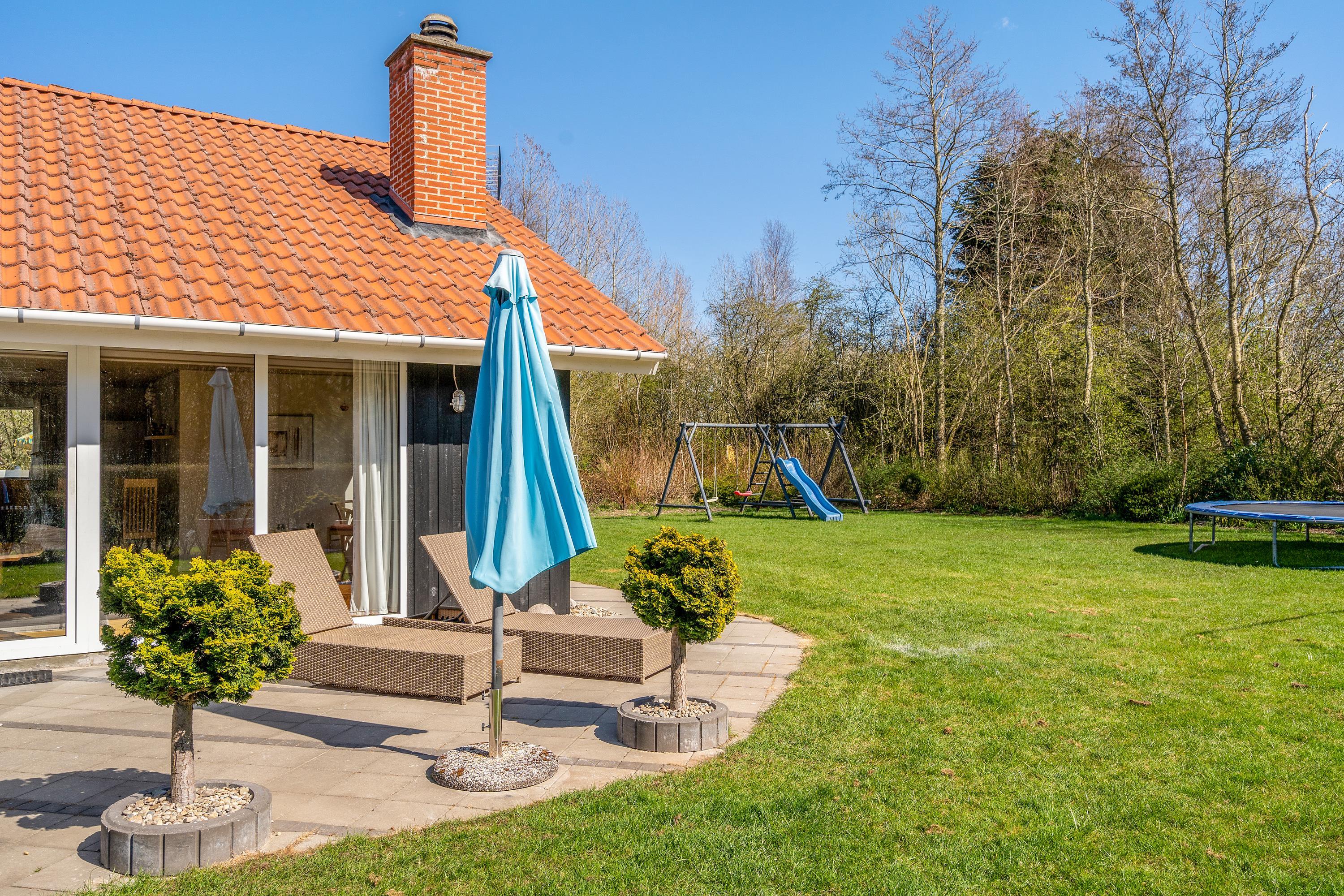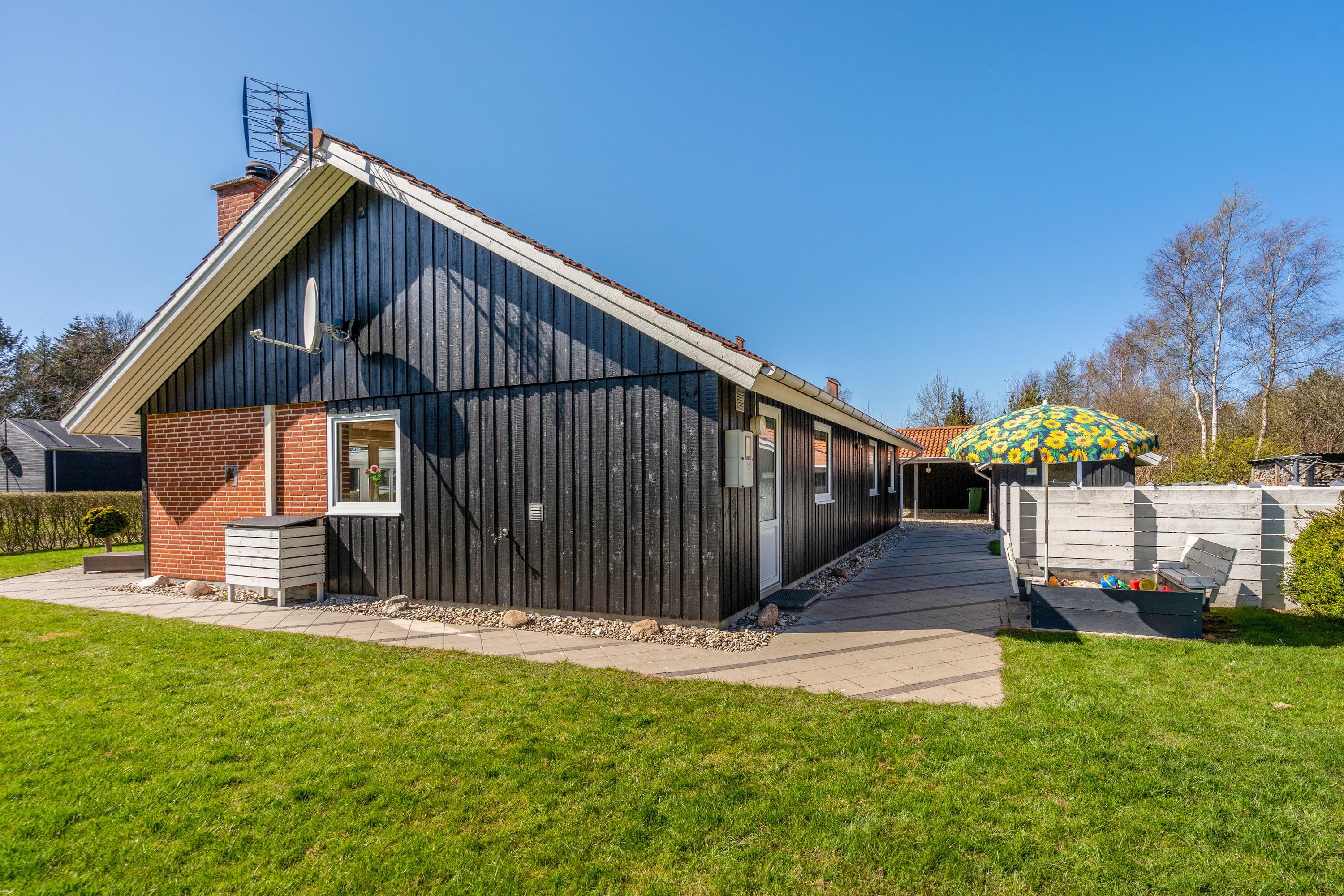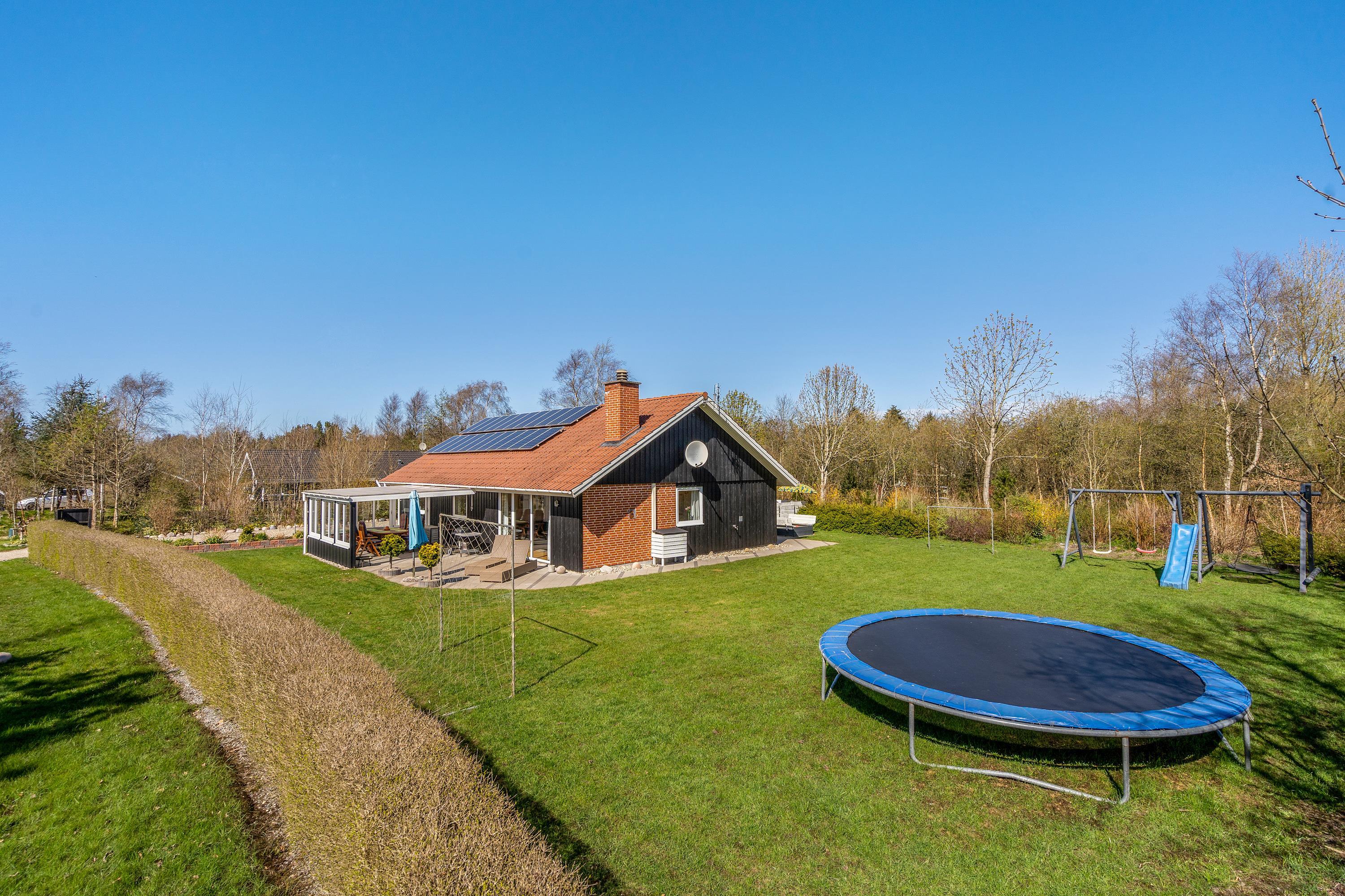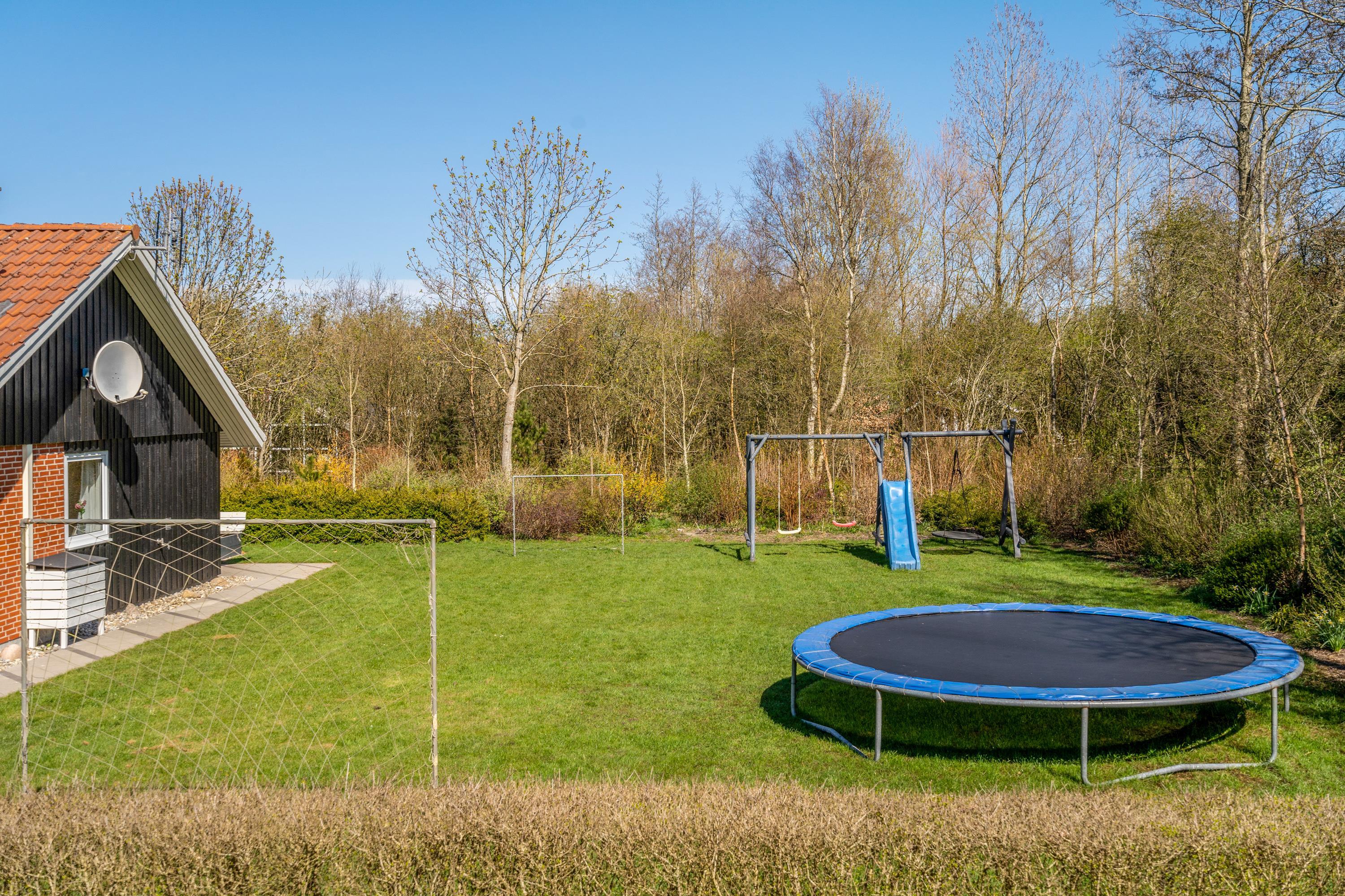 Blomstervangen 149 ligger ved udkanten af Jegum – tæt ved marker og enge. Ikke blot sommerhusets have, hvor der er både trampolin, legestativ med sansegynge, rutsjebane, gynger samt en sandkasse er ideel til børnefamilien. Hele området Jegum er familievenligt med legeplads og stier.
