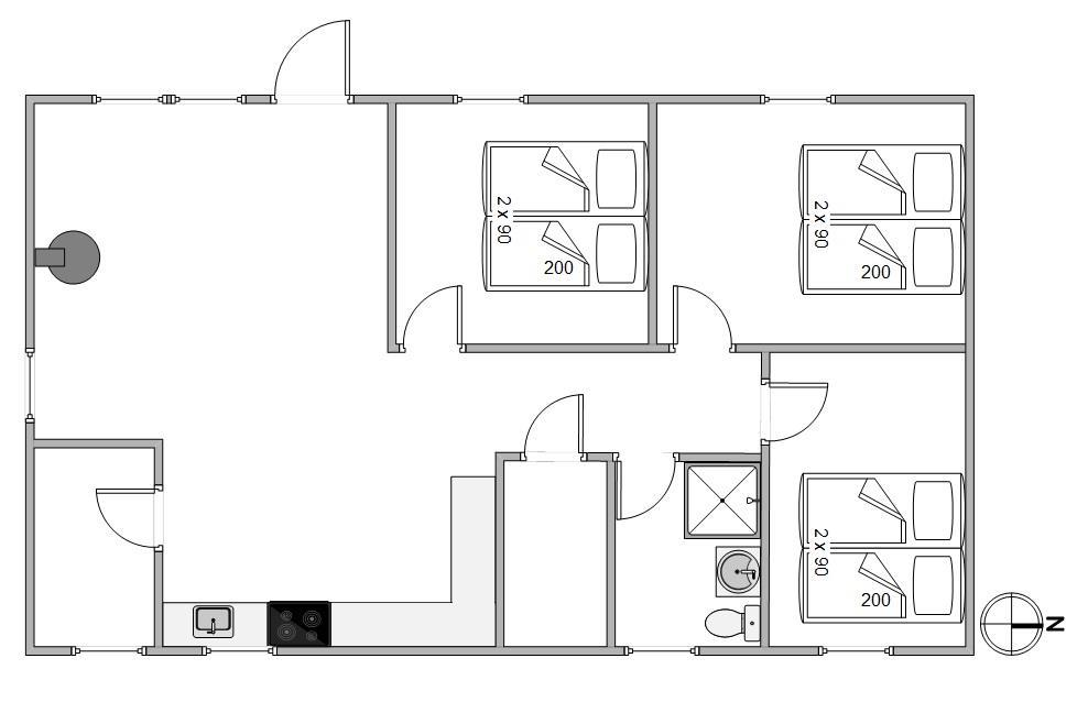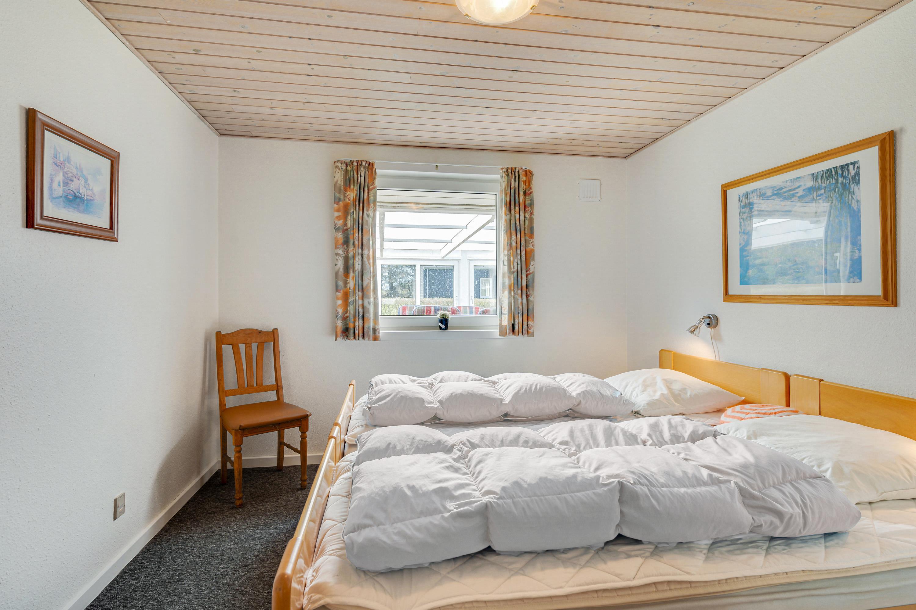 Renoveringer i 2023 har bragt friske farver til væggene og nyt liv til gulvene i både stue og køkken. Sommerhuset har tre soveværelser, hver indrettet med en dobbeltseng, samt et badeværelse med behagelig gulvvarme for ekstra komfort. Der er desuden et lille rum til diverse opbevaring.