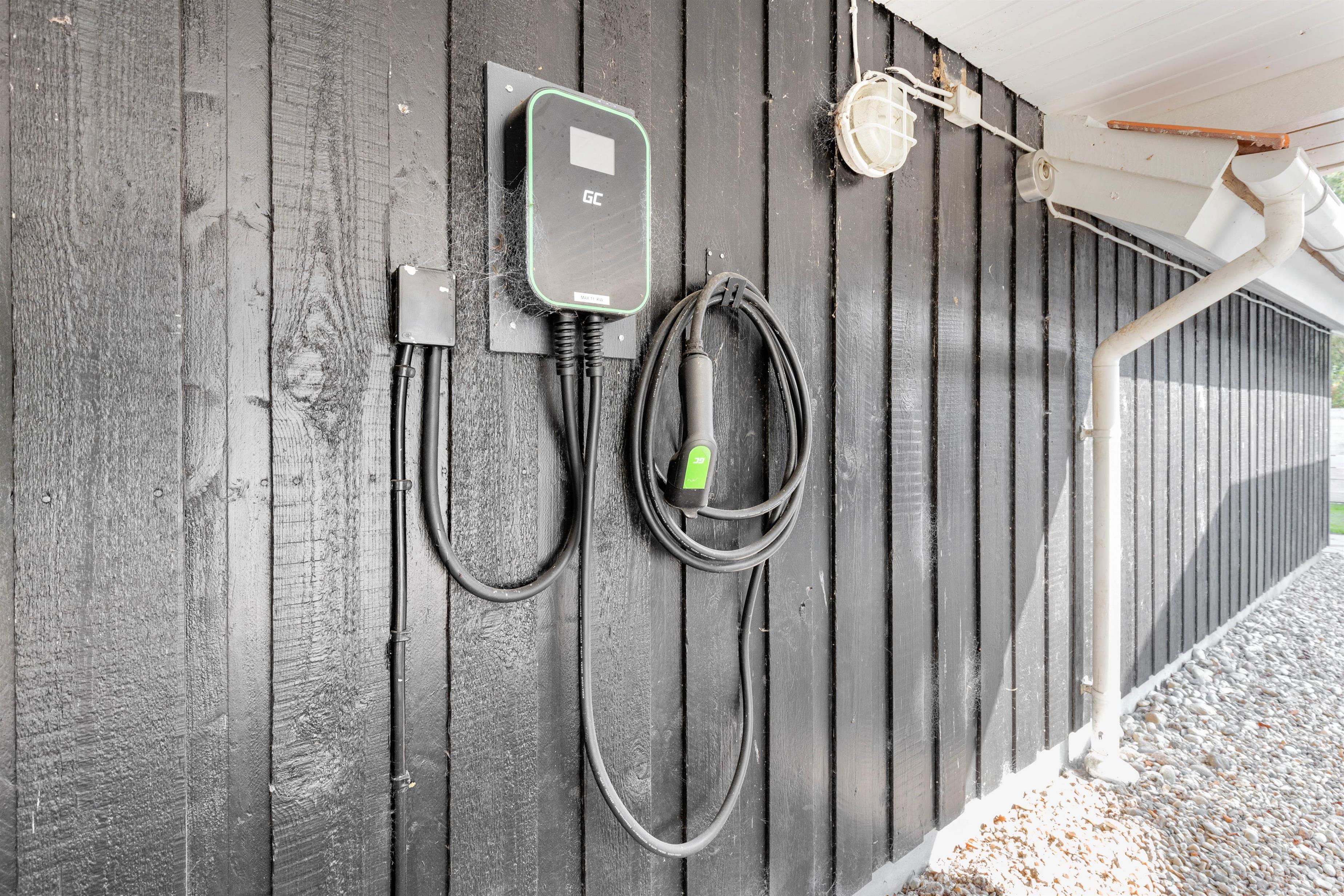 Et ekstra plus er også, at sommerhuset har en ladestander, så I kan oplade jeres elbil direkte på adressen.