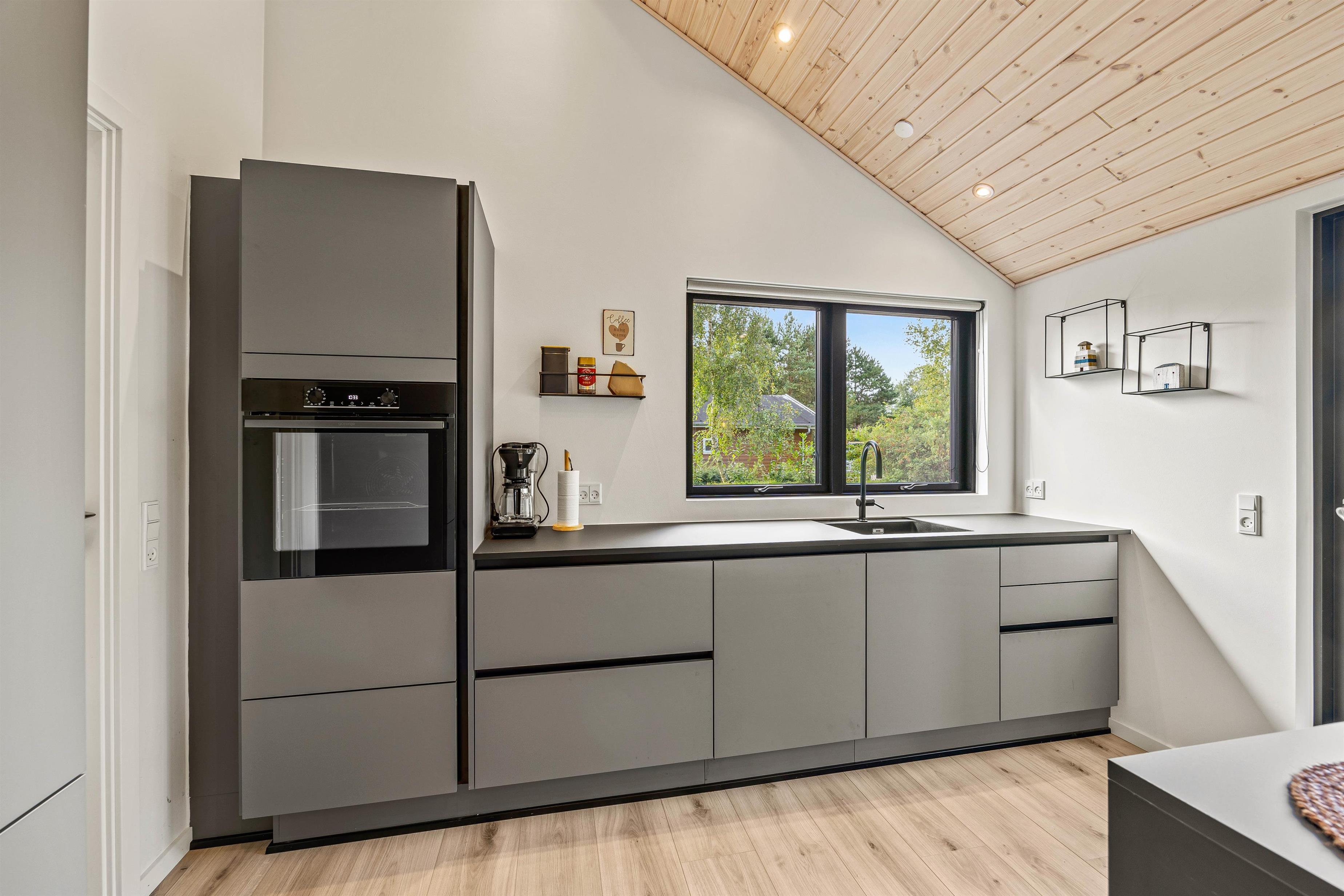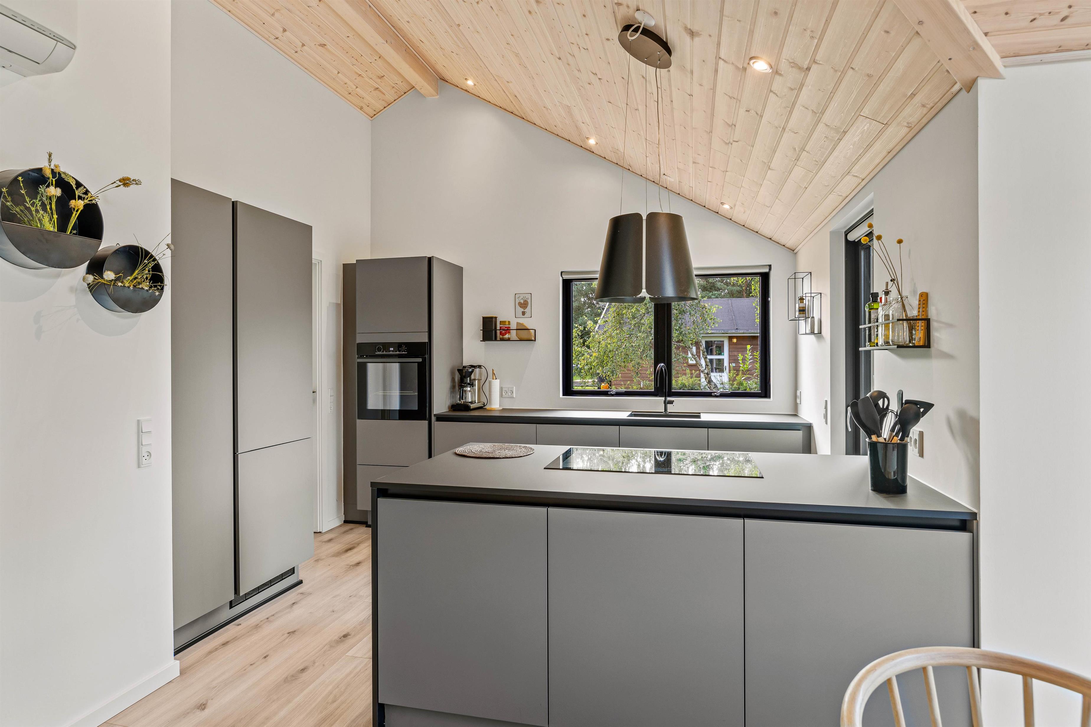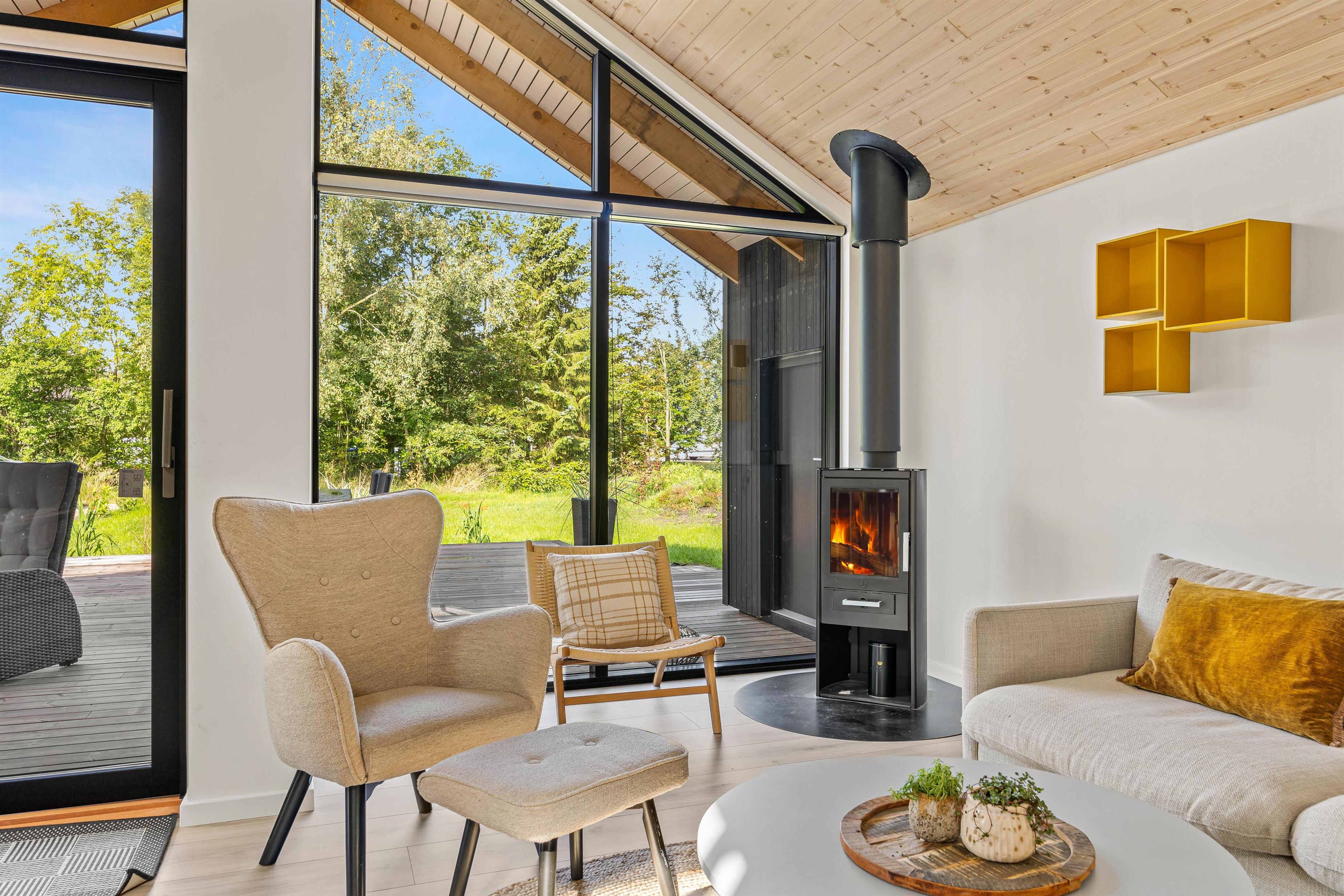 I dette sommerhus kan op mod 6 feriegæster og deres hund få en uforglemmelig ferie i skønne omgivelser – uanset årstiden. De enkle farvenuancer, mange store vinduespartier og komfortable møbler skaber en dejlig atmosfære med plads til samvær. I det store køkkenalrum kan I både være sammen hver for sig eller være fælles om mange hyggelig ting. Forbered råvarerne til et lækkert grill-måltid, spil brætspil sammen omkring spisebordet eller slå jer ned i sofaen med jeres yndlingsserie.