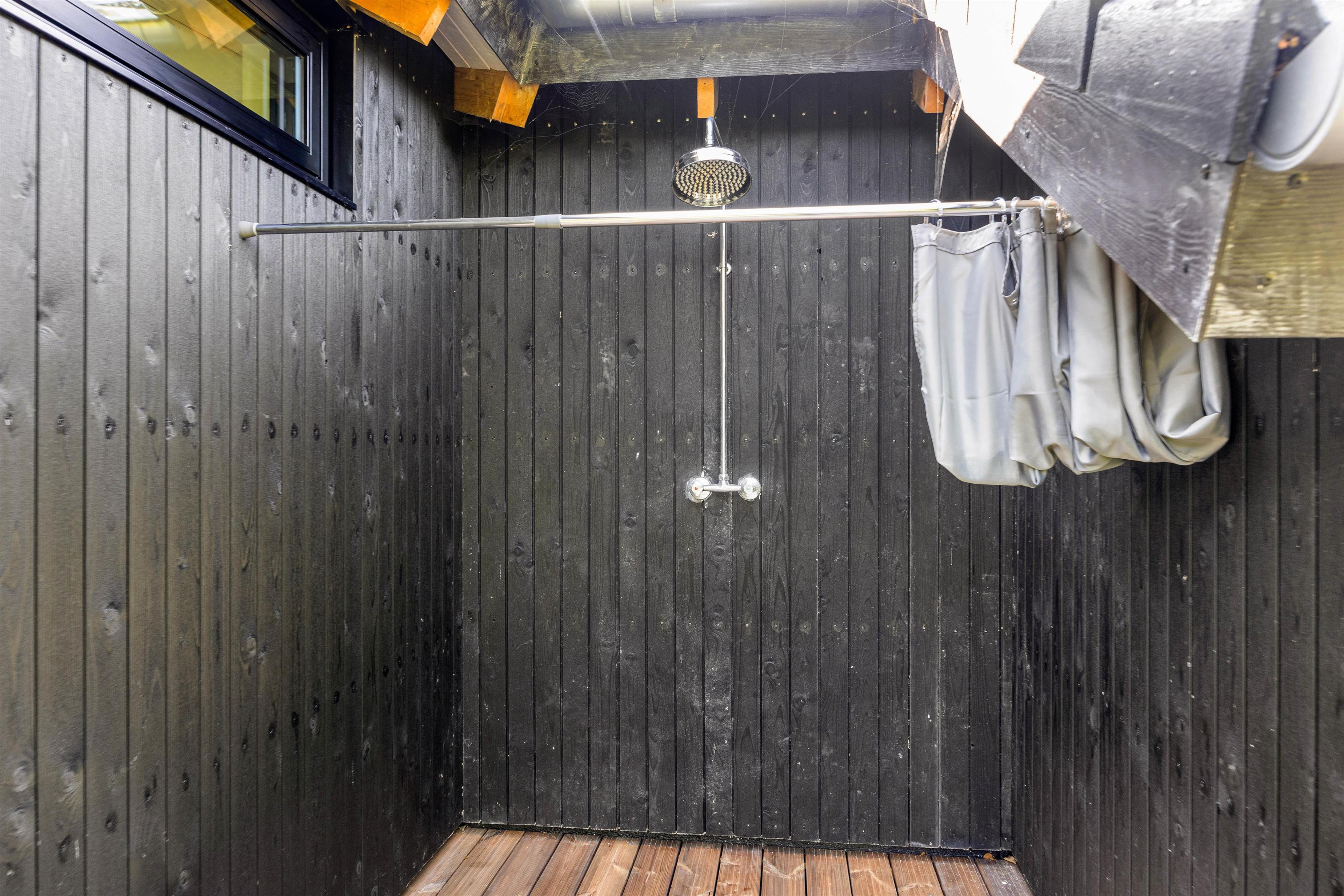 Udenfor finder I også en udendørsbruser, som er særligt praktisk, hvis man efter en lang dag kommer hjem med beskidte fødder eller bare vil tage en skyller i den friske natur.