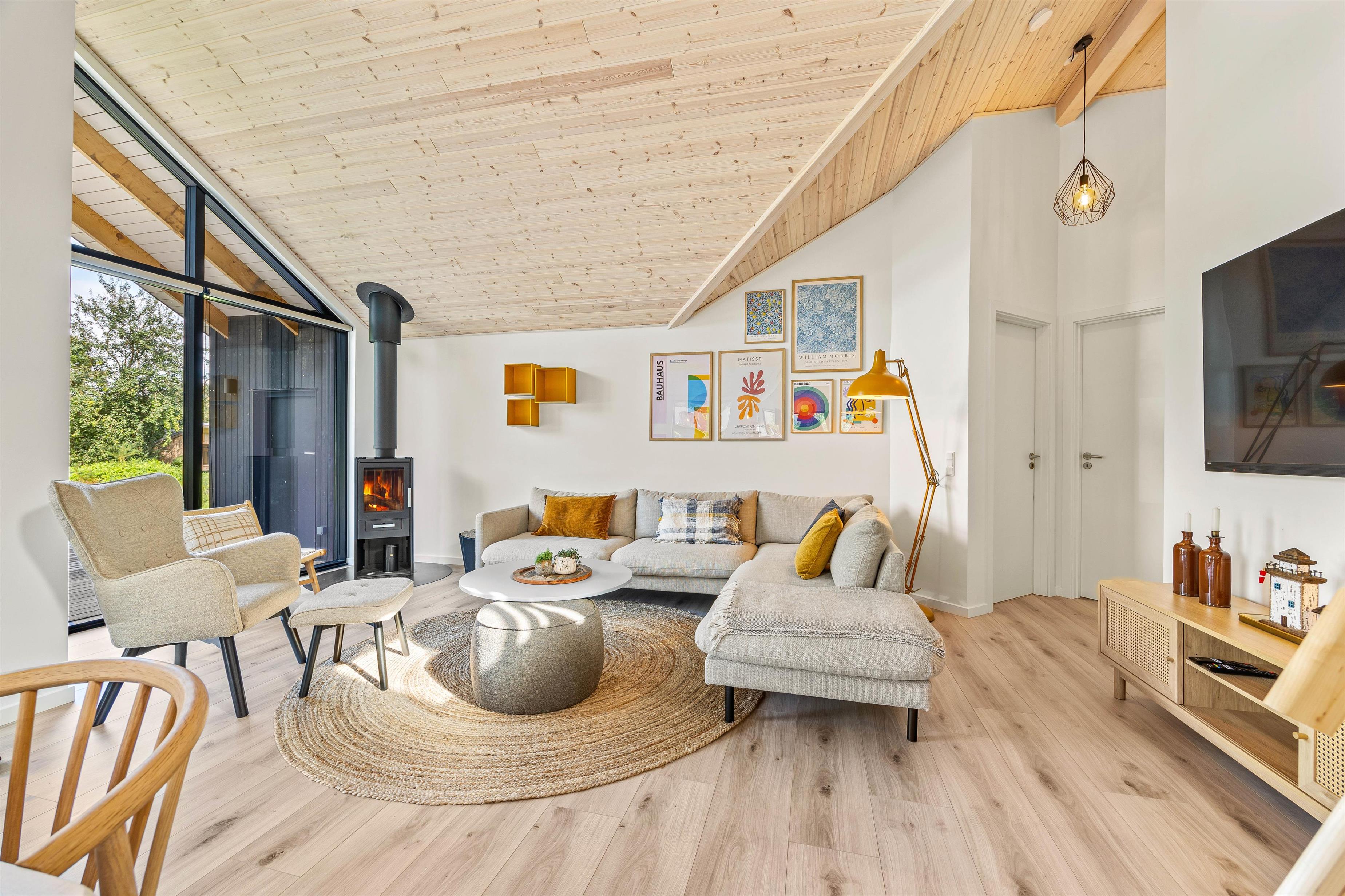 Alt imens at brændeovnens varme og hygge spreder sig i rummet. Fra alrummet kan I komme op til hemsen, hvor de store børn helt sikkert vil elske at sove i deres egen lille hule med to sovepladser.