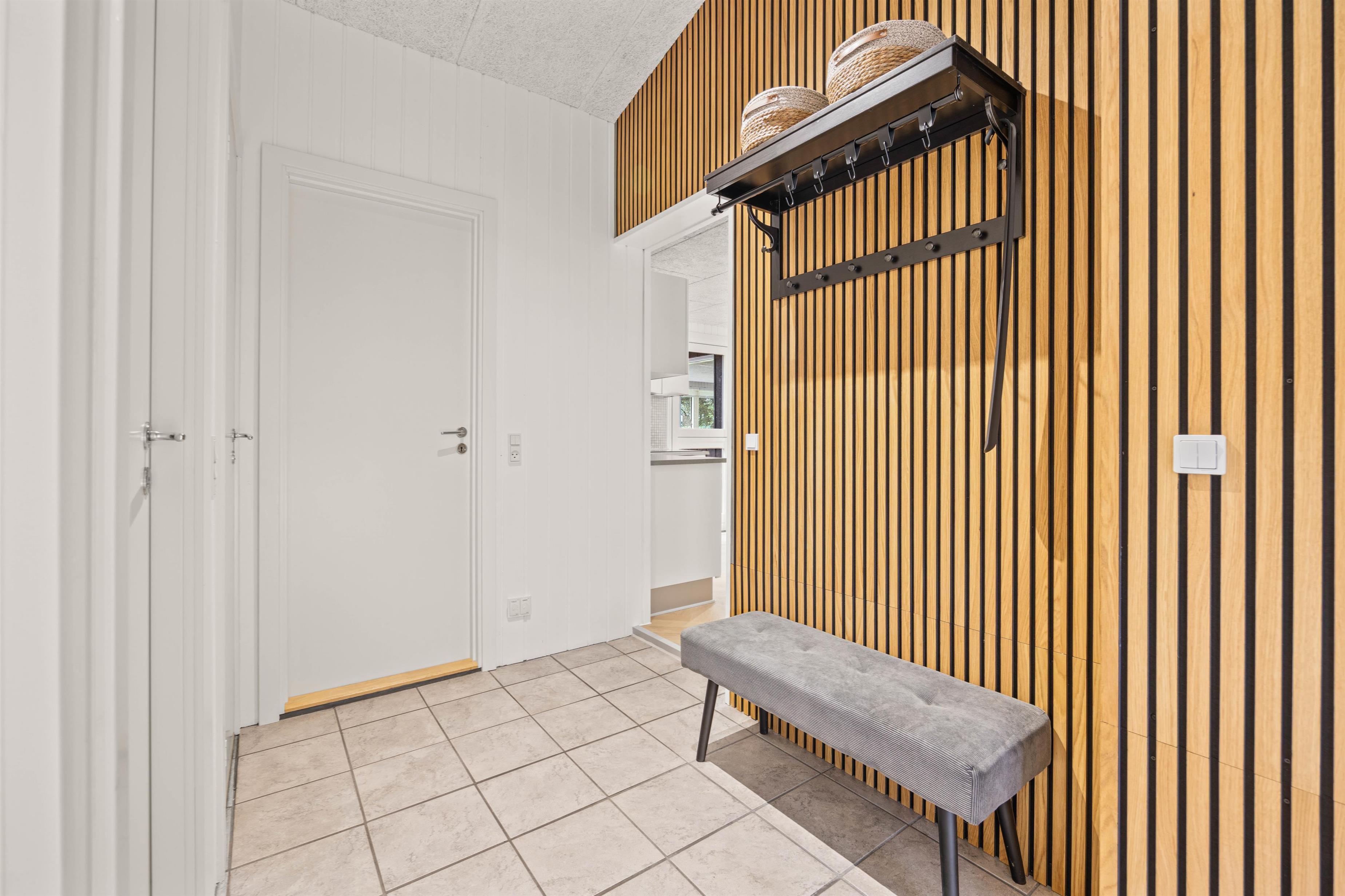 Når I træder indenfor, bliver I mødt af et veludstyret og komfortabelt miljø, der er skabt til at gøre opholdet så behageligt som muligt. Inde i sommerhuset finder I vaskemaskinen, så frisk tøj og håndklæder altid er lige ved hånden. Fortsætter I videre, åbner køkkenet sig op – her er det en fornøjelse at lave mad, og opvaskemaskinen sørger for, at oprydningen går hurtigt og ubesværet.