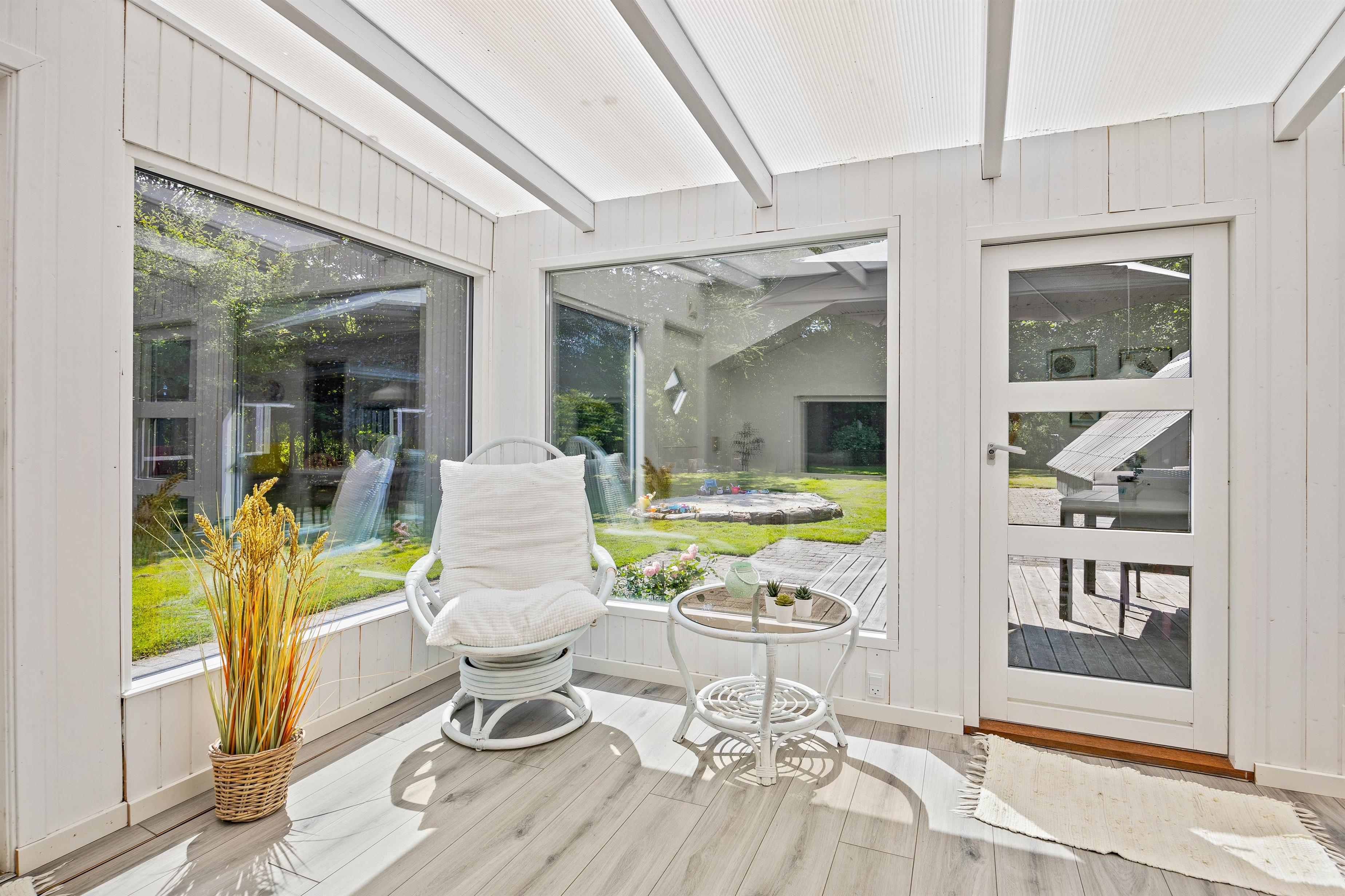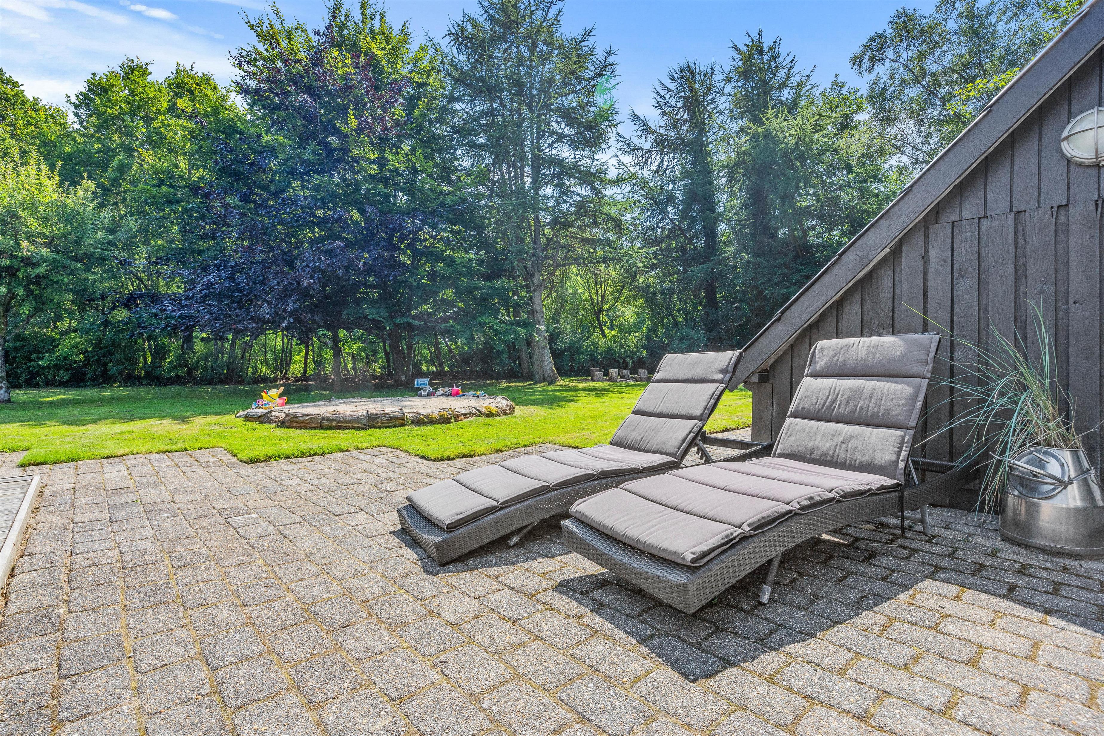 Udendørs byder sommerhuset på en dejlig, åben terrasse, som er delvist afskærmet og lukket, hvilket giver masser af privatliv og sikkerhed, især hvis I har små børn eller en hund med. Terrassen er perfekt til afslapning, med komfortable havemøbler og solsenge, hvor I kan nyde solen og den friske luft.