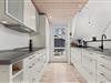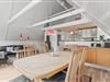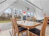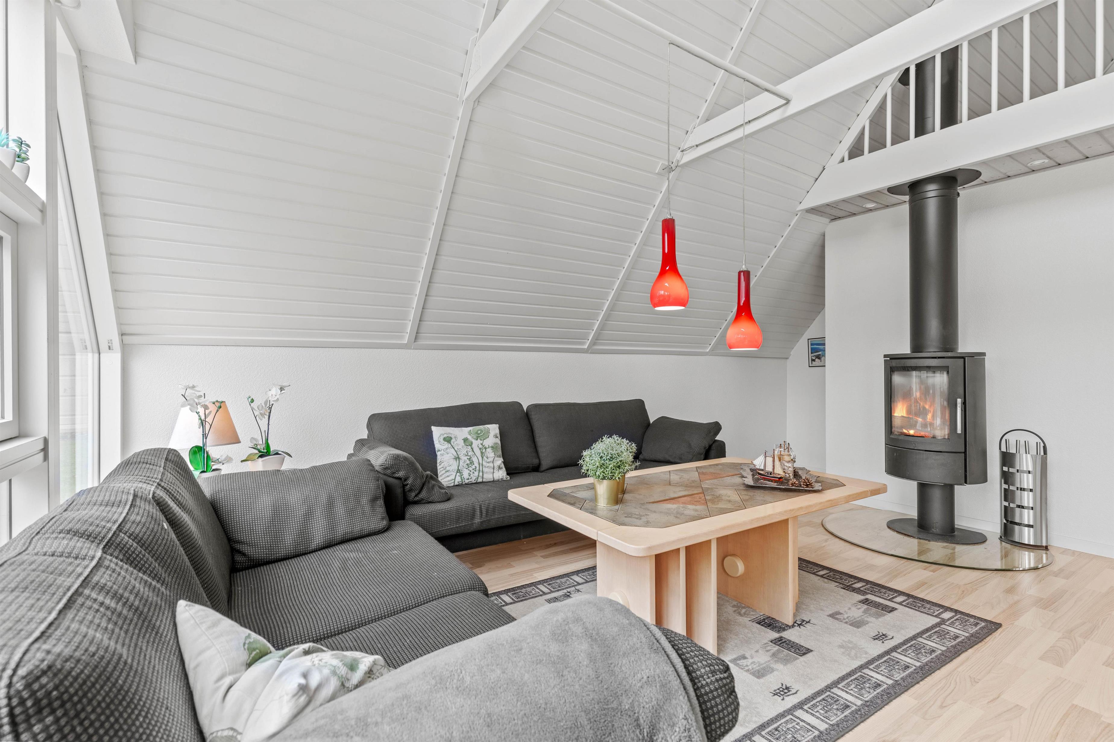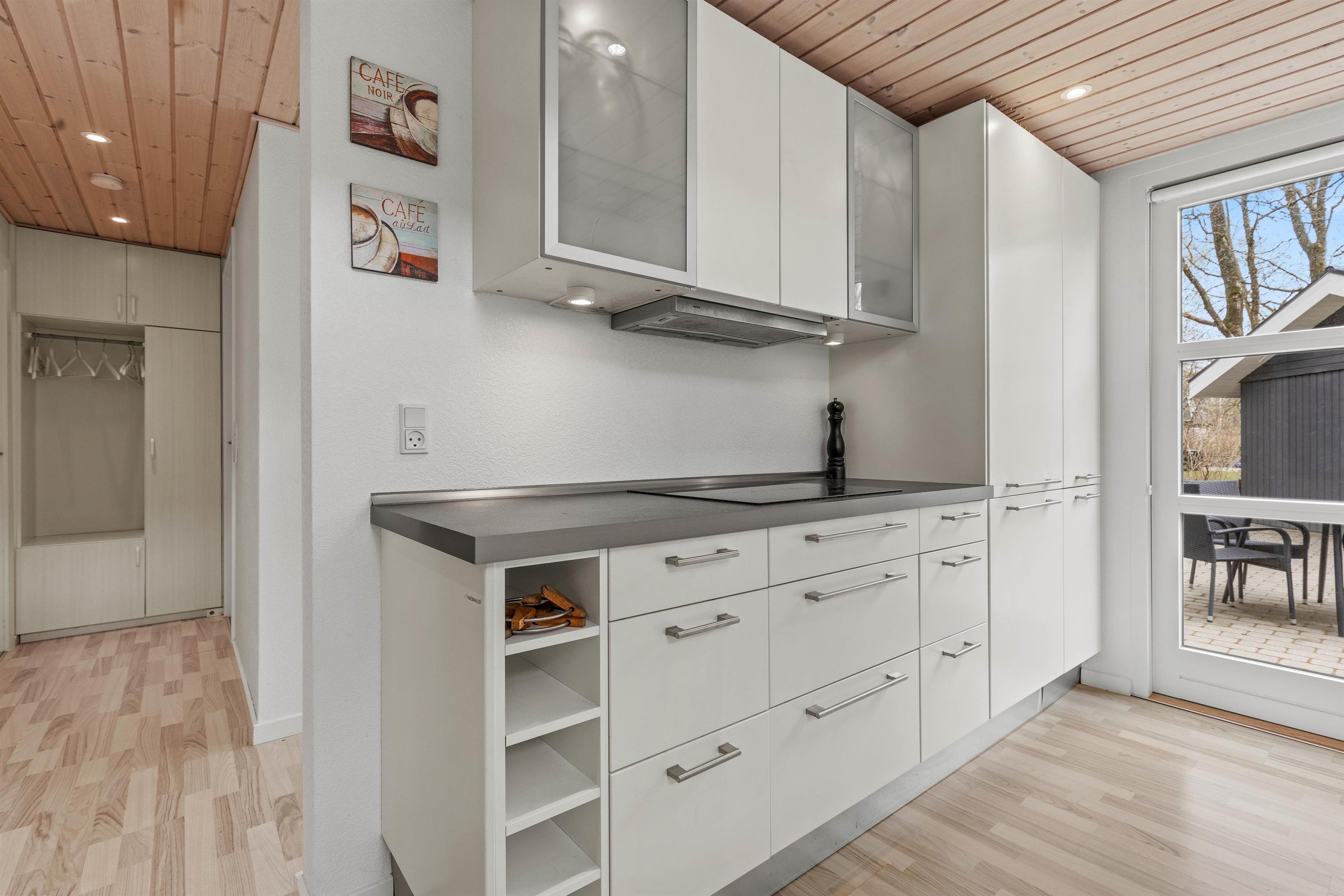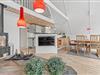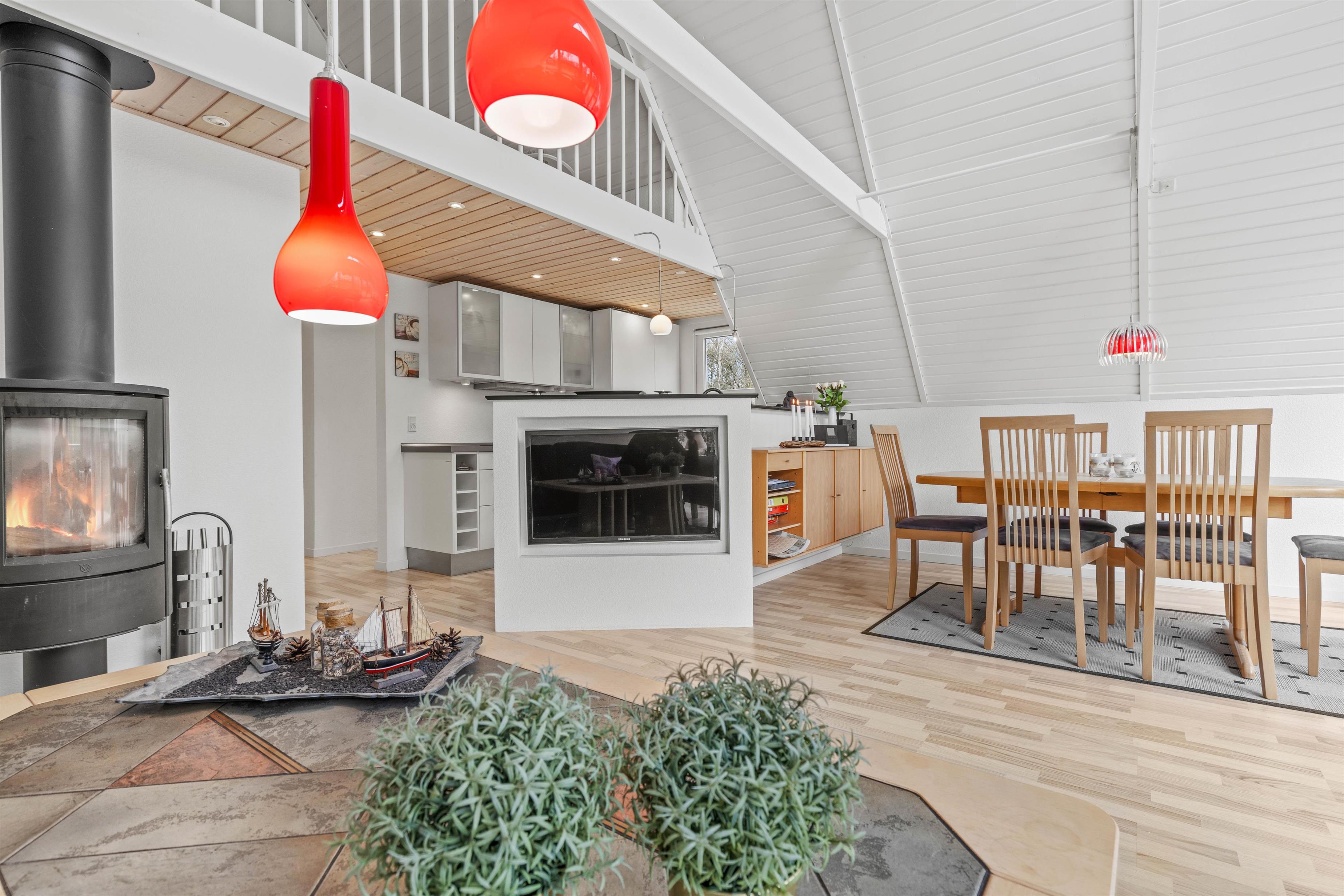 Indenfor byder sommerhuset på et stilfuldt samtalekøkken, der åbner sig op mod spisestue og opholdsstue, hvilket skaber en hyggelig og social atmosfære for alle gæster. I opholdsstuen vil I finde en hyggelig brændeovn, som bliver et naturligt samlingspunkt, hvor man kan nyde varmen og en afslappende aften efter en dag fyldt med oplevelser.