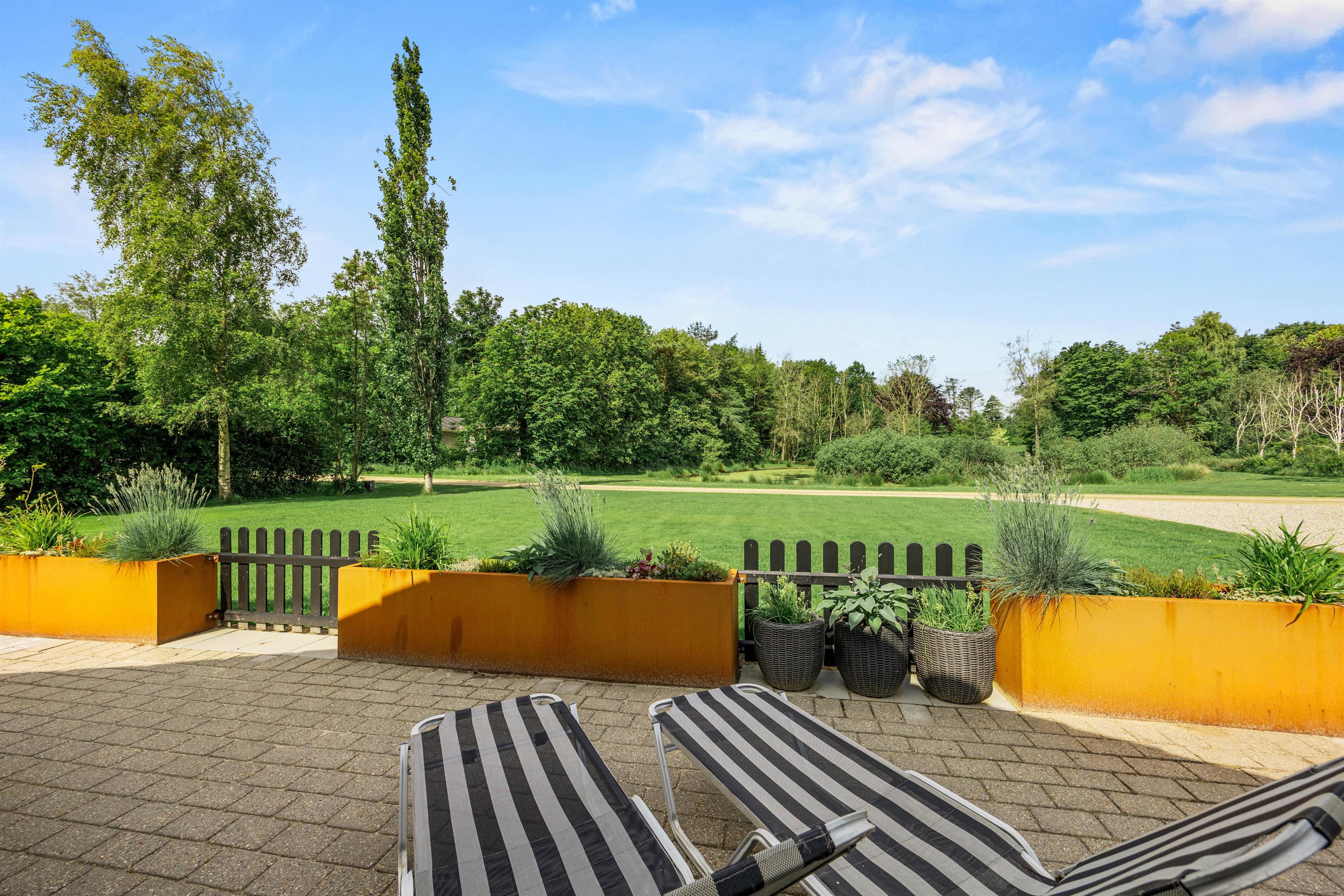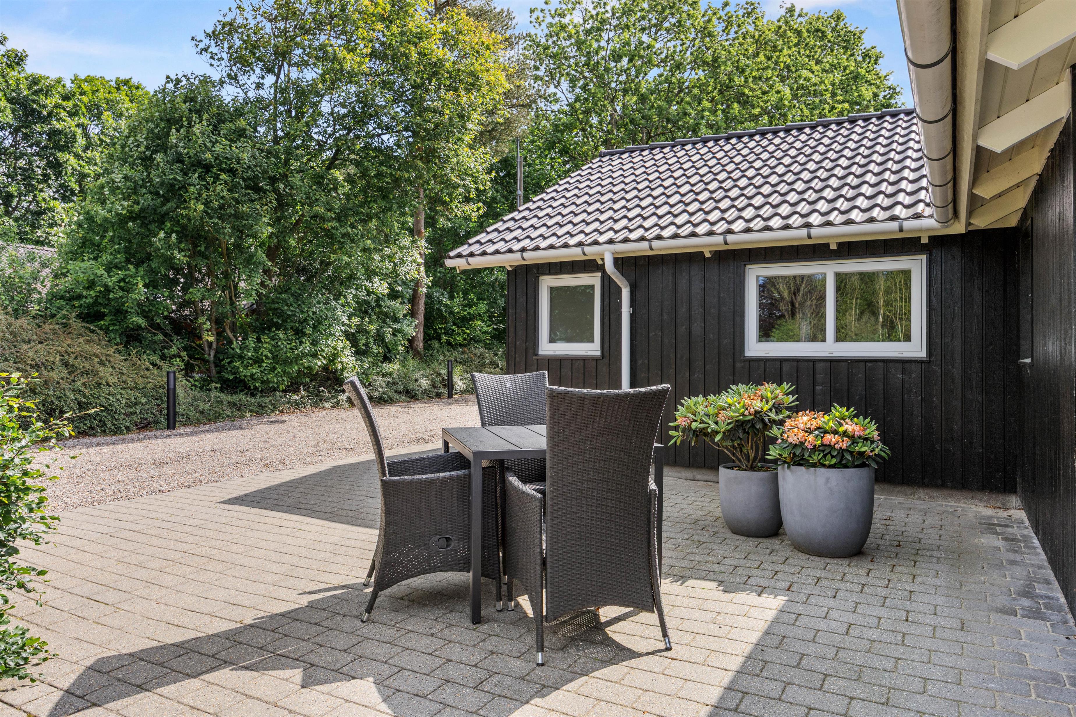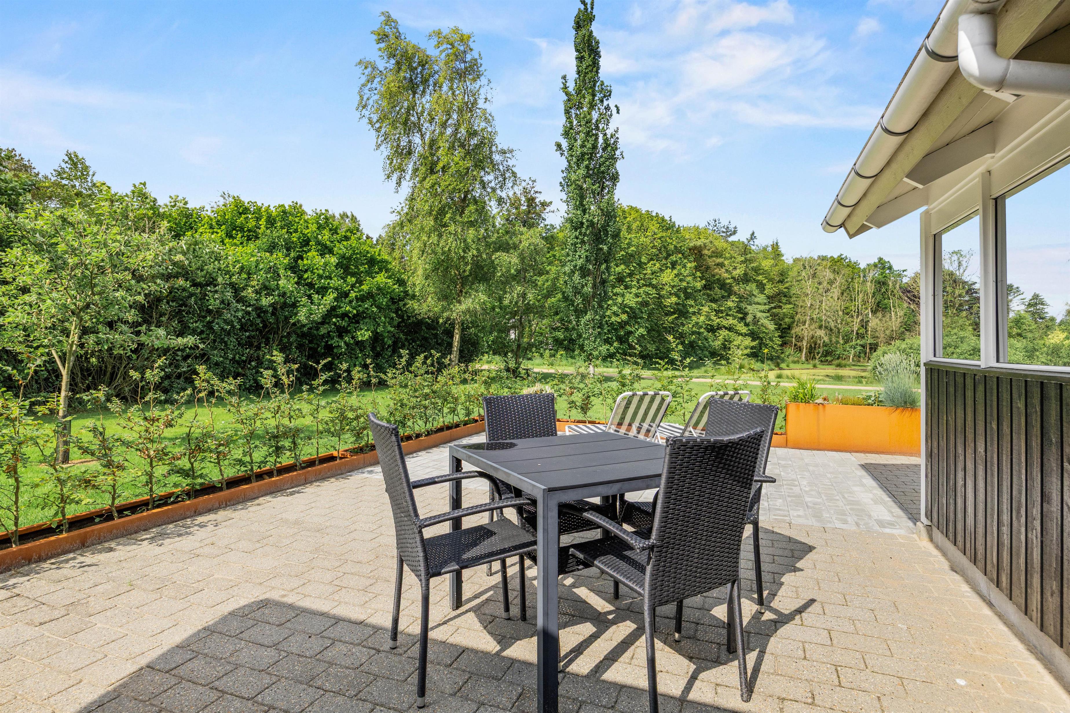 Fra stuen kan I træde ud på den delvist overdækkede terrasse, hvor morgenens første solstråler kan nydes med en lækker brunch. Om aftenen kan I tænde op i grillen og nyde et BBQ-måltid under åben himmel. Når solen står højt på himlen, indbyder solvognene til afslapning, mens parasollen tilbyder en behagelig skyggeplads til dem, der foretrækker at læse en god bog.