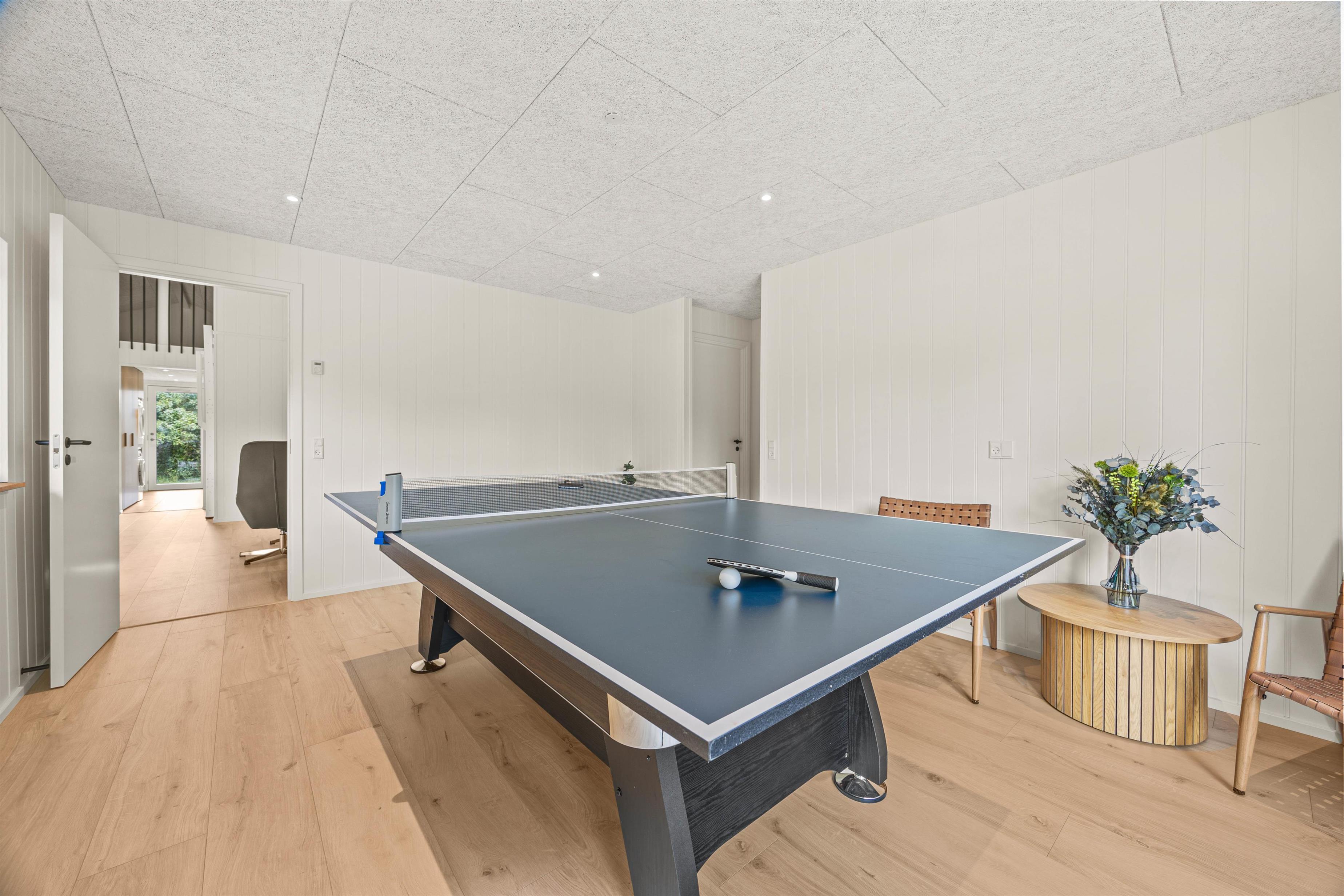 Tag skridtet ind i dette charmerende sommerhus, hvor komfort og aktivitet går hånd i hånd. Det hyggelige køkken er udstyret med en praktisk opvaskemaskine, hvilket gør det nemt at afslutte måltider og nyde mere tid i det åbne opholdsområde. Her flyder samtalerne frit, og den åbne stue er et naturligt samlingspunkt for hygge og samvær. I aktivitetsrummet er mulighederne mange; både poolbillard og bordtennis venter på at udfordre og underholde jer. Dette rum er ideelt til venskabelige konkurrencer, hvor latter og spænding fylder luften.