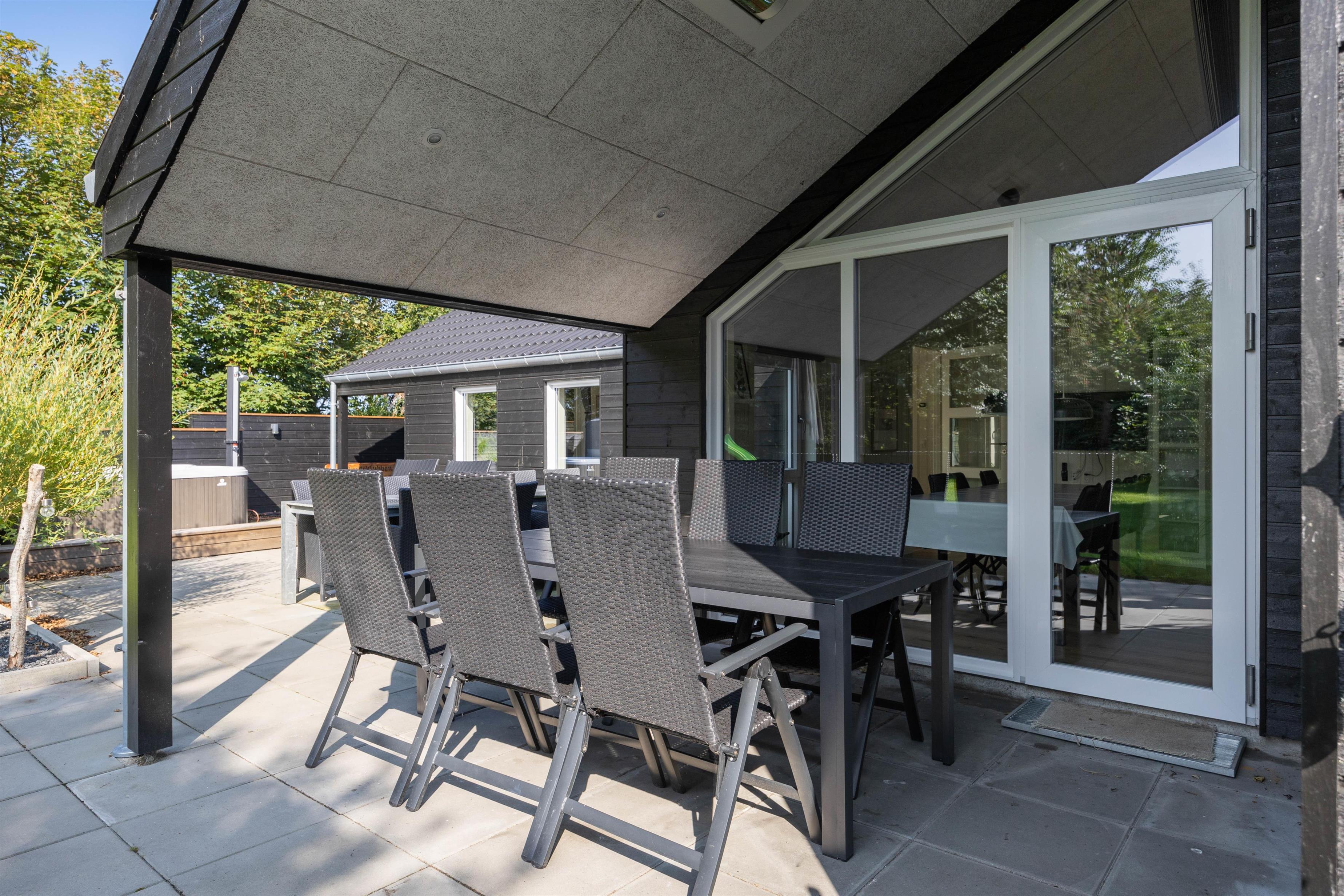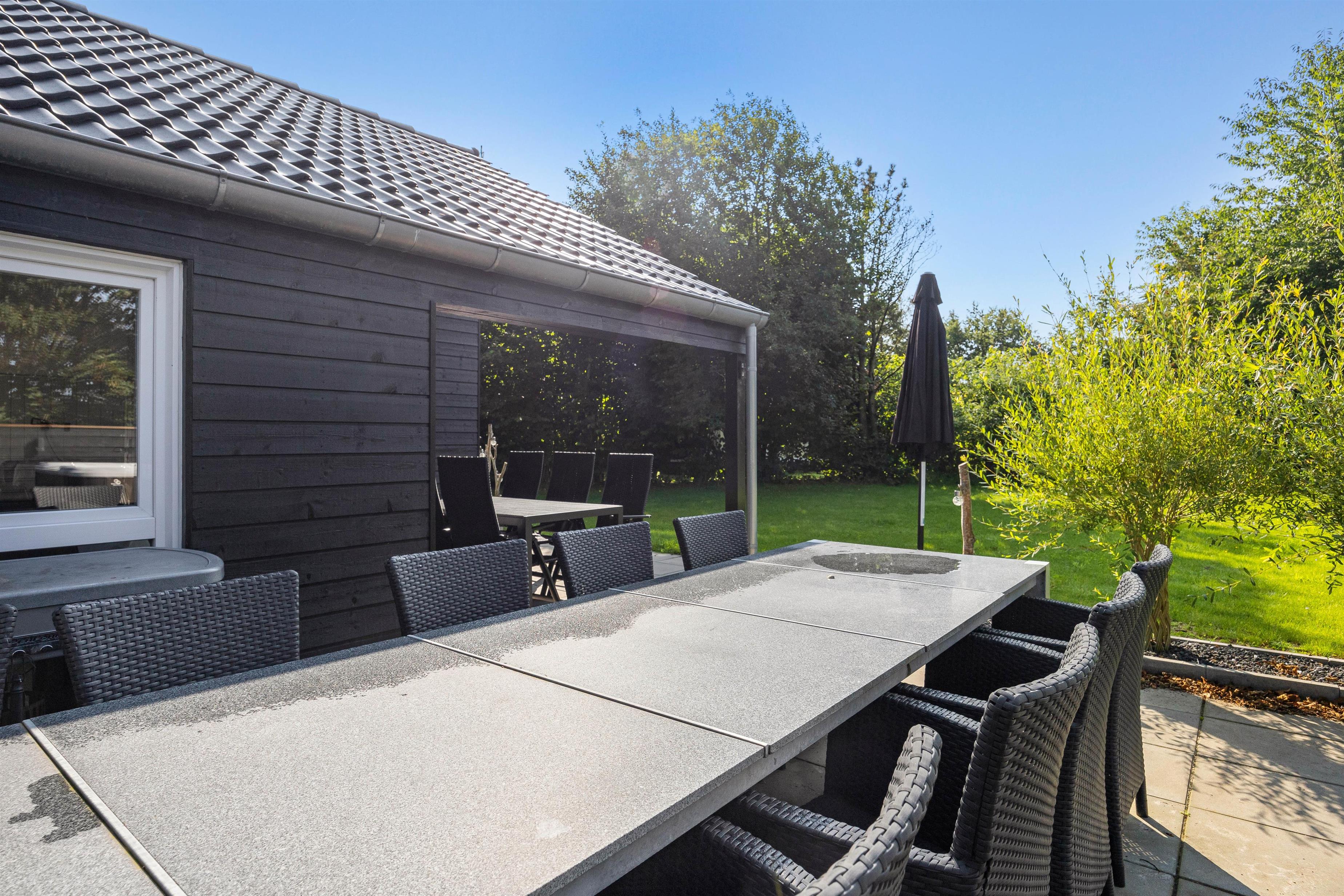 Stor grund og hyggelig terrasse med udespa og udendørs sauna