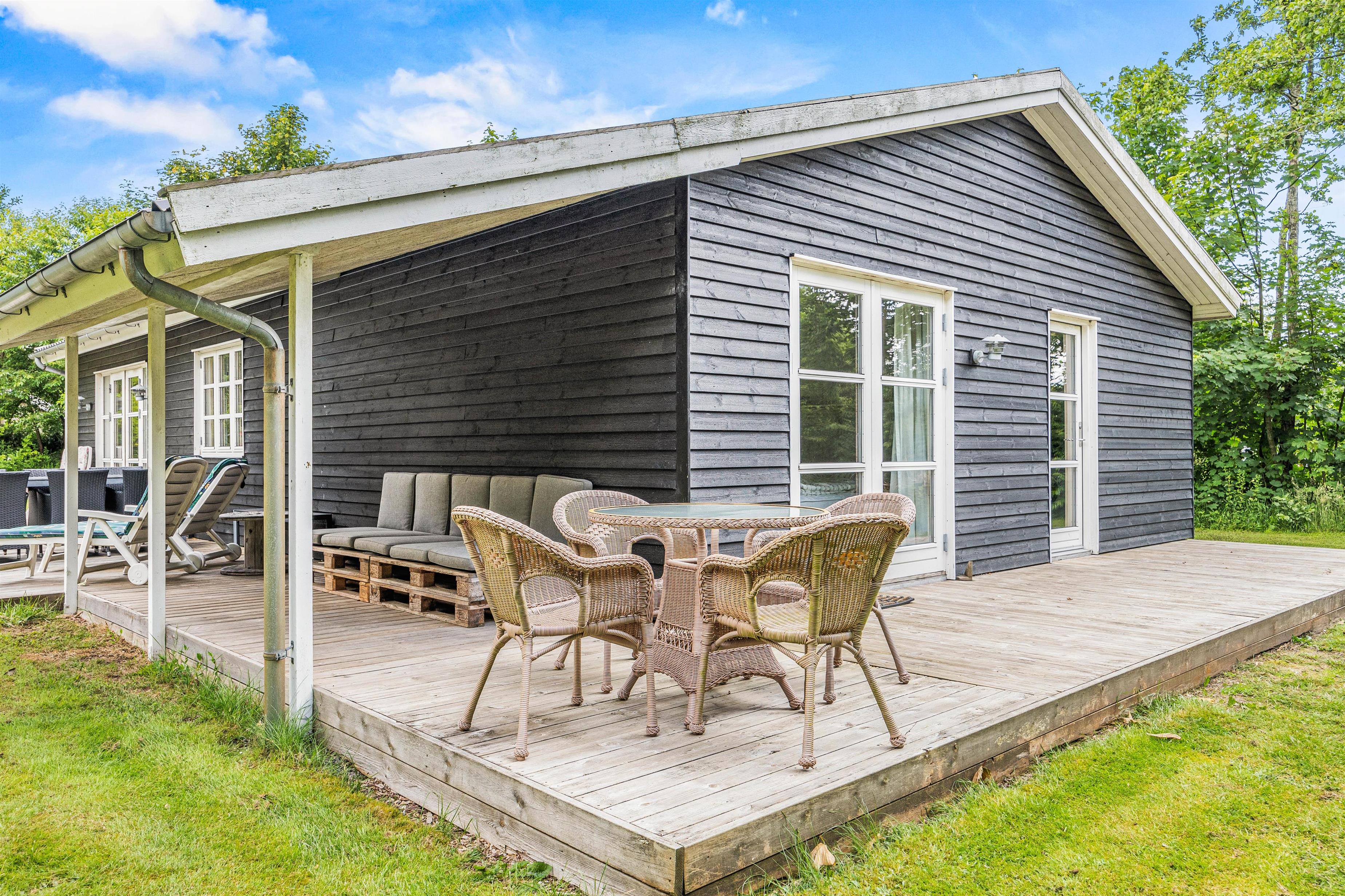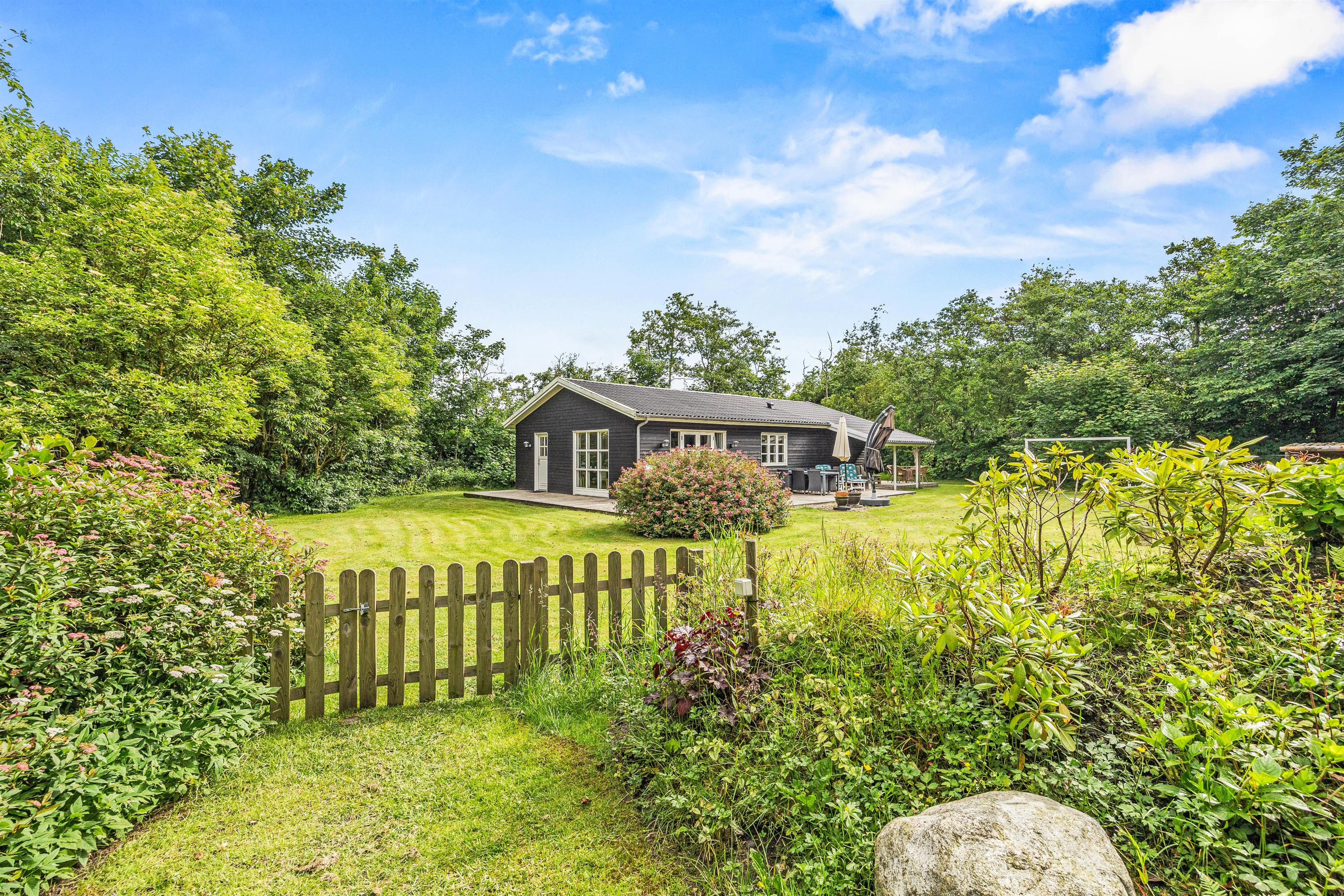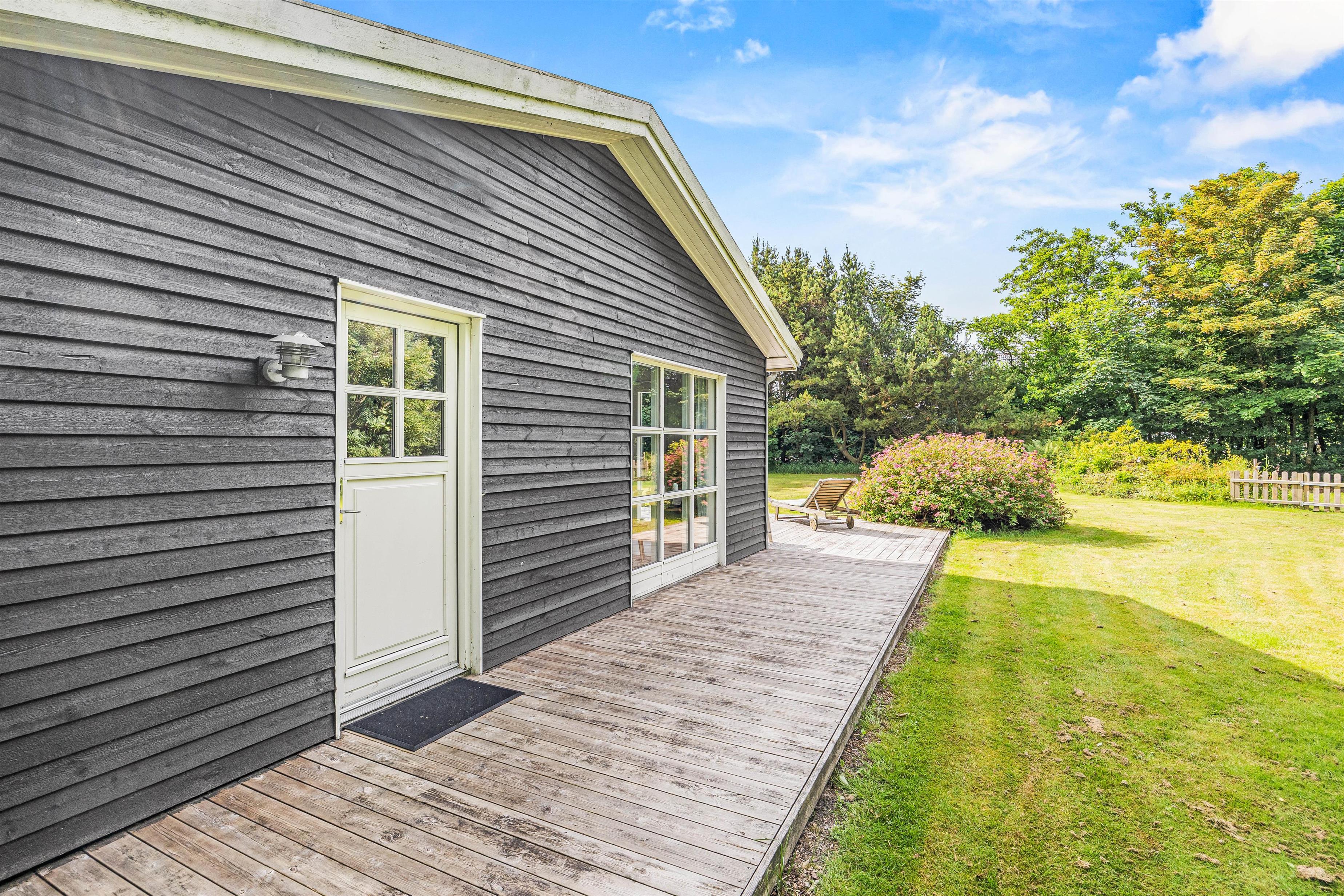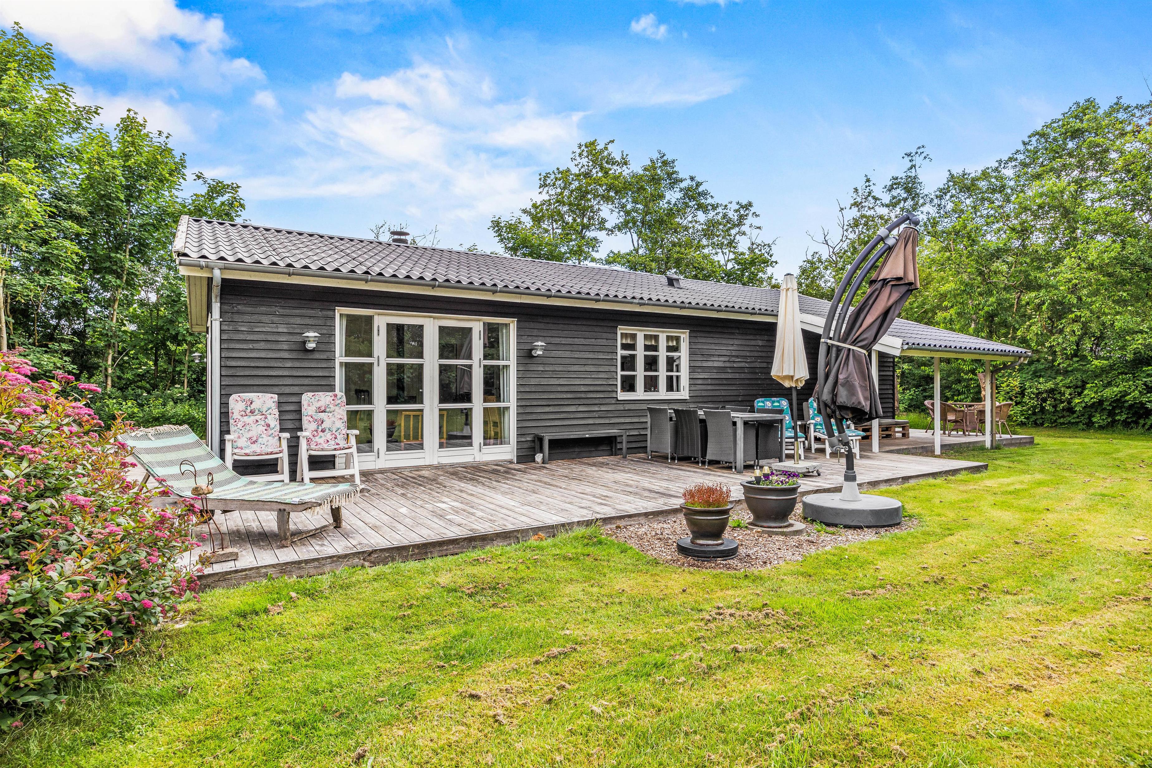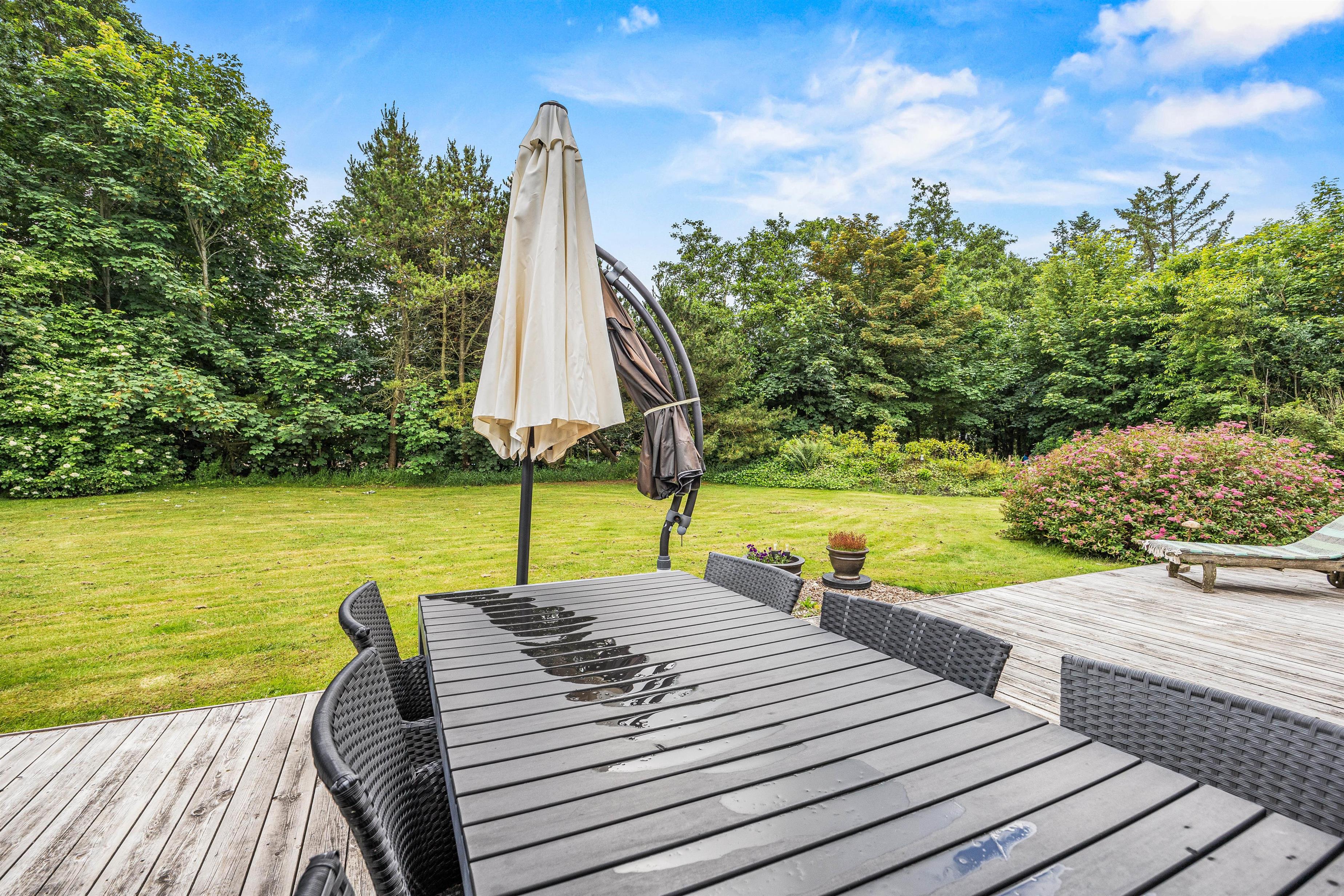 Grunden omkring sommerhuset er en sand oase af muligheder og komfort, omringet af masser af grønne træer og buske. Den åbne terrasse inviterer til hyggelige stunder under åben himmel, hvor I kan samles om grillen og nyde lækre måltider i det fri.