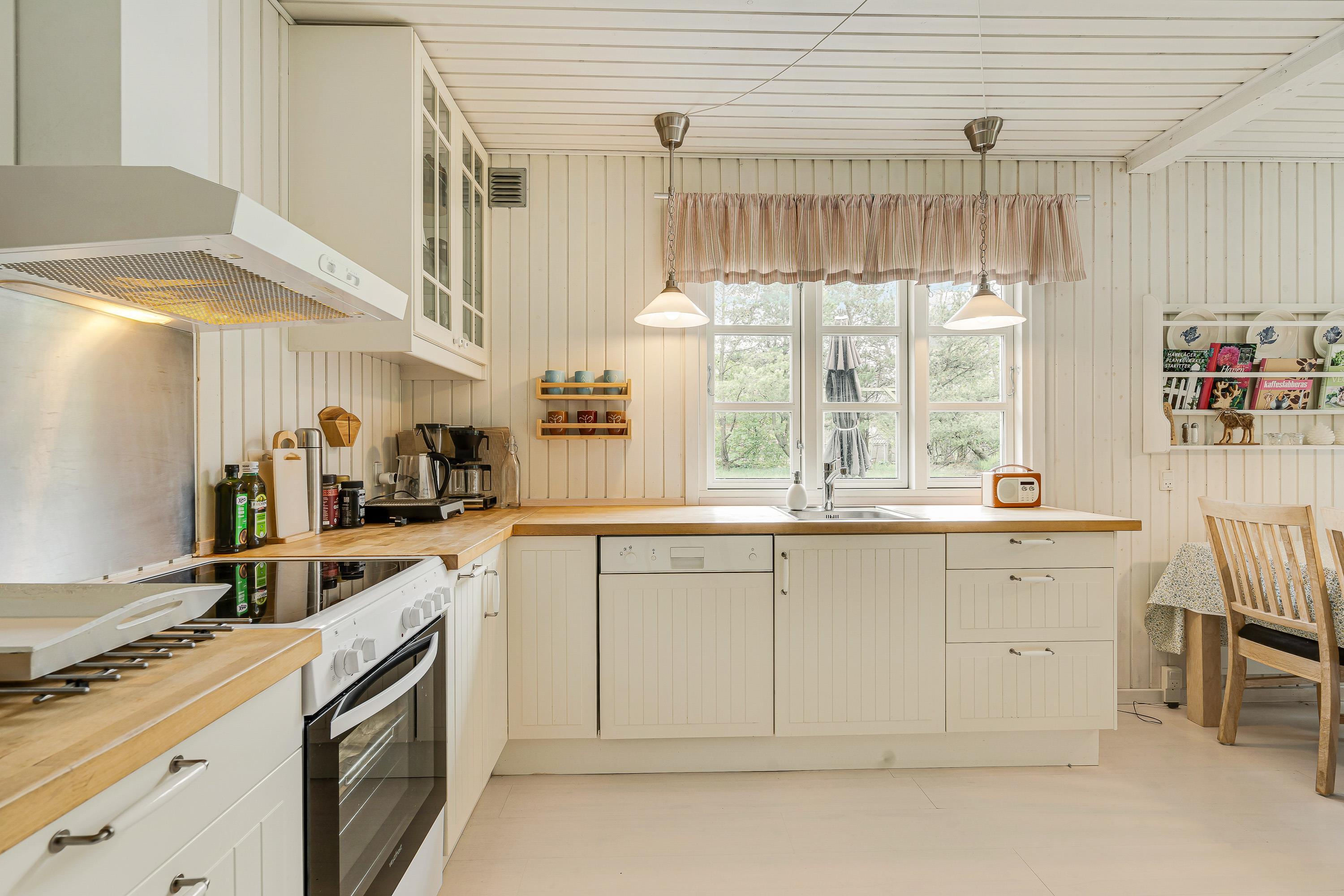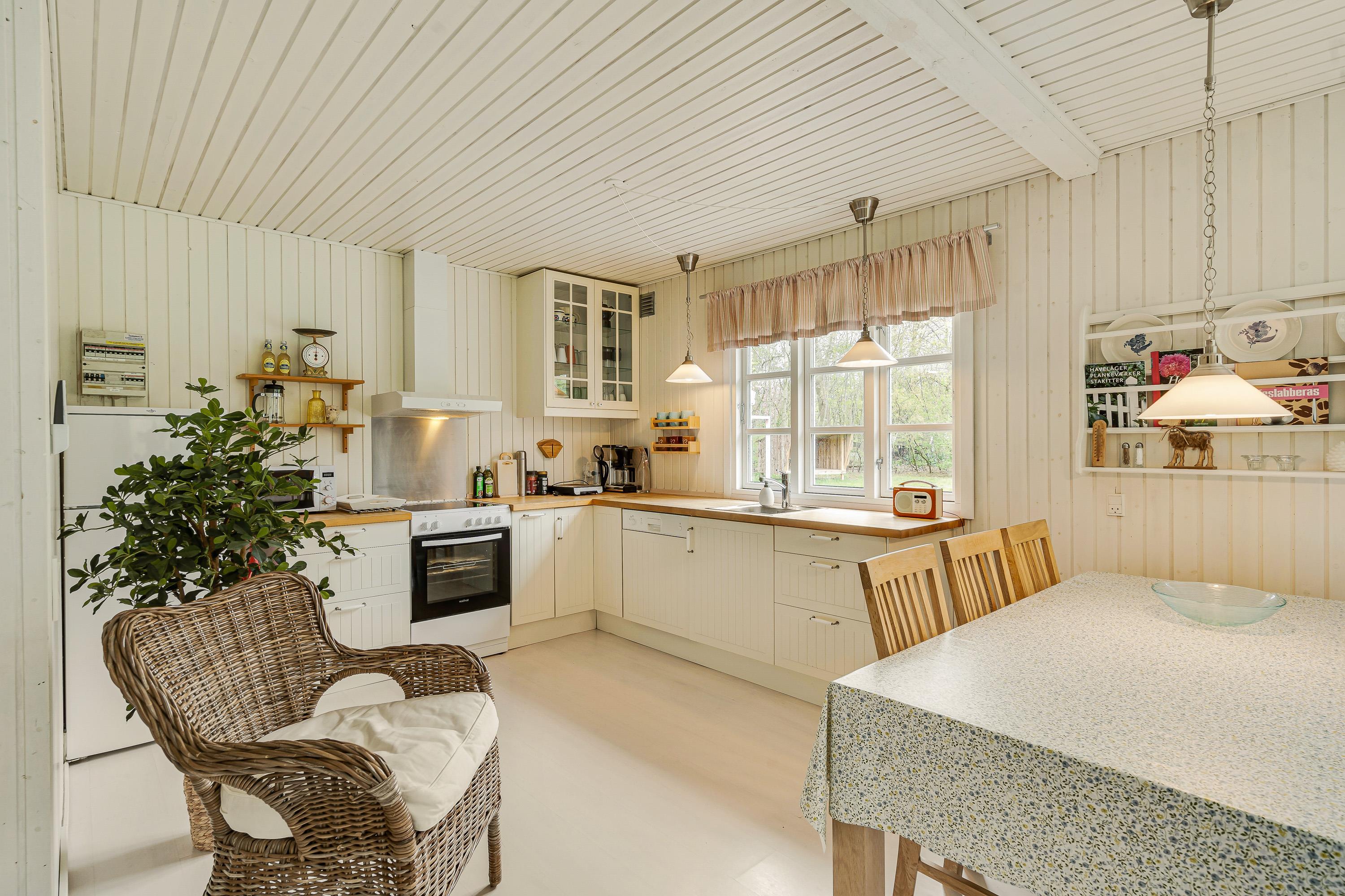 Det veludstyrede køkken gør det nemt at tilberede lækre måltider til hele familien, hvor opvaskemaskinen søger for en let oprydning, så der er tid til det sjove. Stuen skaber en hyggelig atmosfære med sin brændeovn og unikke indretning, der er perfekt til de kølige aftener, når I samles for at spille spil eller se en film sammen.