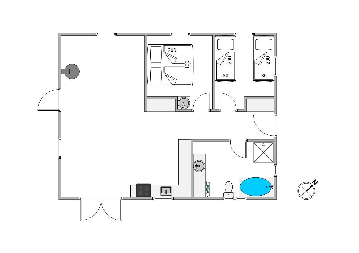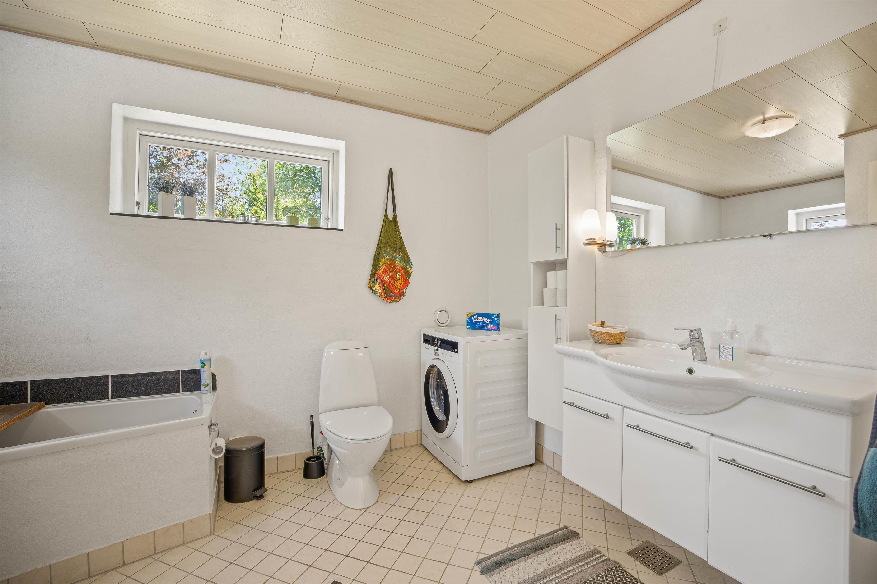Der er 2 gode værelser, hvoraf det ene er indrettet med en dobbeltseng og det andet med 2 enkeltsenge, hvilket er perfekt, hvis I er en lille familie med børn. Badeværelset i sommerhuset har gulvvarme, som virkelig er lækkert på de køligere dage. Her finder I også badekarret, som helt sikkert er et hit til feriegæster i alle aldre.