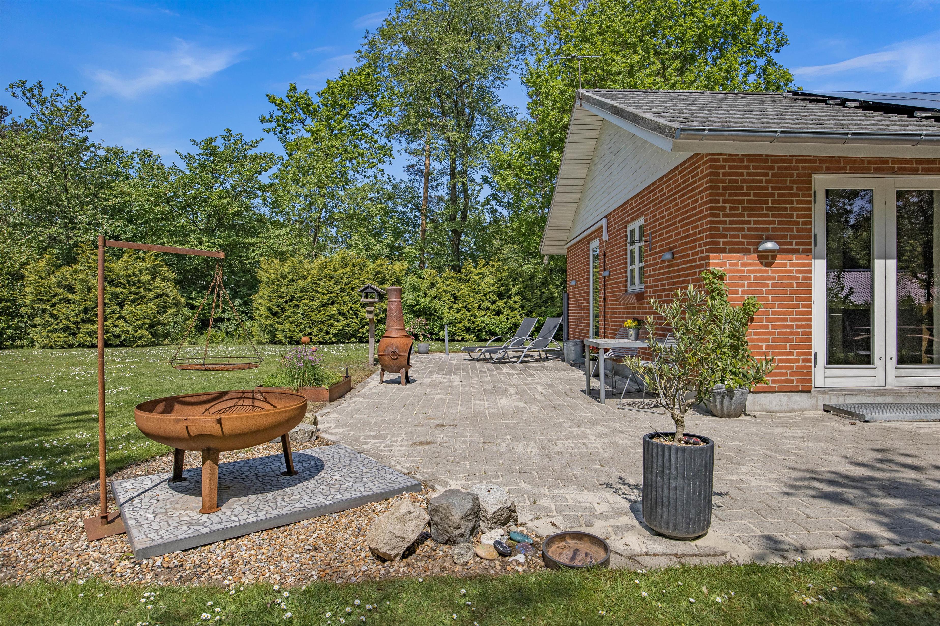 Den store, åbne terrasse vender mod syd, så I kan benytte havemøblerne eller solvognene og nyde de solrige dage fuldt ud. Her er også en gasgrill, så I nemt kan tilberede alverdens lækre feriemåltider under åben himmel.