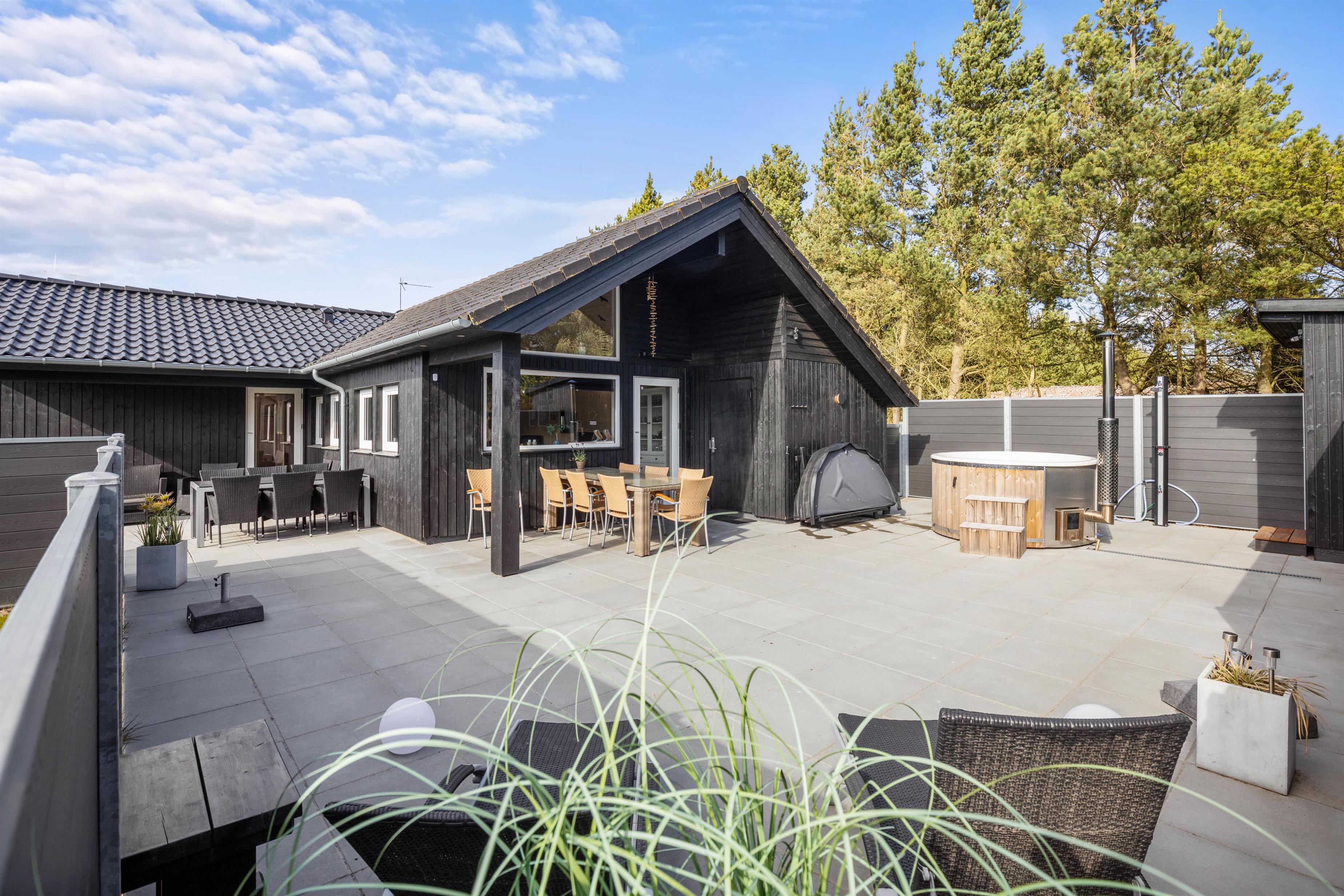Med en række luksuriøse faciliteter som infrarød sauna, vildmarksbad med dyser og en rummelig terrasse, er ægte feriehygge garanteret. Udforsk den fantastiske naturgrund, og nyd nem adgang til både strand og indkøbsmuligheder i nærområdet.