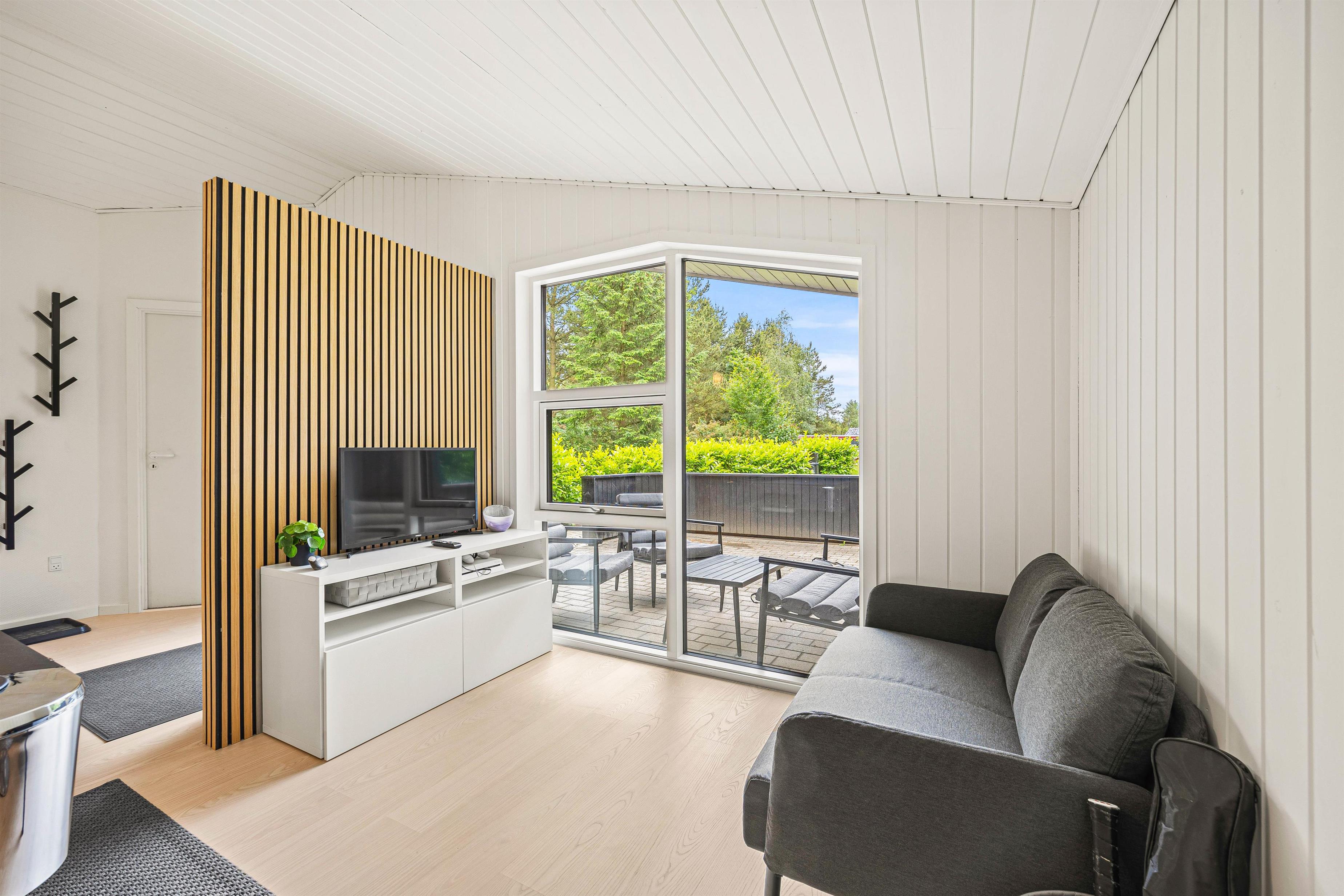 På terrassen, der åbner sig ud mod det skønne udendørsområde, finder I alt, hvad I skal bruge til en dejlig ferie. Her står en grill og havemøbler klar til hyggelige måltider under åben himmel. Der er også solvogne og en parasol til rådighed, så I kan nyde solskinnet i fulde drag.