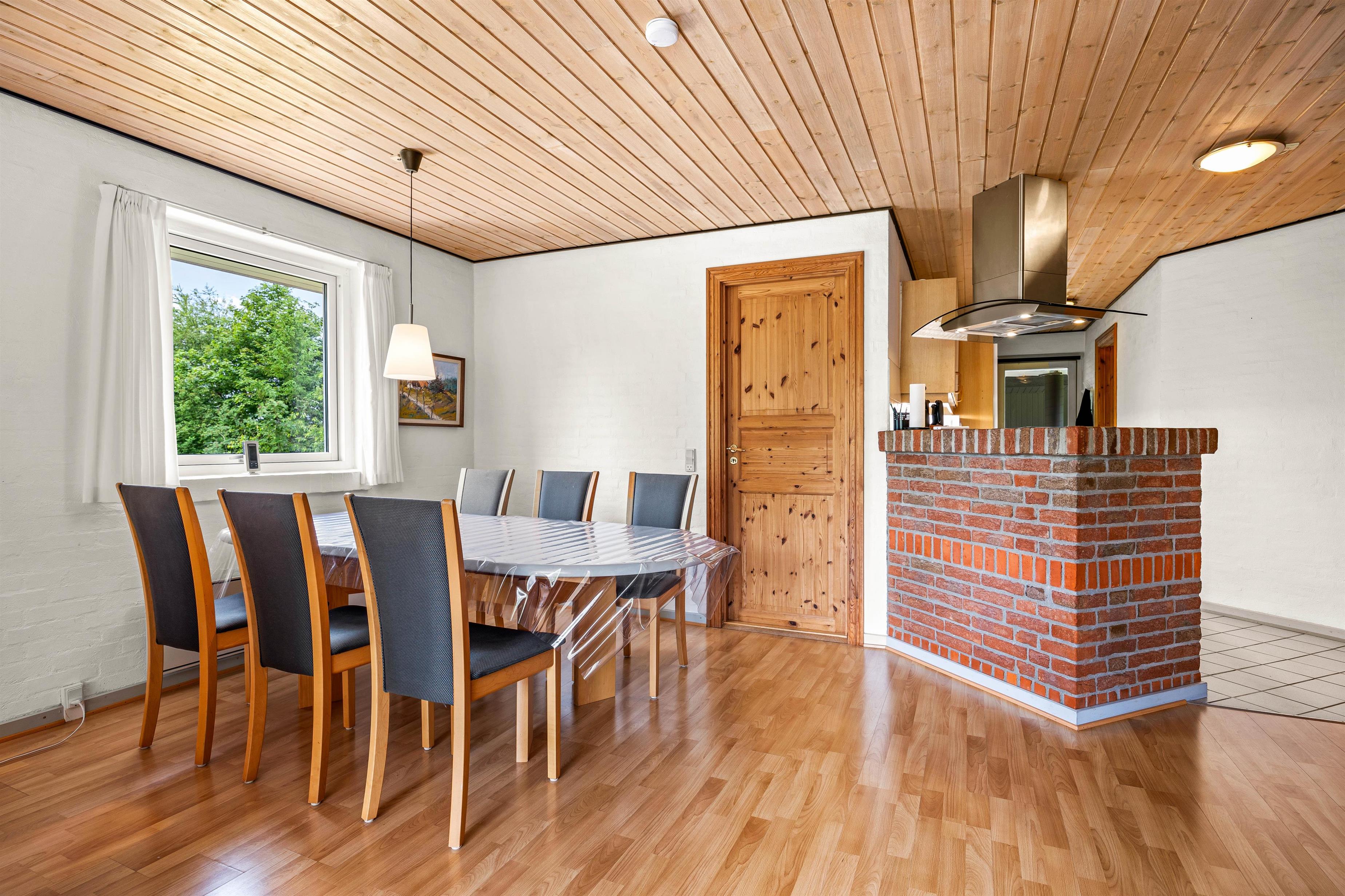 Det rummelige køkkenalrum fungerer som sommerhusets hje rte, hvor I kan samles om madlavningen eller nyde en hyggelig aften med brætspil. I køkkenet er der en opvaskemaskine, som gør det nemt at klare oprydningen, så I hurtigt kan vende tilbage til hyggelige stunder eller give jer i kast med nye aktiviteter.