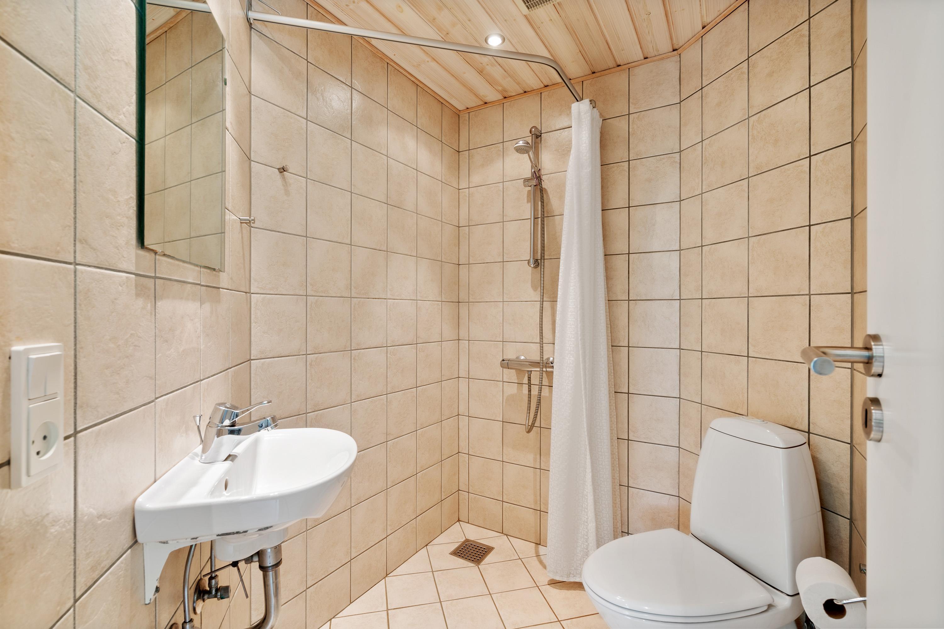 Sommerhuset råder over 2 badeværelser, det ene har spa og sauna. Så trænger I til at få løsnet op i kroppen, er der rig mulighed for det.