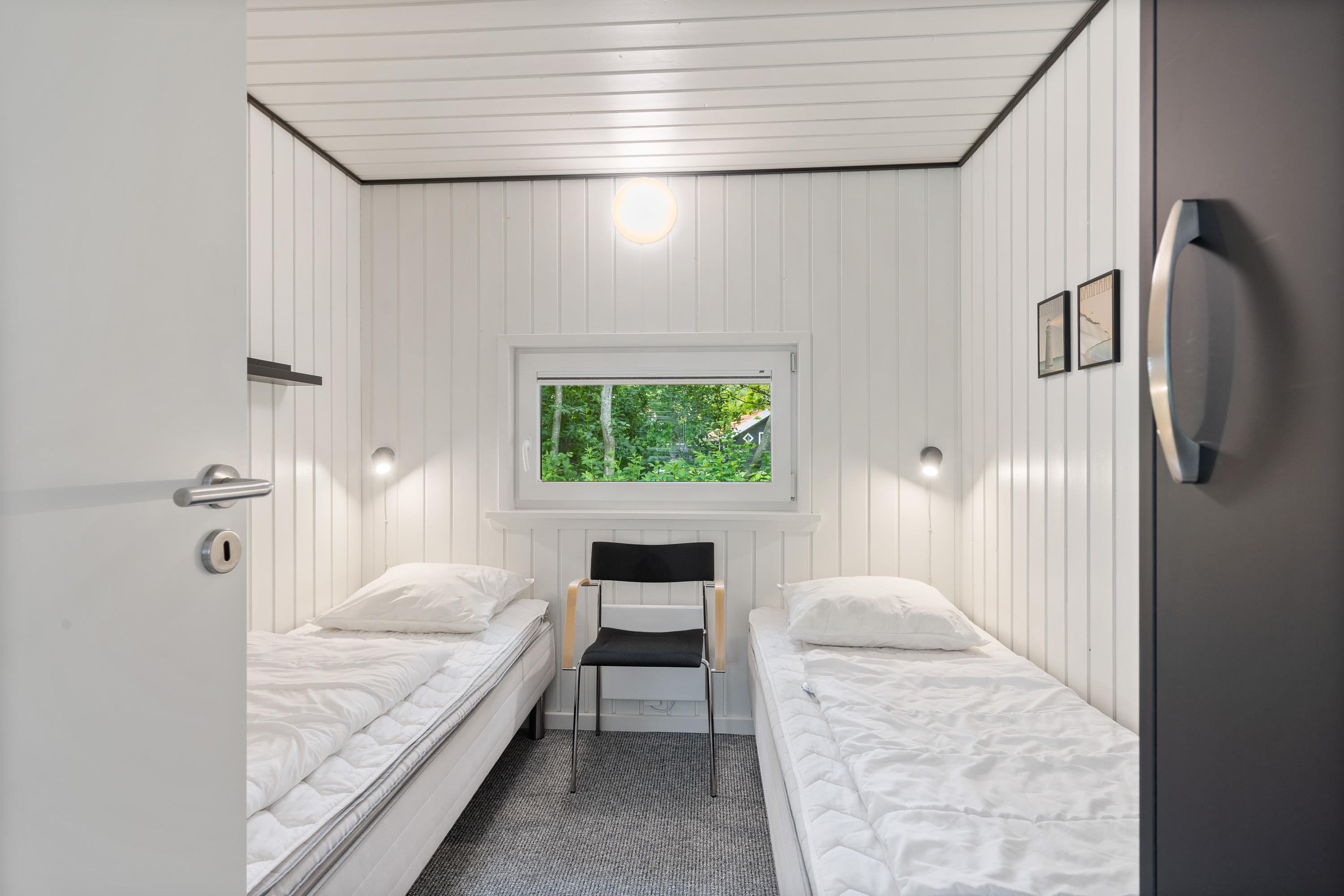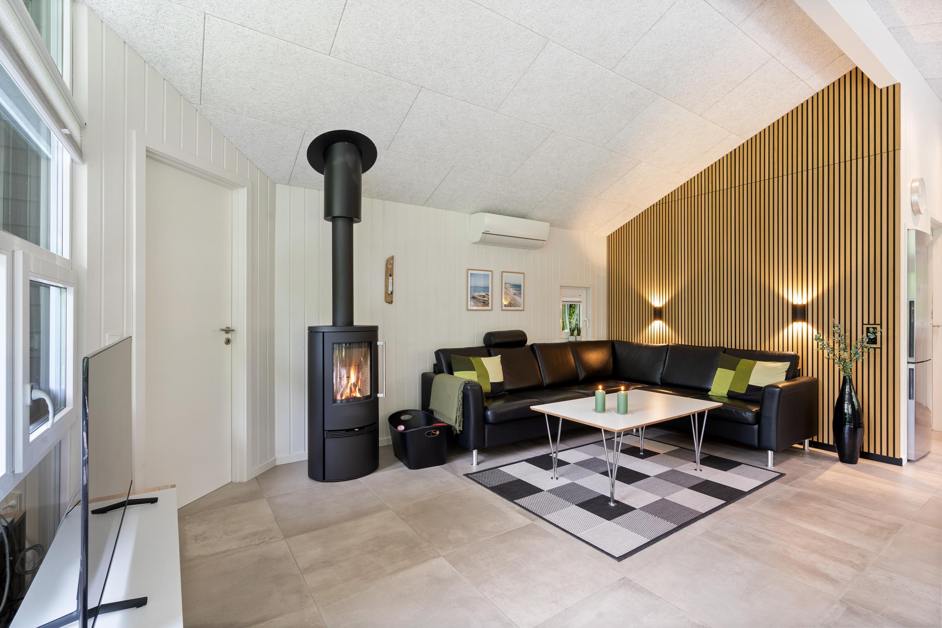 Kernen i sommerhuset er det store, lækre køkkenalrum kombineret med stuen. Hele rummet er flisebelagt og har gulvvarme, så I kommer ikke til at fryse om fødderne. Det åbne køkken gør, at I kan holde et øje med børnene, mens I tilbereder noget lækkert mad. Opvaskemaskinen sørger for, at der hurtigt kan ryddes op og frigiver mere tid til afslapning og hygge med børnene.