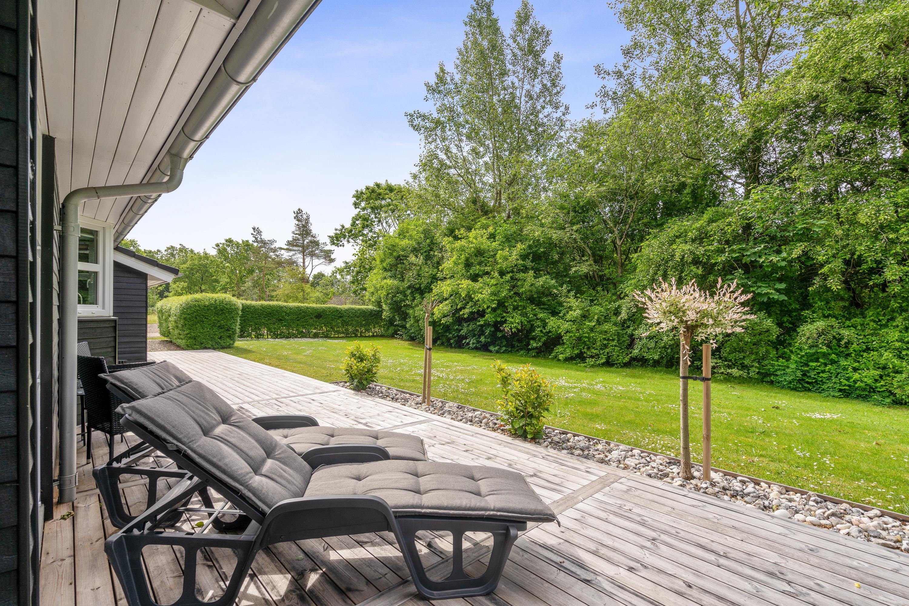 Hele udeområdet ved feriehuset fremstår yderst velplejet, og også her fornemmer I, at der er blevet kræset for detaljerne. Der er masser af hyggekroge på terrassen, hvoraf en del af terrassen er overdækket, så I har mulighed for at gå i læ for solen, hvis det skulle være nødvendigt. Der er masser af lækre havemøbler, I kan slynge jer i, og I har et godt overblik over haven, så I nemt kan holde øje med børnene, som kan slå sig løs på gyngen eller en gang boldspil, som den store plænegrund lægger op til.