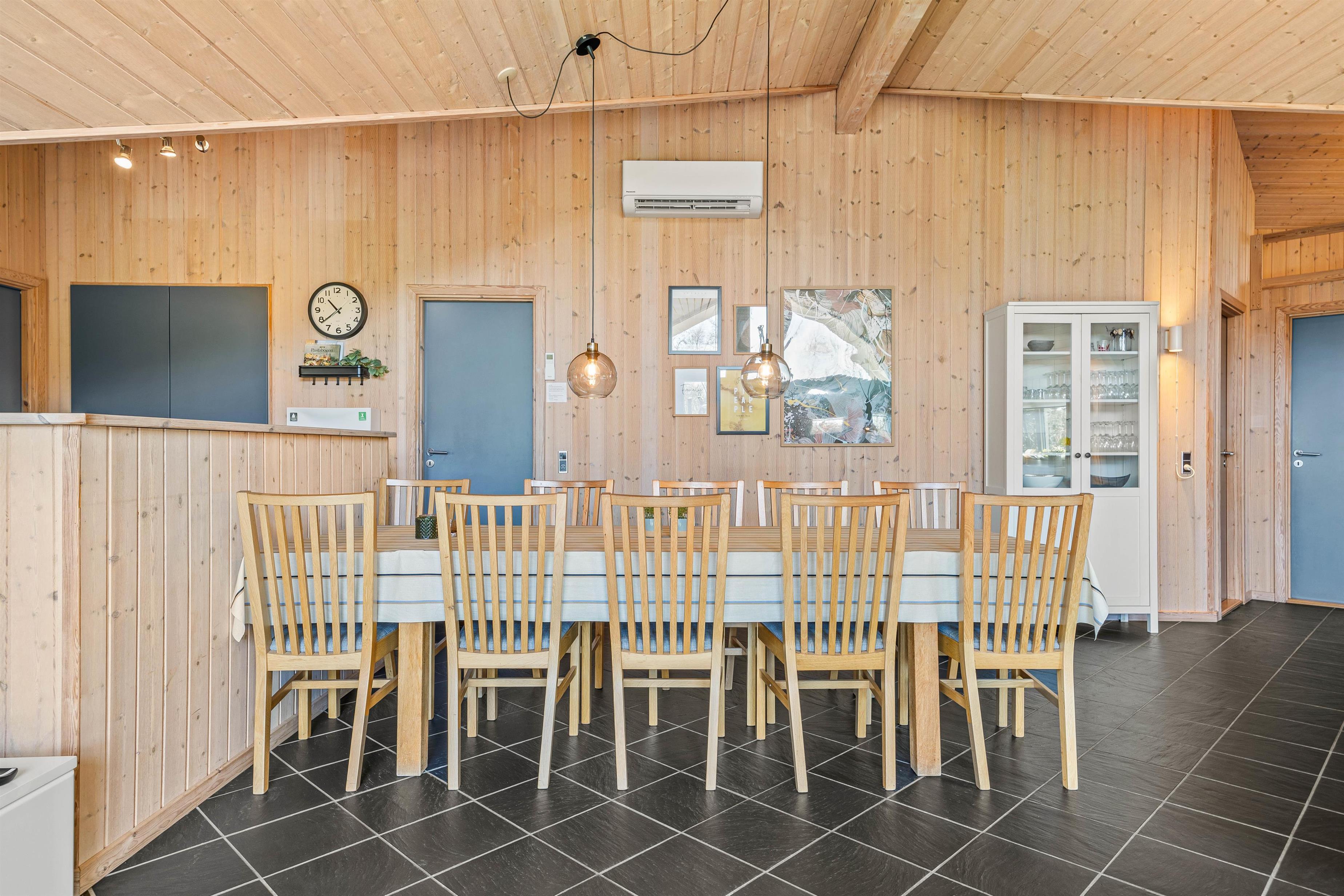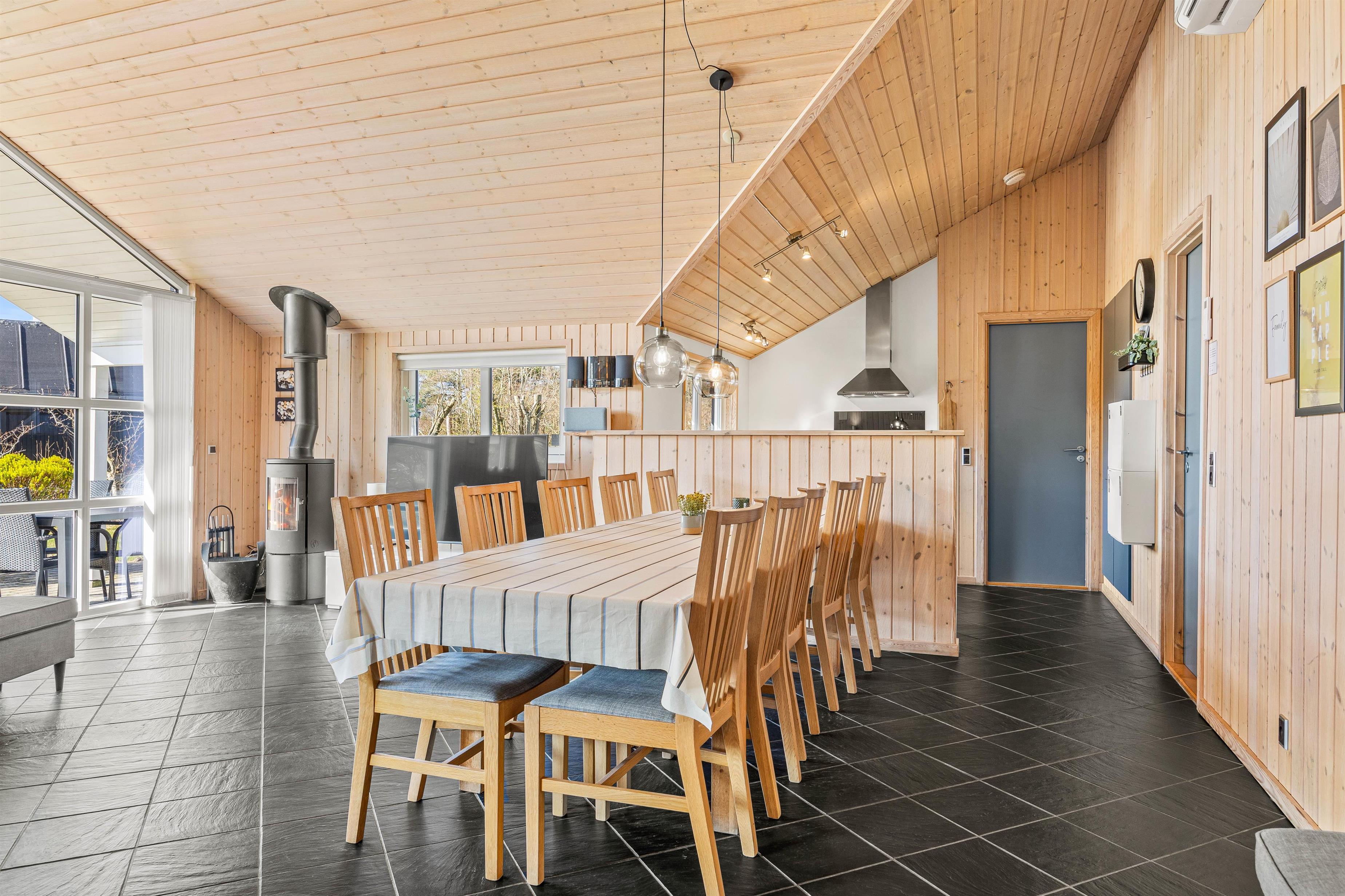 Blomstervangen 96 er indrettet med fokus på komfort og afslapning, som også er at mærke i husets enkle, men charmende karakter. Træder man ind i sommerhuset bliver man ført ind i det hyggelige køkkenalrum, der med højt til loftet og masser af plads til både at snakke om dagens begivenheder og nyde et veletablerede måltid i ro og mag.