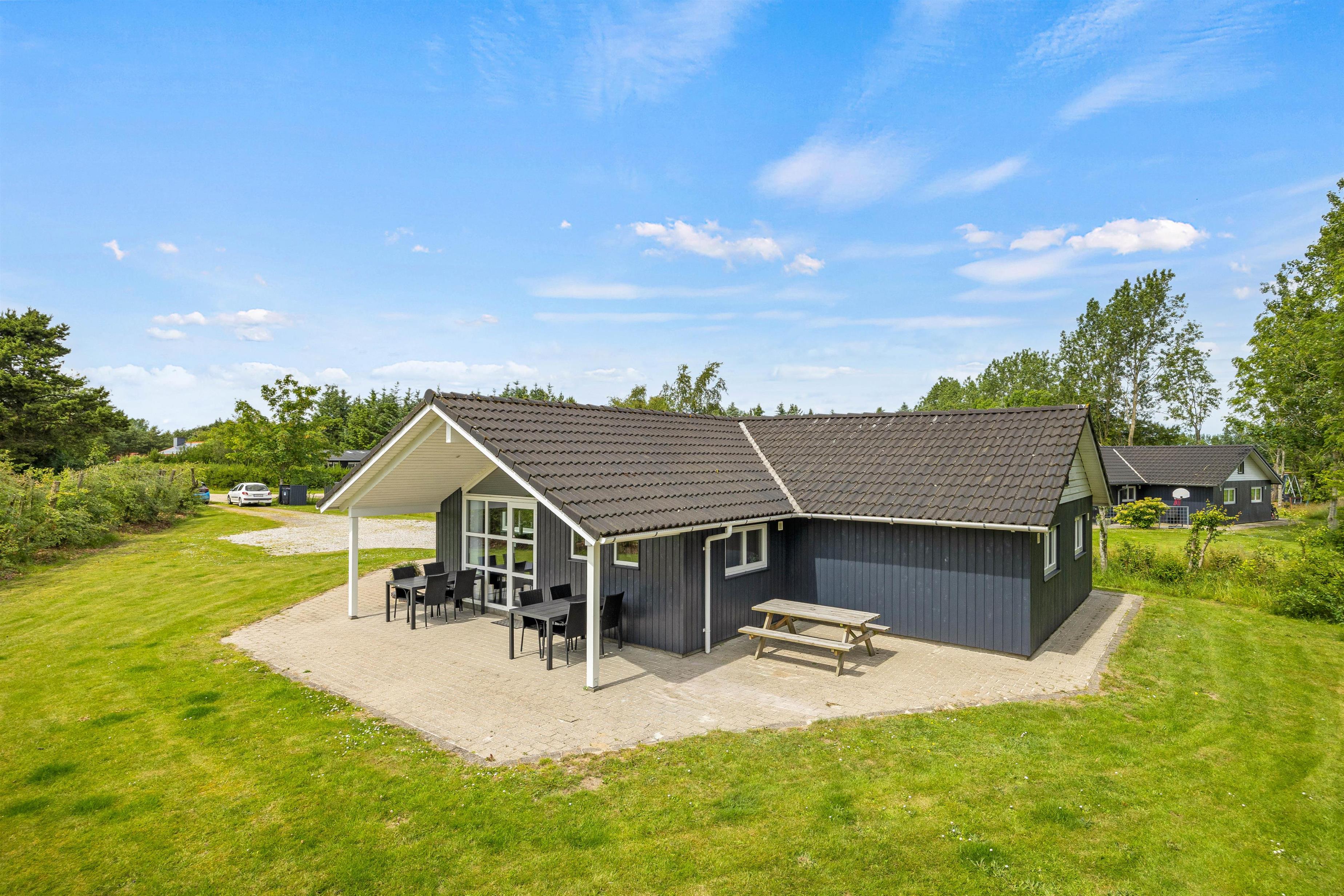 Udendørs byder sommerhuset på en indbydende kombination af både åbne og overdækkede terrasser, hvilket giver jer mulighed for at nyde udendørslivet uanset vejret.