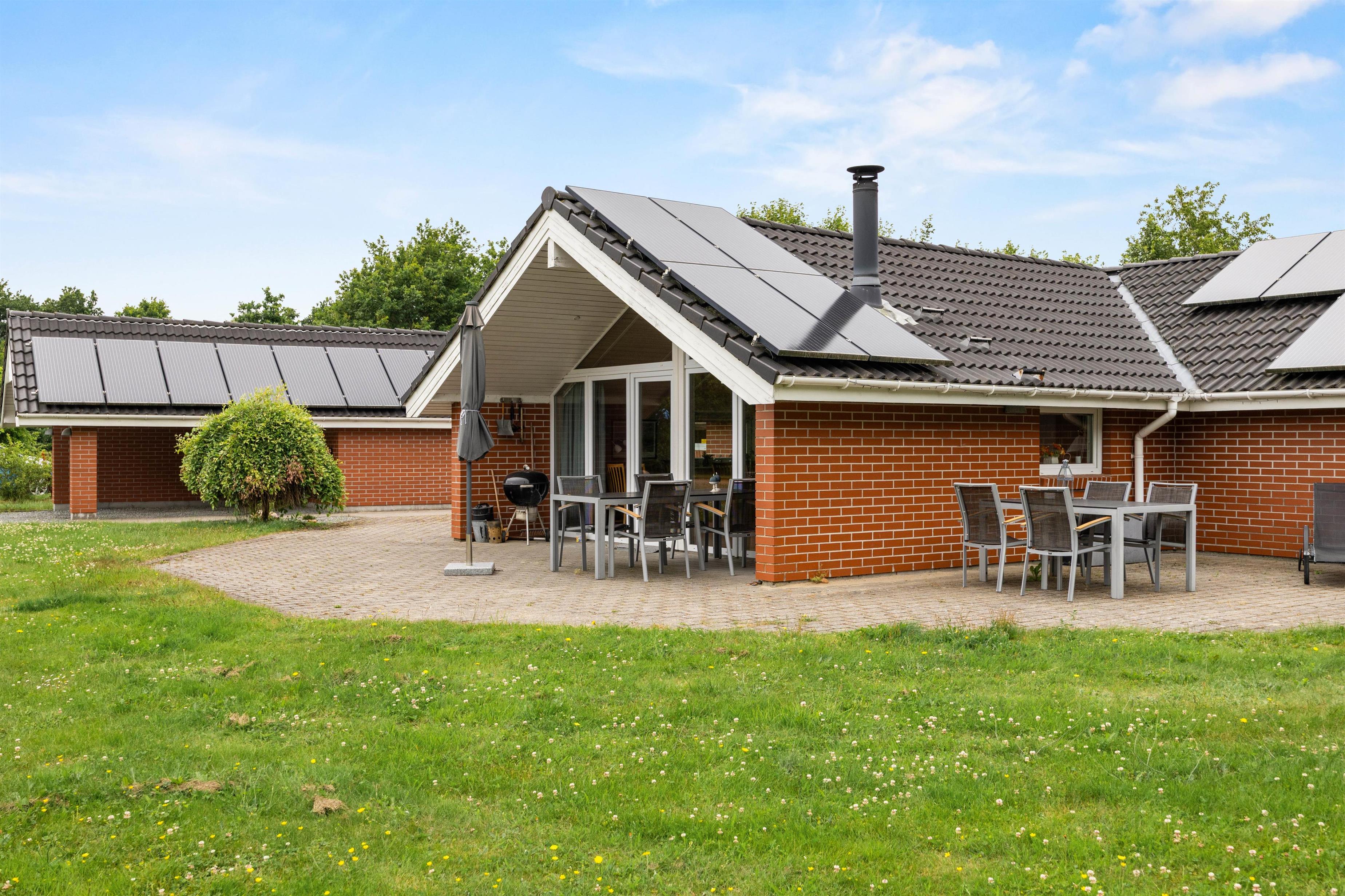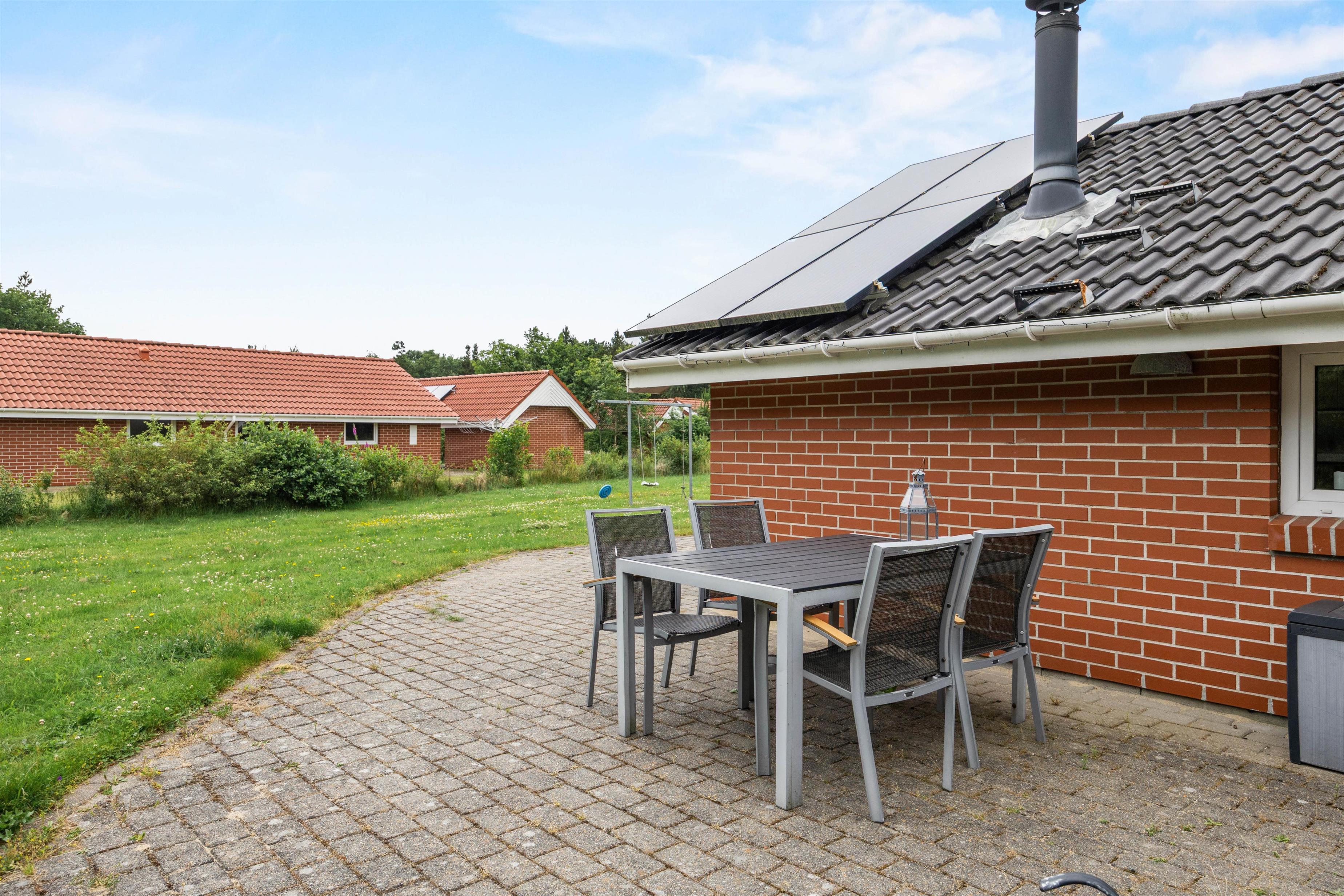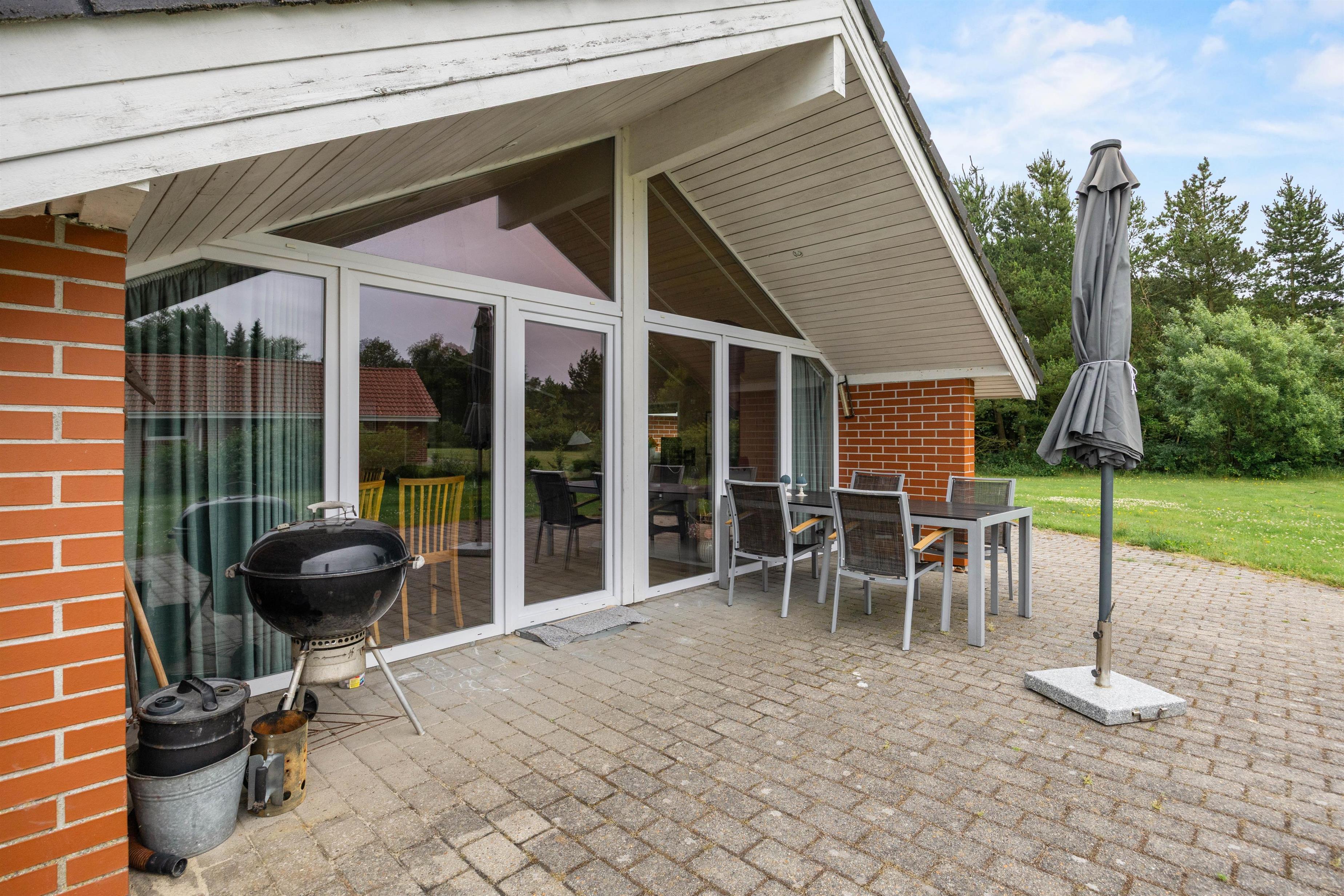 Bevæger I jer ud af terrassedøren vil i finde et udeareal, der tilbyder en række muligheder for både afslapning og aktiviteter. I kan tilbringe lune sommeraftener med madlavning på grillen, mens I nyder det fri og hygger på den åbne eller overdækkede terrasse. Denne variation giver jer mulighed for at vælge det perfekte sted at slappe af, uanset vejret.