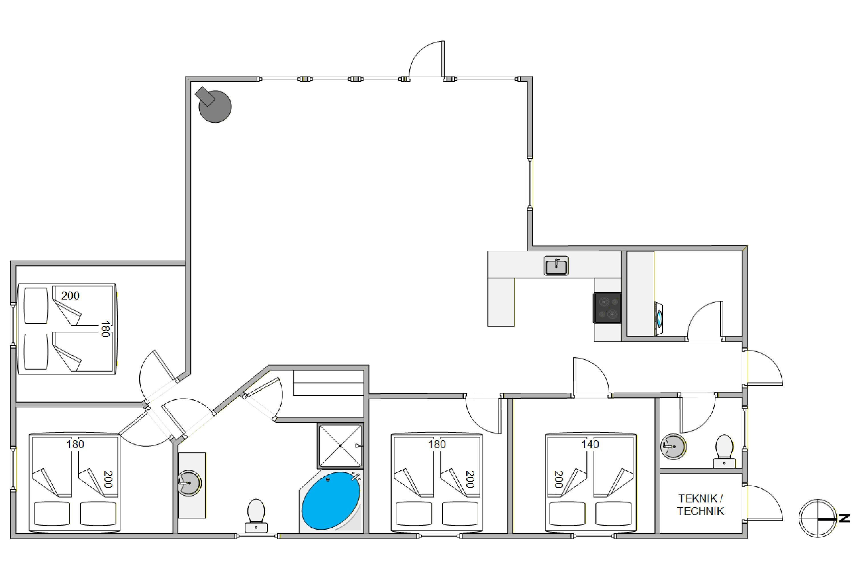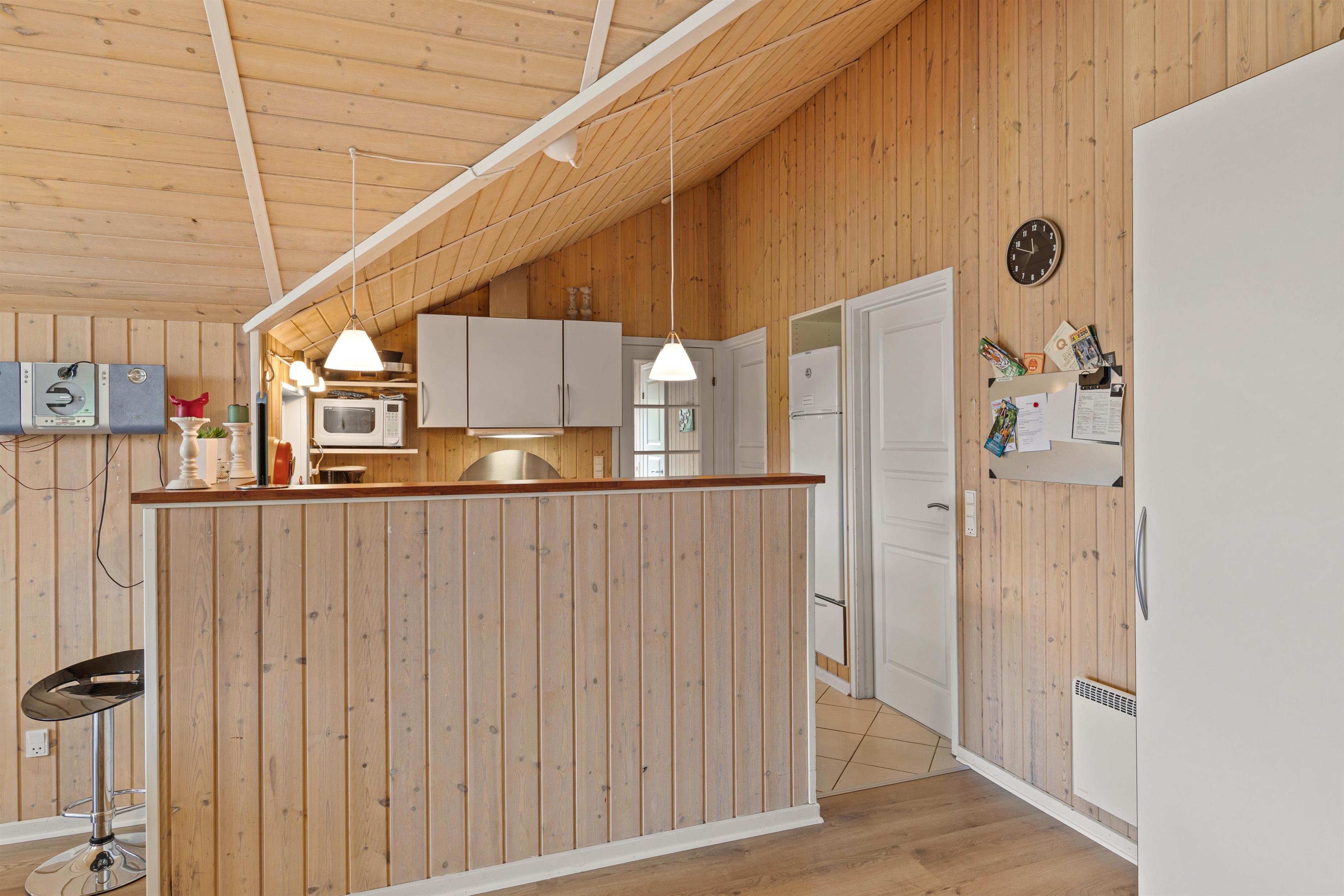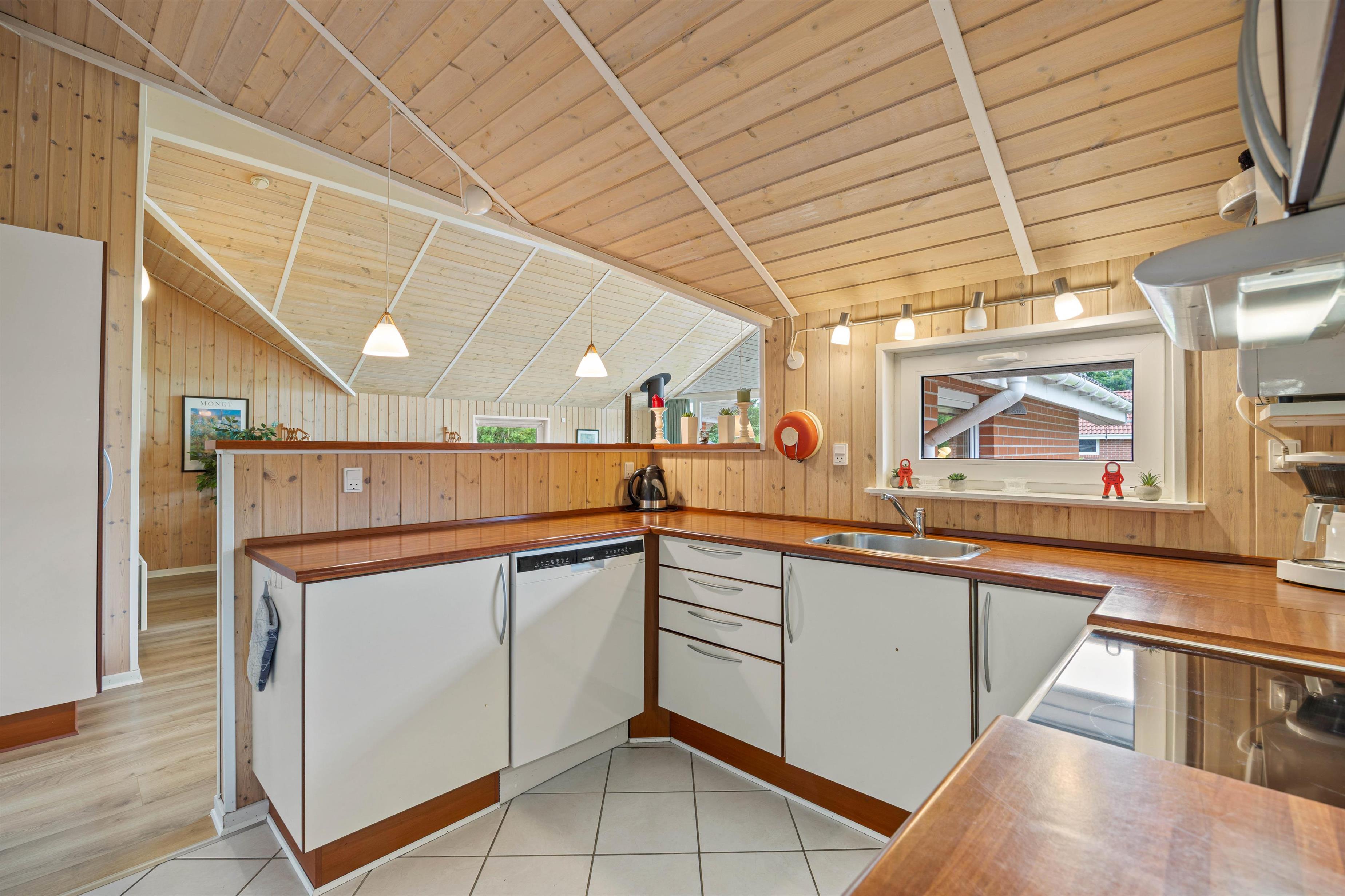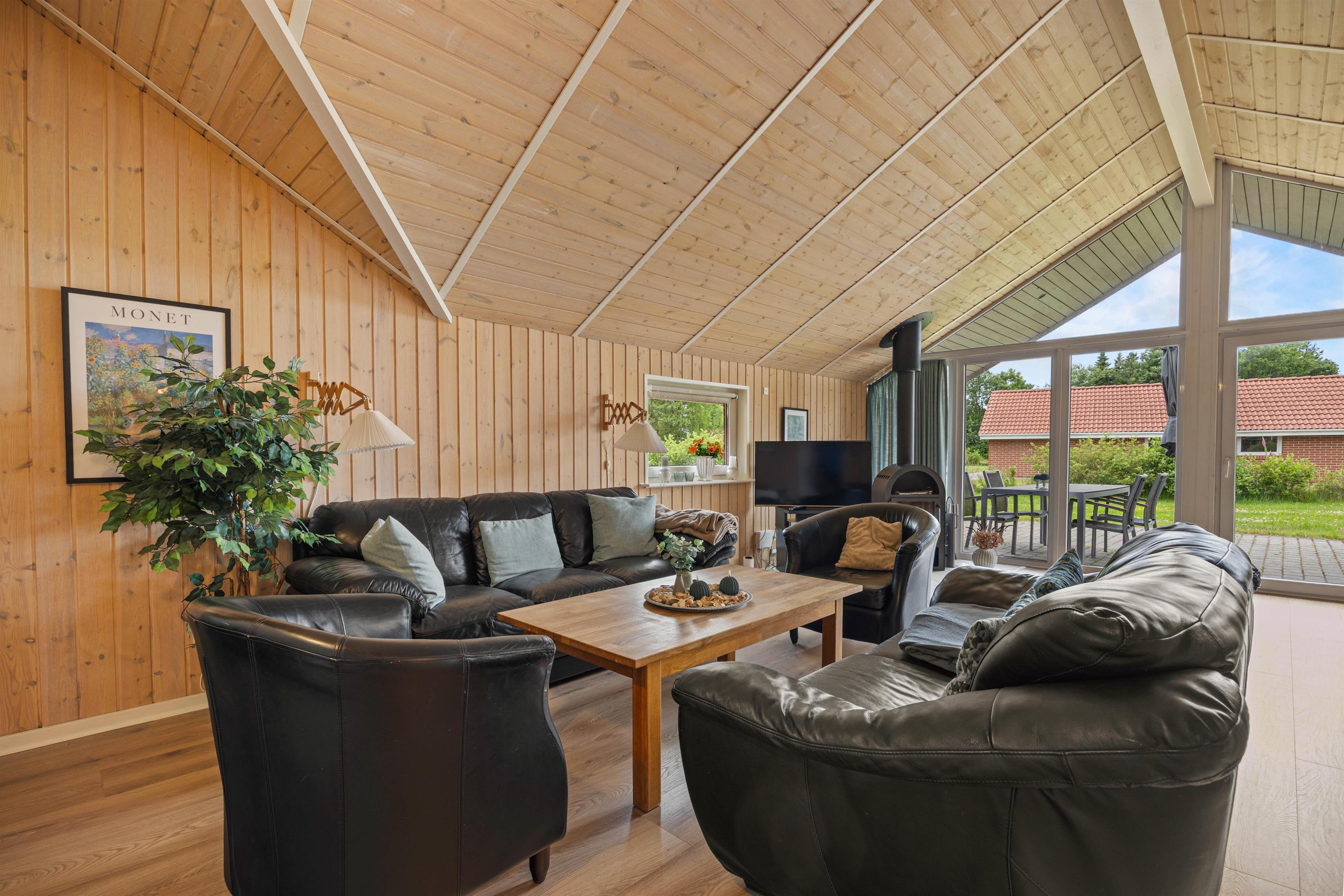 Indenfor byder sommerhuset på en række faciliteter, der sikrer et behageligt ophold. Alle 4 soveværelser er elegant indrettet med dobbeltsenge, hvilket giver plads til 8 personer, der kan nyde en god nats søvn. Det er ingen hemmelighed, at sommerhuset hjerte er at finde i stuen, hvor især brændeovnen, sikre hyggelige stunder med gode samtaler og højt humør. Disse samtaler kan nemt overføres til det samtalevenlige køkken, som med sin opvaskemaskine, gør madlavningen til en leg.