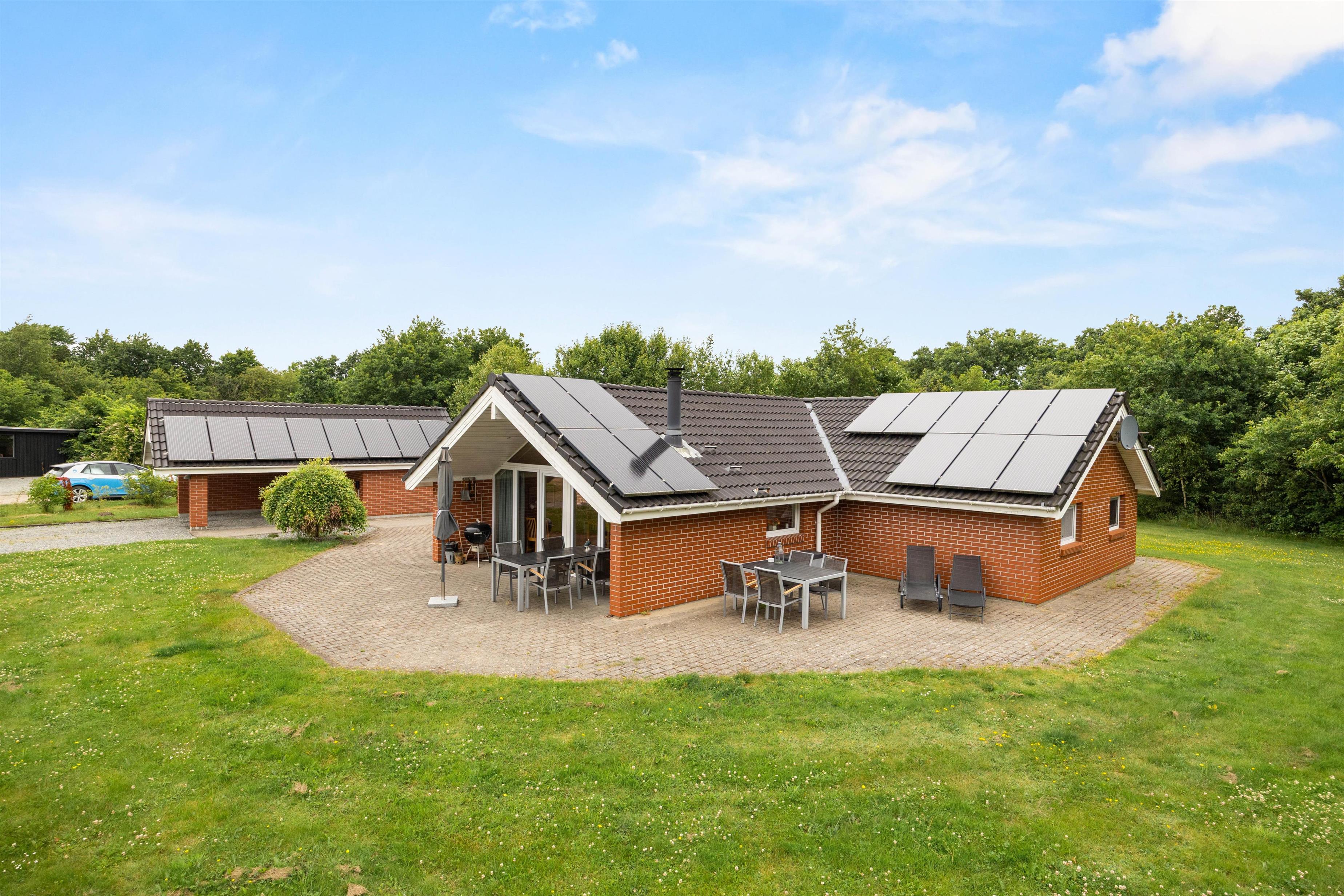 På plænegrunden er der masser af plads til leg og udendørs aktiviteter, hvor især de yngste kan boltre sig. Praktisk er der også tænkt på bilerne, hvor carporten tilbyder beskyttelse mod vejret. Med et ladestik til el-bil er det både enkelt og bekvemt at holde jeres elektriske bil opladet og klar til de næste udflugter.